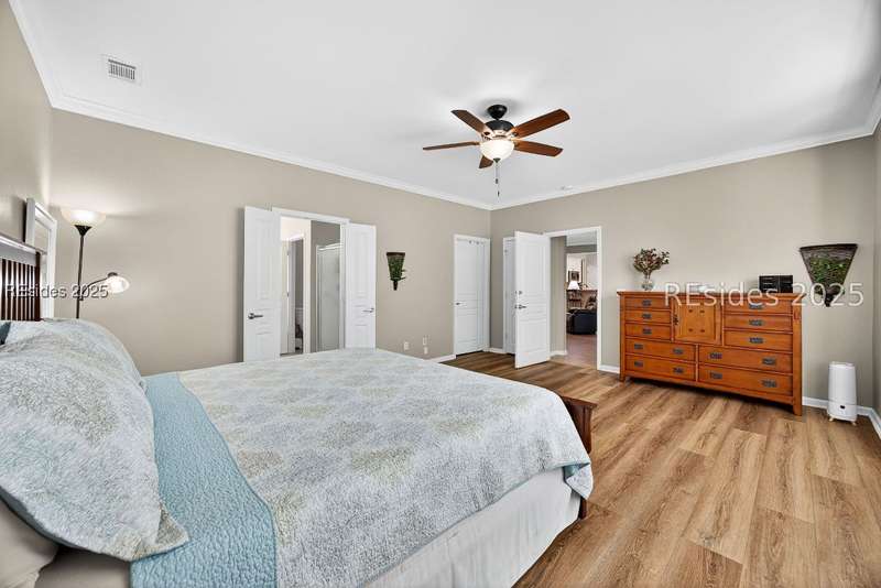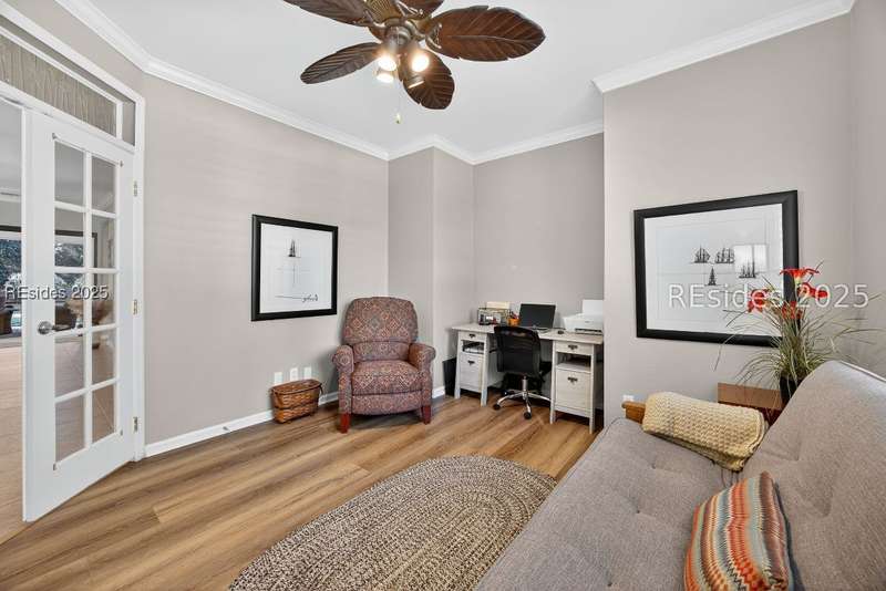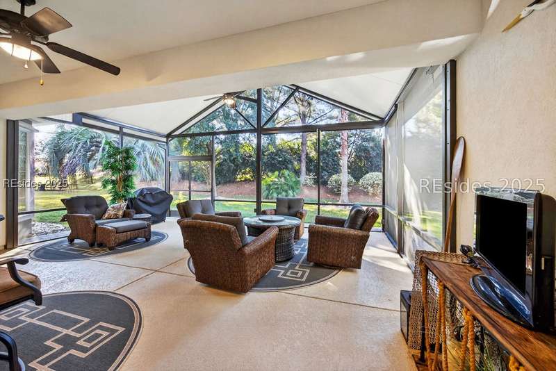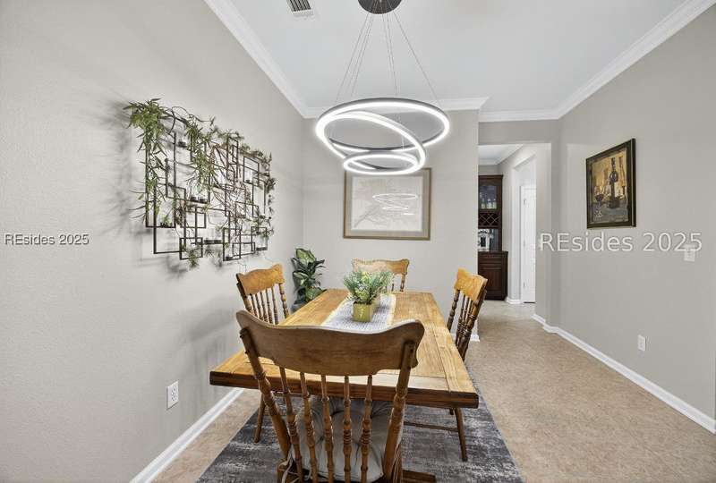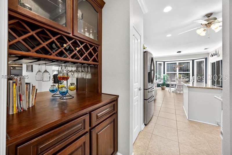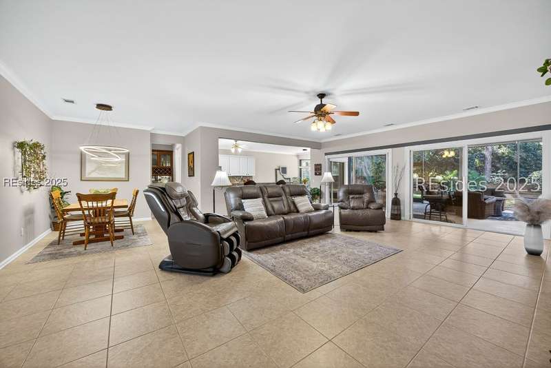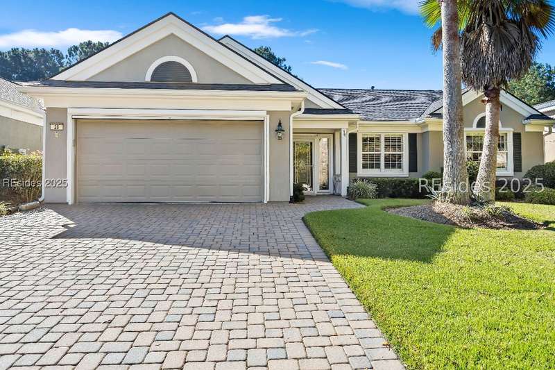 Here's your opportunity to own one of Sun City Hilton Head's most popular floor plans - the Dogwood model, beautifully maintained and thoughtfully upgraded throughout. This 2-bedroom, 2-bath home with a den combines comfort, style, and functionality in one of Bluffton's most desirable active-adult communities. From the moment you arrive, you'll notice the attention to detail - an oversized paver driveway and entry, fresh 50-year roof (2020), solar attic fan (2019), permanent attic stairs, and a Marathon hot water heater designed for efficiency and longevity. The home's exterior and landscape reflect pride of ownership, offering wonderful curb appeal on a quiet, well-established street. Inside, you'll find a light-filled, open layout with fresh interior paint, smooth ceilings, crown molding, window casings, and plantation shutters throughout. The spacious kitchen features a butler's pantry, modern appliances, and ample cabinet space, making it ideal for entertaining or everyday living.
