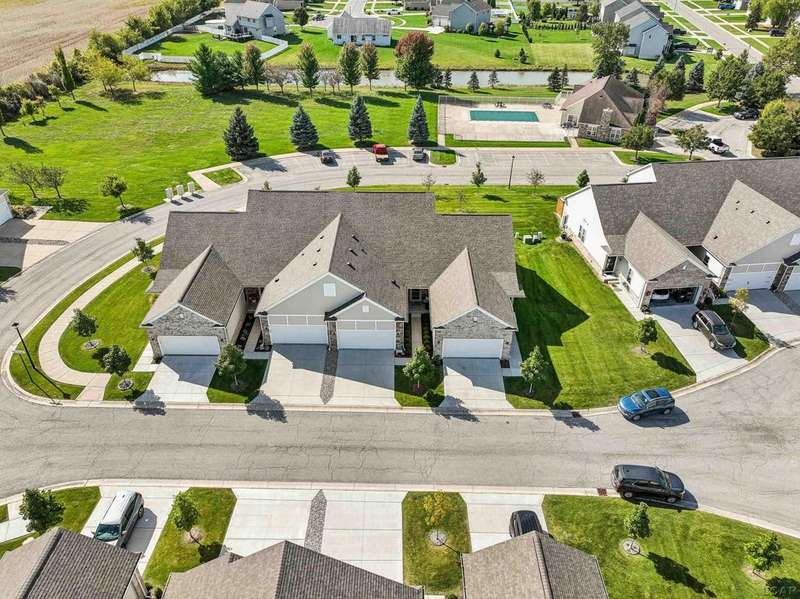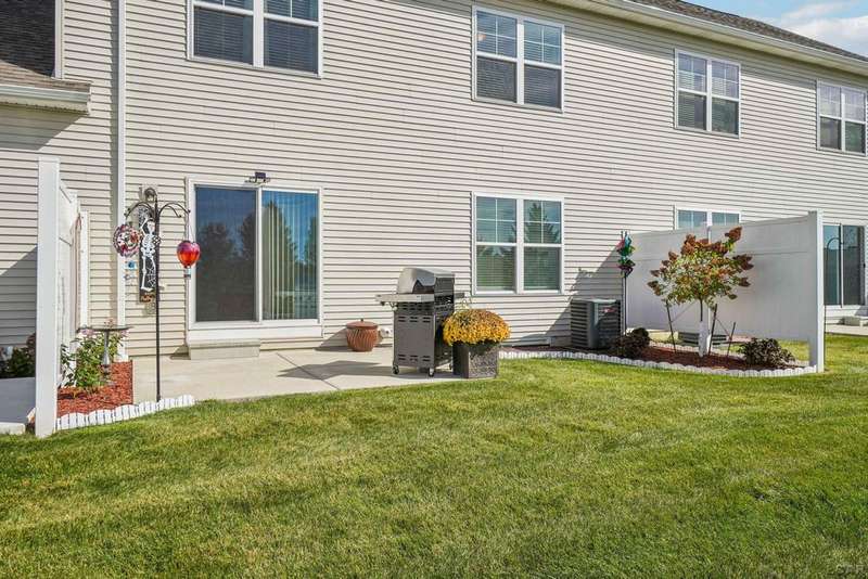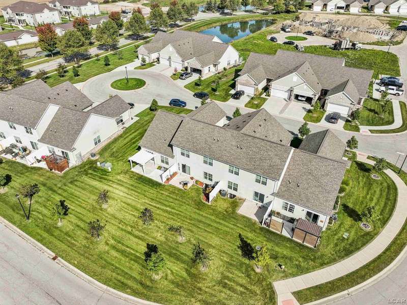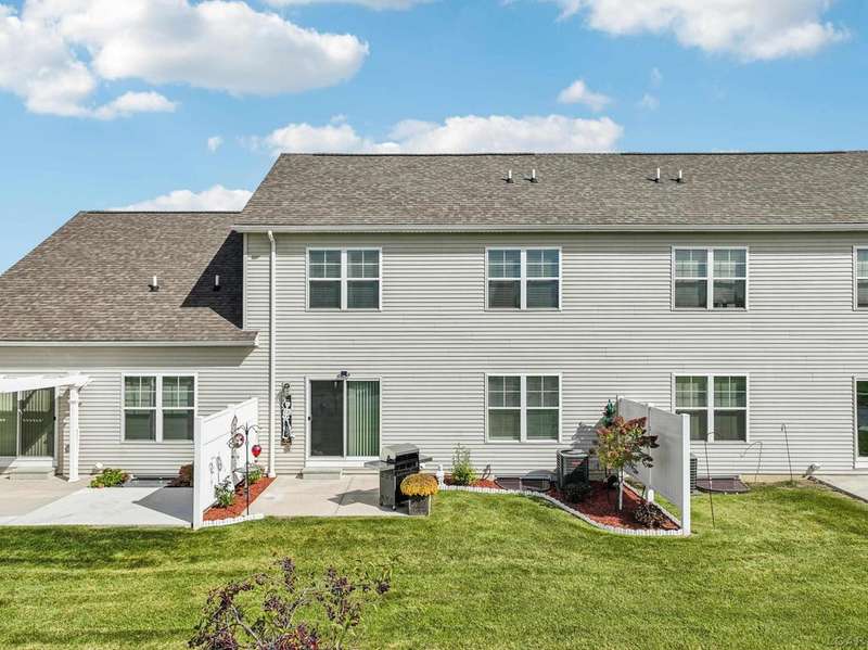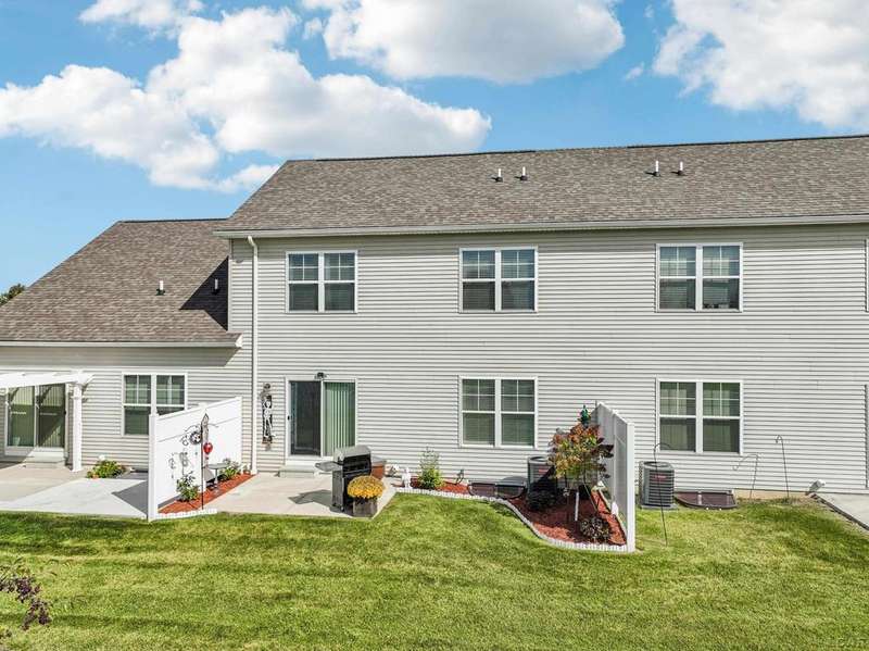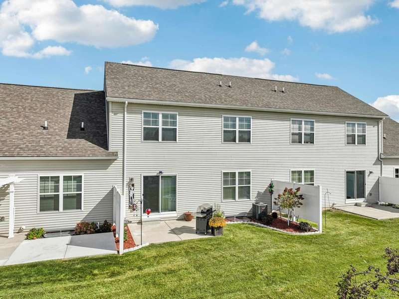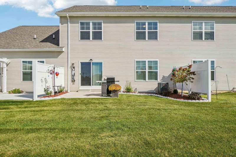 Here's the perfect opportunity to enjoy a maintenance free lifestyle. Better than brand new, this condo has a host of upgrades including upgraded flooring, quartz kitchen counter tops and undercabinet lights, custom blinds and window treatments plus rear patio landscaping. A list of upgrades is attached. Offering 3 bedrooms, including a 1st floor primary suite, 2 1/2 baths, first floor laundry, full basement with egress window and attached 2 car garage. Located a short distance from community clubhouse with an outdoor heated pool, fitness room, kitchen and lounge area.
