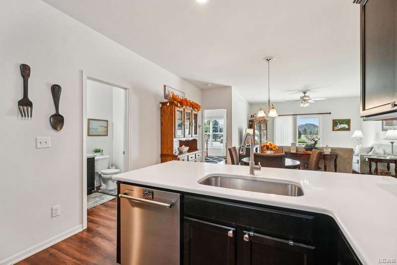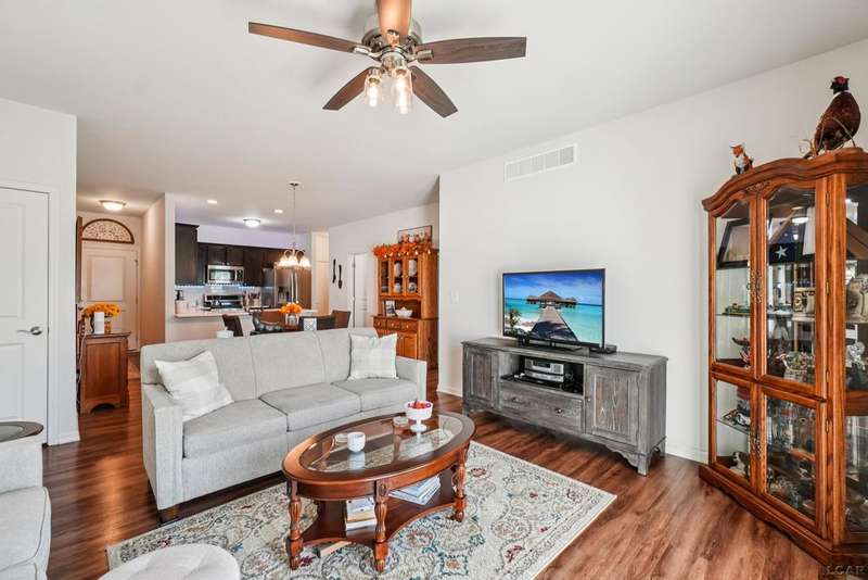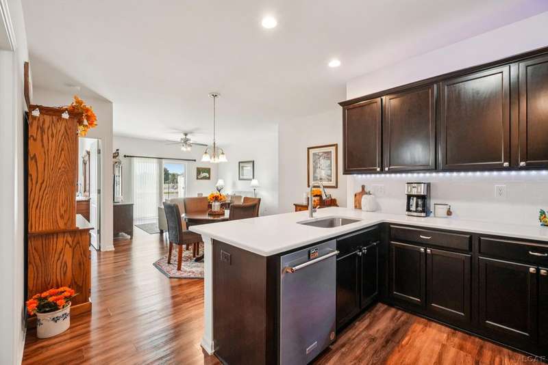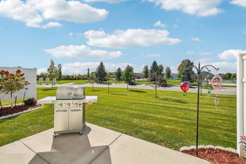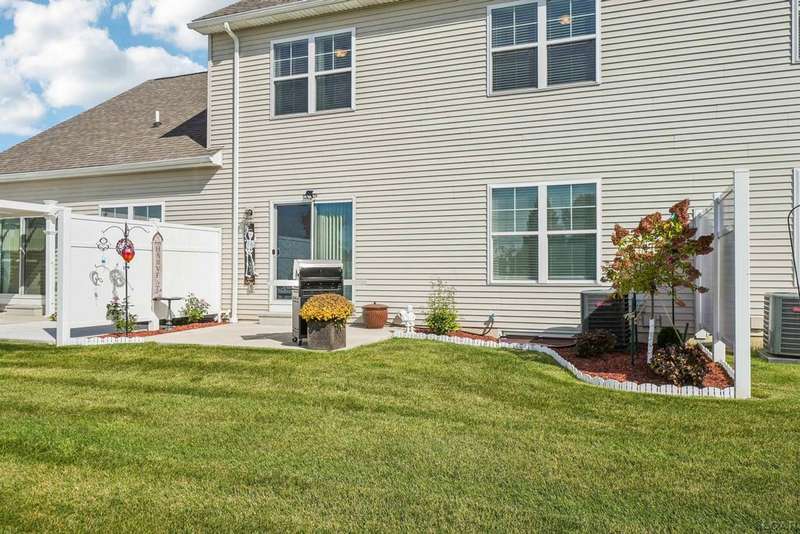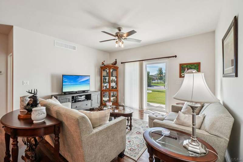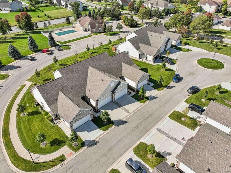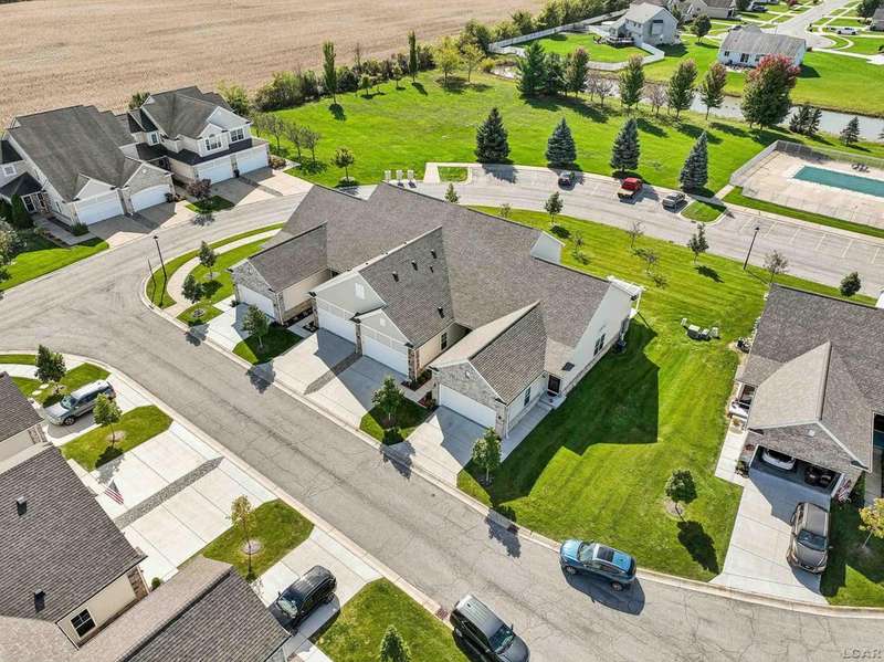 Here's the perfect opportunity to enjoy a maintenance free lifestyle. Better than brand new, this condo has a host of upgrades including upgraded flooring, quartz kitchen counter tops and undercabinet lights, custom blinds and window treatments plus rear patio landscaping. A list of upgrades is attached. Offering 3 bedrooms, including a 1st floor primary suite, 2 1/2 baths, first floor laundry, full basement with egress window and attached 2 car garage. Located a short distance from community clubhouse with an outdoor heated pool, fitness room, kitchen and lounge area.