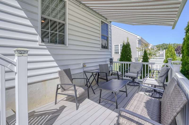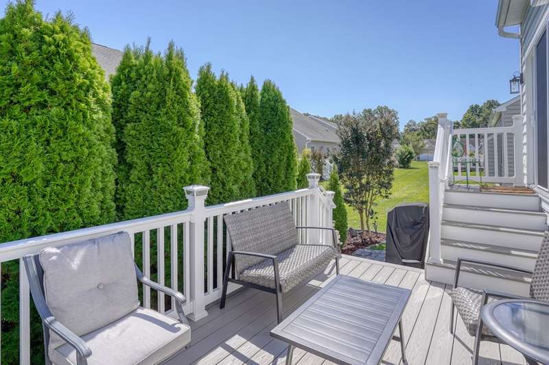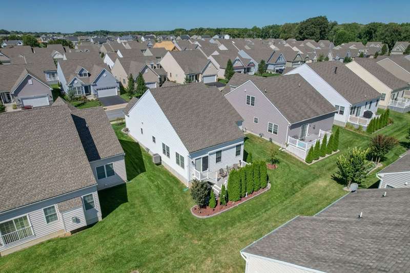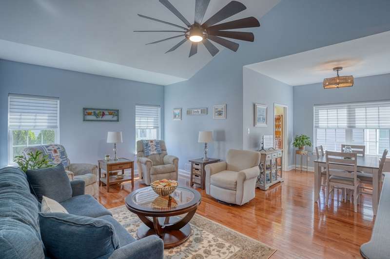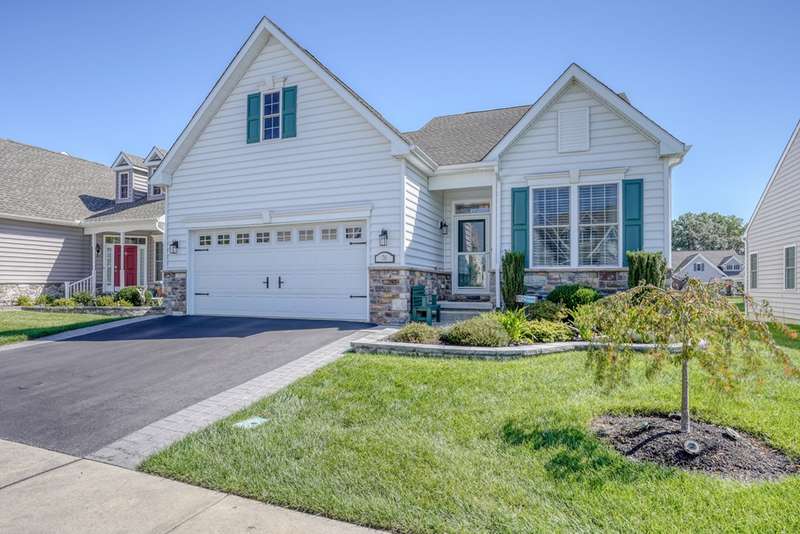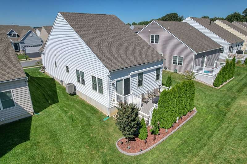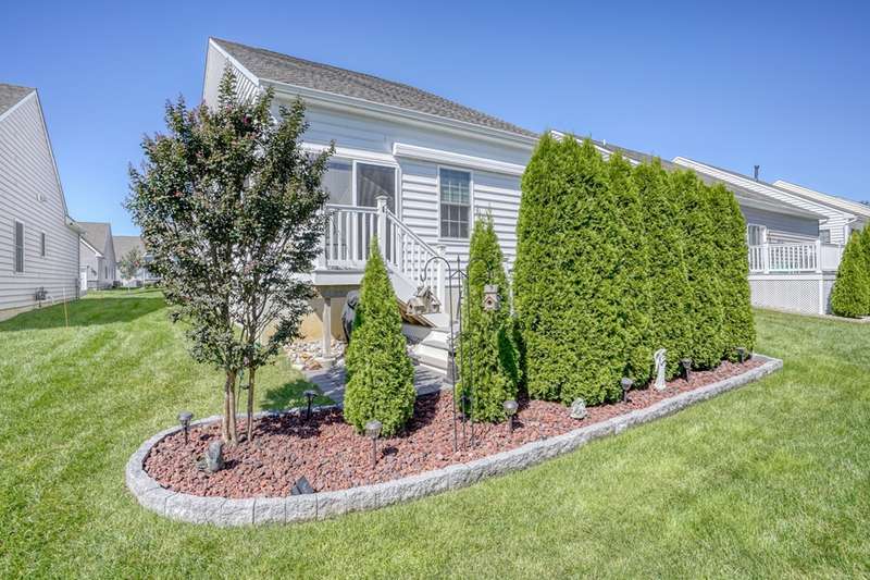 Welcome to the beautiful Village of Eastridge where this 55+ community has all the amenities you'll desire!! This very well maintained Bayard ranch style home features 2 bedroom, 2 baths with ample living space to enjoy quality time with family and friends. A beautiful fiberglass front door w/ leaded glass and matching transom take you inside this home. Now take notice of the stunning solid hardwood flooring, and the eye catching columns. The spacious updated kitchen features quartz countertops w/ ceramic tile backsplash, recessed lighting w/ pendant lights, double bowl basin sink, stainless steel appliances, stunning 42" walnut cabinetry with crown molding and convenient pull-out shelving. Two large pantries allow for additional kitchen storage. The added 4 ft extension, and cathedral ceilings, create a spacious and inviting living room area with ceiling fan creating an open concept for all to enjoy. The dining area leads to a cozy sunroom/sitting room featuring pocket doors and sliders (with shades inside of them) that lead to a 10x16 solid vinyl deck with vinyl railing and privacy trees for added space to enjoy. The primary bedroom features a large walk in closet with added closet organizer. The private bath offers a 5 ft. seated shower with glass doors and comfort height, and double vanity. A second bedroom is located on the other side of this home with access to a full hallway bathroom with tub. The laundry room has a sink and extra shelving for added convenience. If you need storage.... does this home have tons of storage... a five foot crawl space located off the kitchen that is so convenient, clean and organized... This home is a must see....shows like a model home. This home also has a 5 ft. conditioned crawlspace for more storage space, two sump pumps, one of which is water powered, for peace of mind should your electric go out. The HOA fees, include lawn maintenance and snow removal of not just the streets but sidewalks and driveways as well. The "Village of Eastridge" offers 34 acres of open space with walking trails, outdoor picnic areas, bocce ball, shuffleboard courts and a fantastic clubhouse with billiards, exercise room and more! The Village of Eastridge is located a short distance to popular retail stores, downtown Smyrna specialty shops and eateries with easy access to RT's 1 and 13.