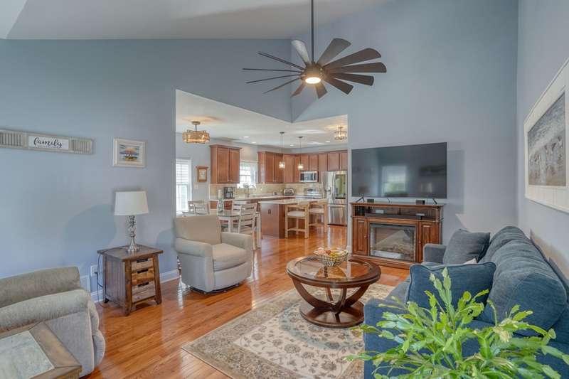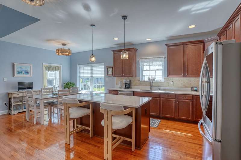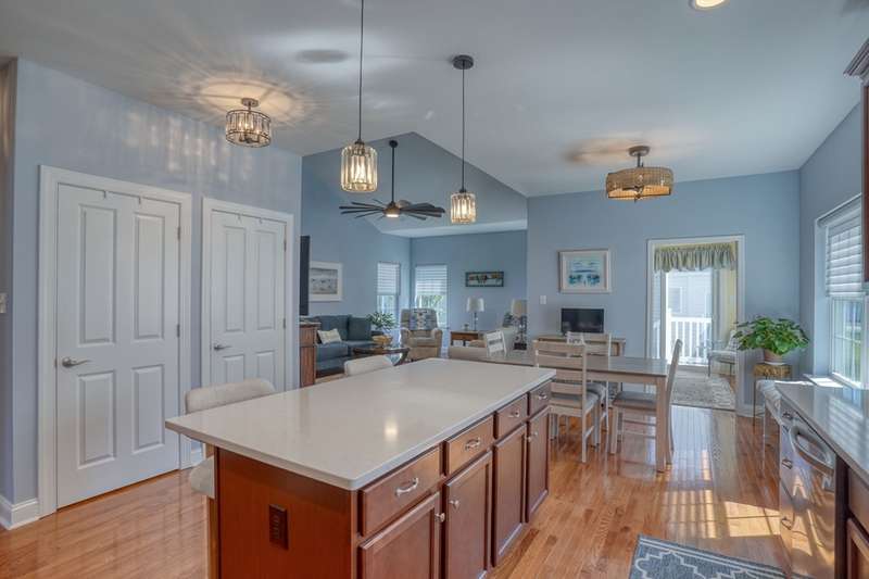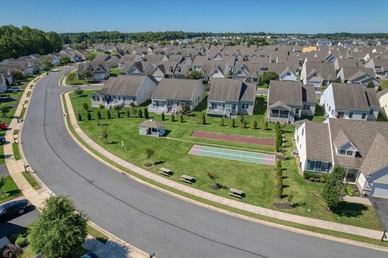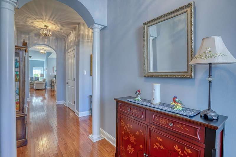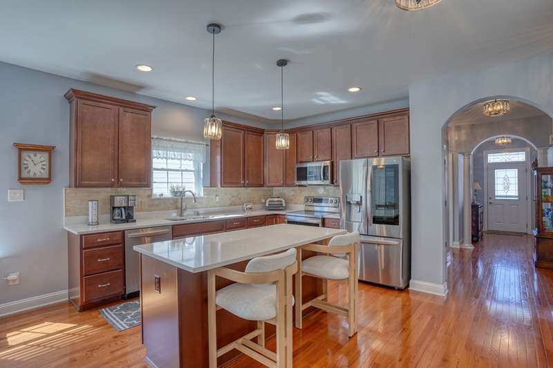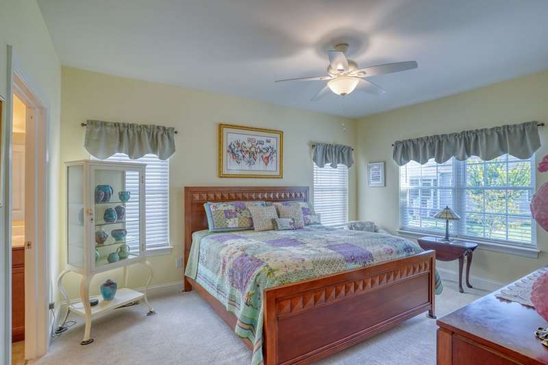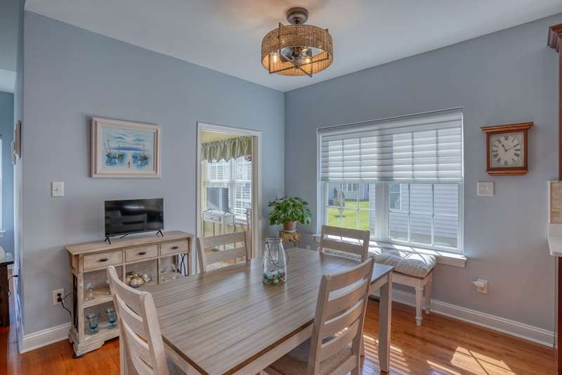 Welcome to the beautiful Village of Eastridge where this 55+ community has all the amenities you'll desire!! This very well maintained Bayard ranch style home features 2 bedroom, 2 baths with ample living space to enjoy quality time with family and friends. A beautiful fiberglass front door w/ leaded glass and matching transom take you inside this home. Now take notice of the stunning solid hardwood flooring, and the eye catching columns. The spacious updated kitchen features quartz countertops w/ ceramic tile backsplash, recessed lighting w/ pendant lights, double bowl basin sink, stainless steel appliances, stunning 42" walnut cabinetry with crown molding and convenient pull-out shelving. Two large pantries allow for additional kitchen storage. The added 4 ft extension, and cathedral ceilings, create a spacious and inviting living room area with ceiling fan creating an open concept for all to enjoy. The dining area leads to a cozy sunroom/sitting room featuring pocket doors and sliders (with shades inside of them) that lead to a 10x16 solid vinyl deck with vinyl railing and privacy trees for added space to enjoy. The primary bedroom features a large walk in closet with added closet organizer. The private bath offers a 5 ft. seated shower with glass doors and comfort height, and double vanity. A second bedroom is located on the other side of this home with access to a full hallway bathroom with tub. The laundry room has a sink and extra shelving for added convenience. If you need storage.... does this home have tons of storage... a five foot crawl space located off the kitchen that is so convenient, clean and organized... This home is a must see....shows like a model home. This home also has a 5 ft. conditioned crawlspace for more storage space, two sump pumps, one of which is water powered, for peace of mind should your electric go out. The HOA fees, include lawn maintenance and snow removal of not just the streets but sidewalks and driveways as well. The "Village of Eastridge" offers 34 acres of open space with walking trails, outdoor picnic areas, bocce ball, shuffleboard courts and a fantastic clubhouse with billiards, exercise room and more! The Village of Eastridge is located a short distance to popular retail stores, downtown Smyrna specialty shops and eateries with easy access to RT's 1 and 13.
