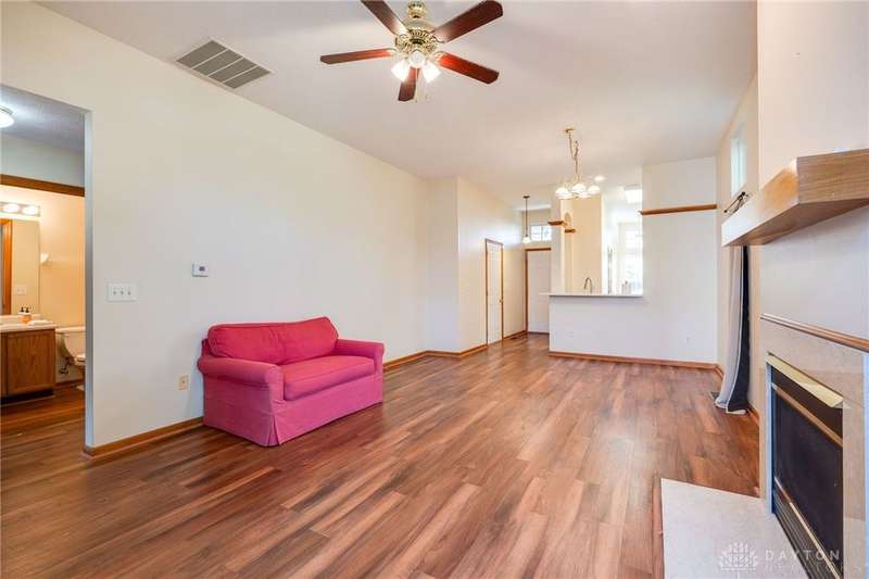 Welcome to this move-in-ready ranch-style condo in Centerville, offering two bedrooms, two full bathrooms, and ample comfortable living space. As an end unit, it provides extra privacy and natural light with a functional layout designed for effortless living. The spacious living room boasts laminate flooring and a cozy fireplace, with a sliding glass door leading to a back patio, perfect for relaxation or entertainment. The kitchen shines with a breakfast nook that's ideal for morning coffee, and a pass-through window to the dining room, creating an open, inviting flow for meals and gatherings. The large primary suite includes an en-suite bathroom and walk-in closet, offering a private retreat. A second bedroom and full bath add versatility for guests, office space, or hobbies. The utility room includes a large storage closet, plus a washer and dryer that convey with the home. Additional highlights include a two-car attached garage for convenience and storage. The community features a swimming pool and rentable clubhouse, and the location provides quick access to restaurants, shopping, and I-675 for an easy commute. Don't miss the opportunity to make this condo your new home. Listing Agent is related to Seller.