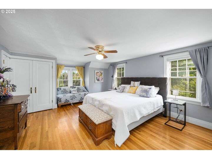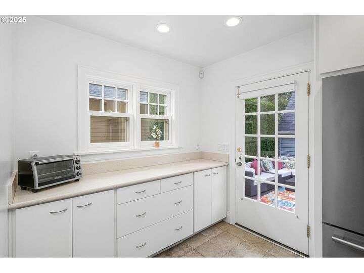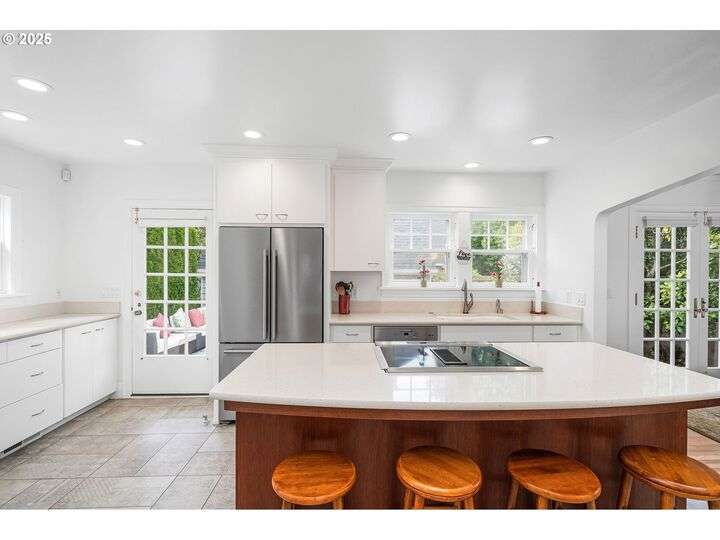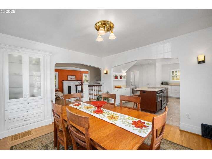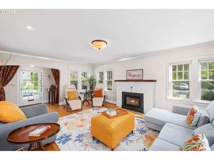 Charming 1927 English Cottage in Sought-After Alameda Neighborhood! Welcome to this beautifully updated 1927 English Cottage nestled on a picturesque corner lot in the heart of Portland’s coveted Alameda neighborhood. Timeless charm meets modern comfort in this 3-bedroom, 2-bathroom home, thoughtfully renovated while preserving its classic character. Step inside to find a light-filled living room with original hardwood floors, coved ceilings, and a cozy fireplace—the perfect space to unwind or entertain. The completely remodeled kitchen blends function and style, featuring custom cabinetry, quartz countertops, stainless steel appliances, and elegant tilework. Both full bathrooms have been tastefully updated with quality finishes, offering a spa-like feel. Upgrades include a newer roof, updated electrical, a high-efficiency HVAC system with central AC, additional split system in primary, and a heated double-car garage—rare for the neighborhood. Newer, expansive composition deck allows for outside entertaining and relaxation. Full basement features high ceilings plus tons of storage, wine or food cool storage, great for gym or crafts. Enjoy the convenience of modern systems with the grace of classic architecture. Outside, the corner lot provides privacy, mature landscaping, and room to relax or garden. Located on a quiet, tree-lined street just minutes from top-rated schools, parks, cafes, and shopping. This Alameda gem offers the best of both worlds—historic charm with peace of mind updates. Don’t miss your chance to call it home. [Home Energy Score = 2. HES Report at https://rpt.greenbuildingregistry.com/hes/OR10241043]