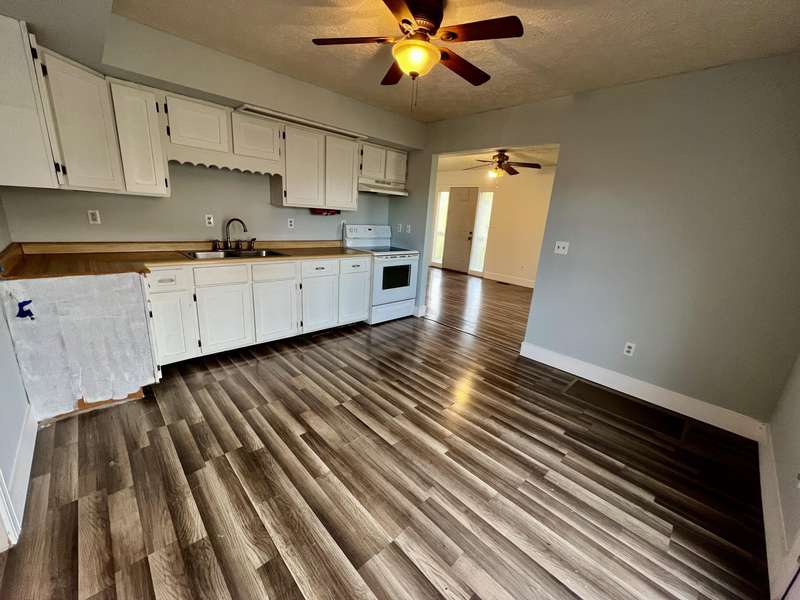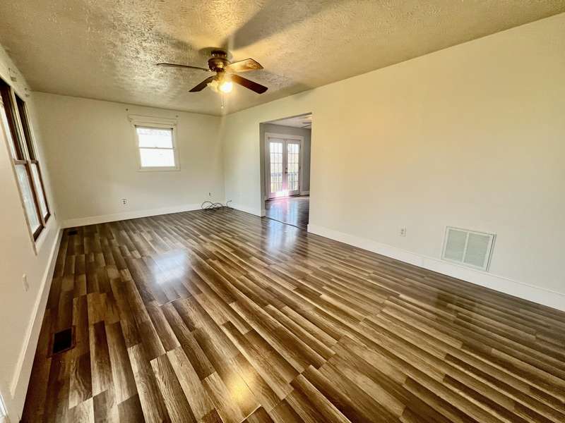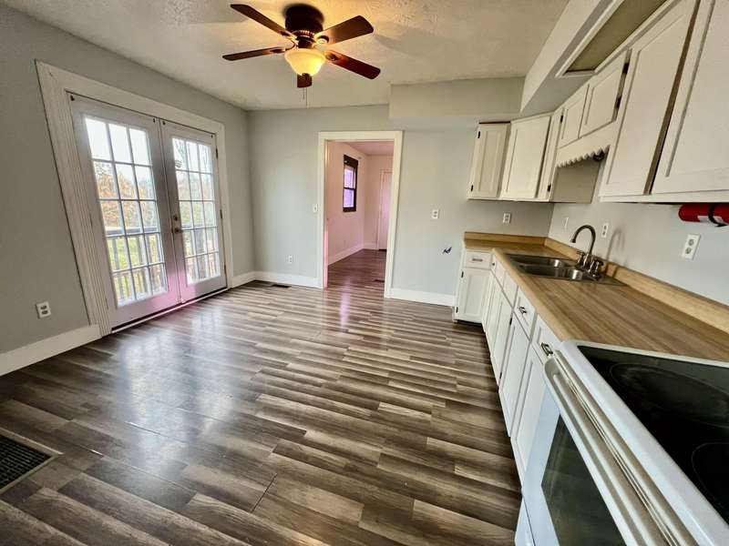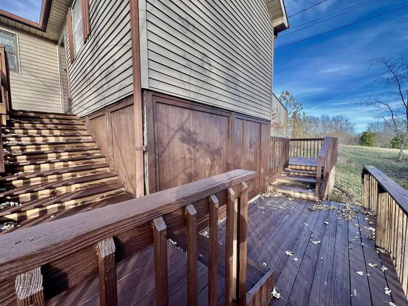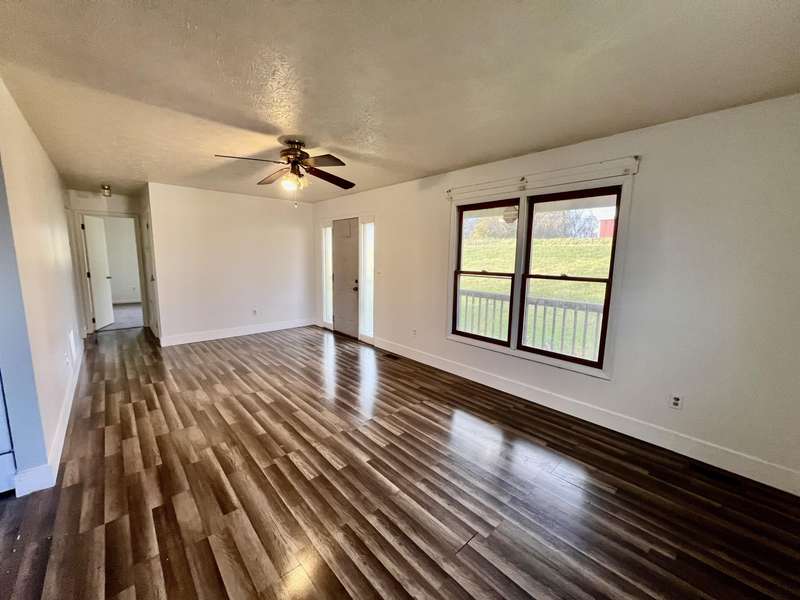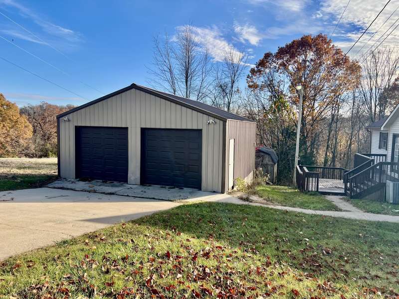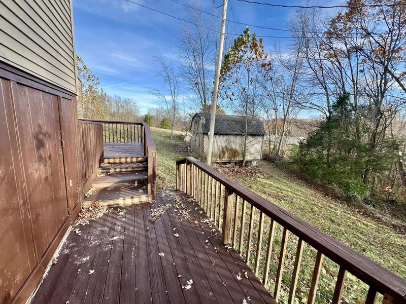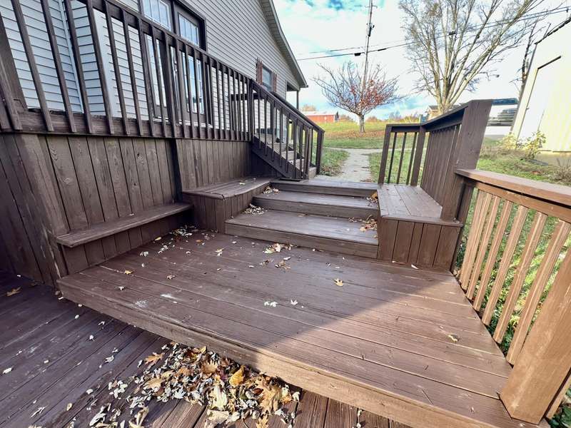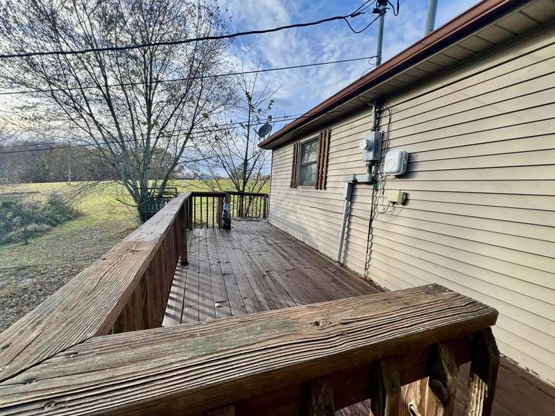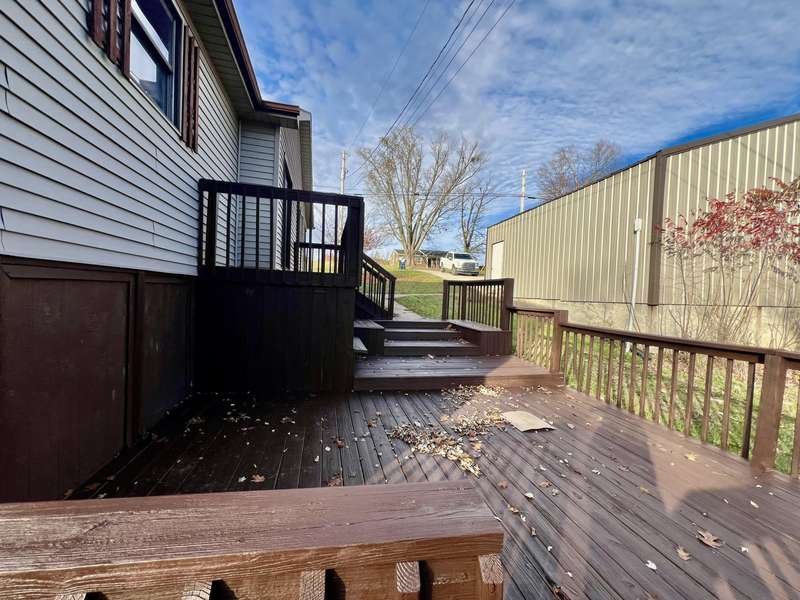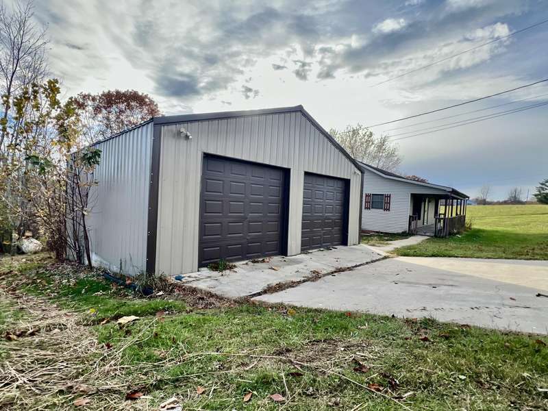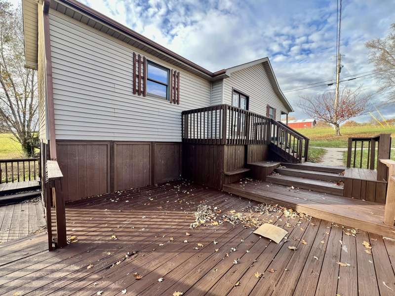 Take a look at this inviting 3-bedroom, 1-bath home that feels warm and welcoming the moment you arrive. Inside, you'll find a spacious living room that's perfect for relaxing or spending time with family, and a large kitchen. The home has a mix of laminate and carpet flooring and has just been freshened up with a new coat of paint. Step outside to enjoy the peaceful setting. There's a covered front porch made for sitting and visiting, plus a huge wraparound deck that leads to the back porch - great for cookouts or just enjoying the view. The 26x26 detached garage is a big bonus, offering lots of space for vehicles, tools, or hobbies, and it's insulated with a concrete floor. You'll also find a handy storage shed for your extras. All of this sits on 1.7 acres, giving you plenty of room to stretch out and enjoy the outdoors, and it's located less than a mile from Highway 150, making it convenient to town while still offering that quiet country feel.
