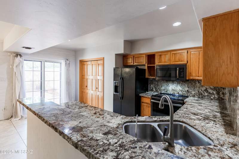 Location Perfect, the Heart of Central Tucson, Parks, the Loop, East/West access, secure community, peaceful, low traffic. 3 over sized bedrooms, 3 baths. Most if not all of this home has been remodeled, raw edge granite, flooring, windows, screens, blinds, one new AC in 2020, one rebuilt, stone sinks, cedar closets, stone court yard. Guest quarters w/private bath. This town home comes with two fire places, a private 2 car garage and a great high walled yard. Home backs up to a heavily treed common area and next to Rio Vista Natural Resources park. One mile to the U of A, Grocery, two hospitals/medial centers, Equestrian center , two parks, bicycle path, walk path, river path and the Loop. ''''Please see Agent Remarks, remodel list./costs.''' Vac. rental 30 day HOA, See agent remark