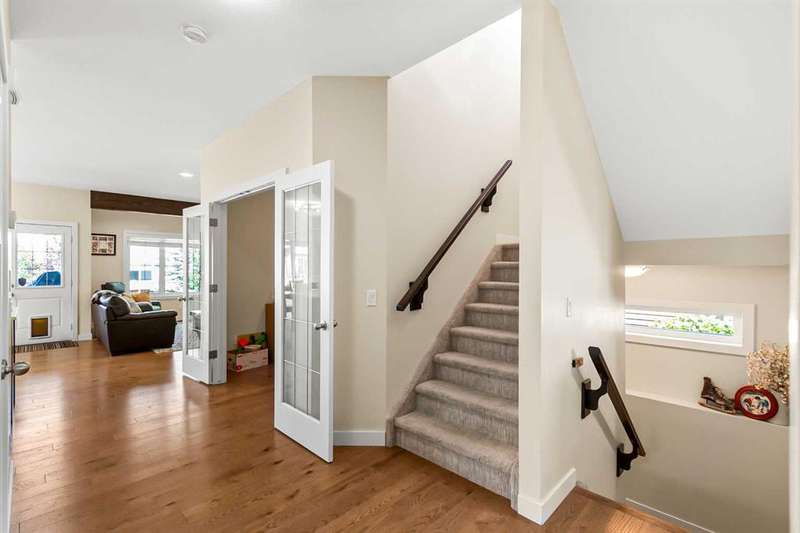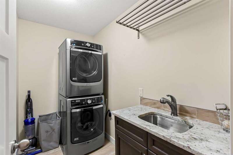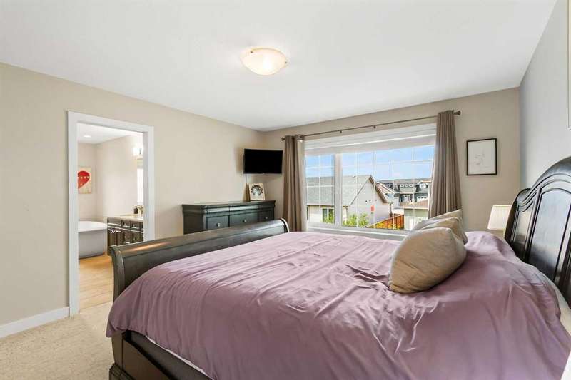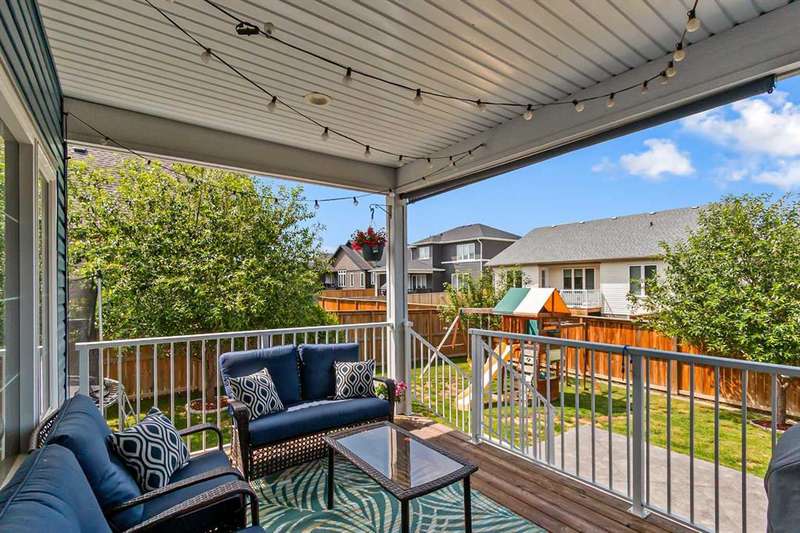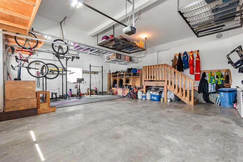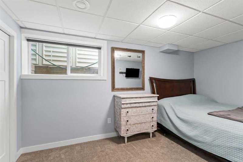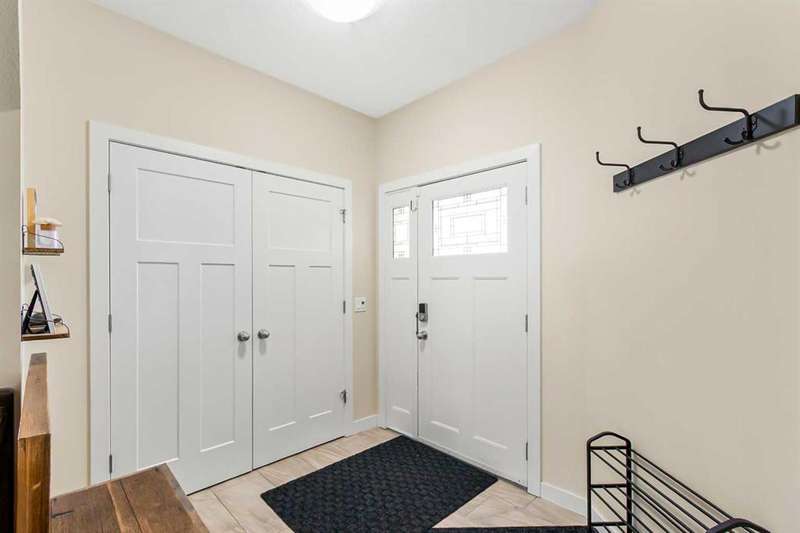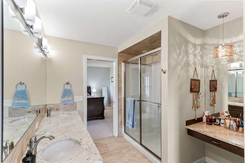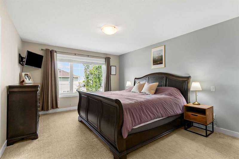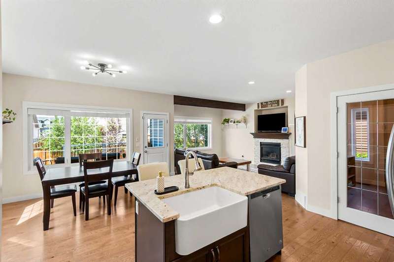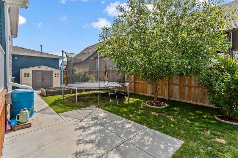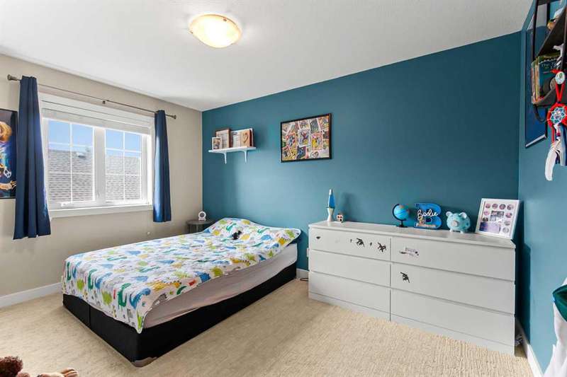 Welcome to this beautiful and well-appointed two-storey family home, built in 2014 and offering nearly 2,400 sq. ft. of thoughtfully designed living space. Ideal for a growing family, this home features three bedrooms upstairs and a fully finished basement, all set on a beautifully landscaped and fenced lot. Step inside to a bright and spacious main floor where the heart of the home is a large kitchen and dining area, complete with quartz countertops, modern cabinetry, and direct access to a west-facing covered deck—perfect for evening barbecues. The main floor also features a cozy living room with a gas fireplace, a private office or den, and a convenient two-piece powder room. Upstairs, you’ll find a generous primary suite with a walk-in closet and a luxurious five-piece ensuite. Two additional bedrooms, a bonus room, a four-piece bathroom, and the laundry room complete the upper level, making it perfect for busy family life. The fully finished basement is designed for entertaining and comfort, with in-floor heated, epoxy-coated concrete floors, a large family room with a wet bar and electric fireplace, a fourth bedroom, another full bathroom, and a utility/storage room. The triple-car oversized garage is a dream for hobbyists or anyone in need of storage, featuring in-slab heating, overhead gas heat, abundant built-in shelving, and plenty of ceiling height for storage. Both the home and garage are equipped with built-in shelving and Bluetooth-controlled speakers throughout, and Govee Perminent lights outside are included for modern convenience. Outside, the yard is fully fenced and professionally landscaped with mature trees, concrete curbing, stamped concrete patio and sidewalks, and a garden shed—offering a private and polished outdoor retreat. This home checks all the boxes for comfort, function, and style. Book your showing today!