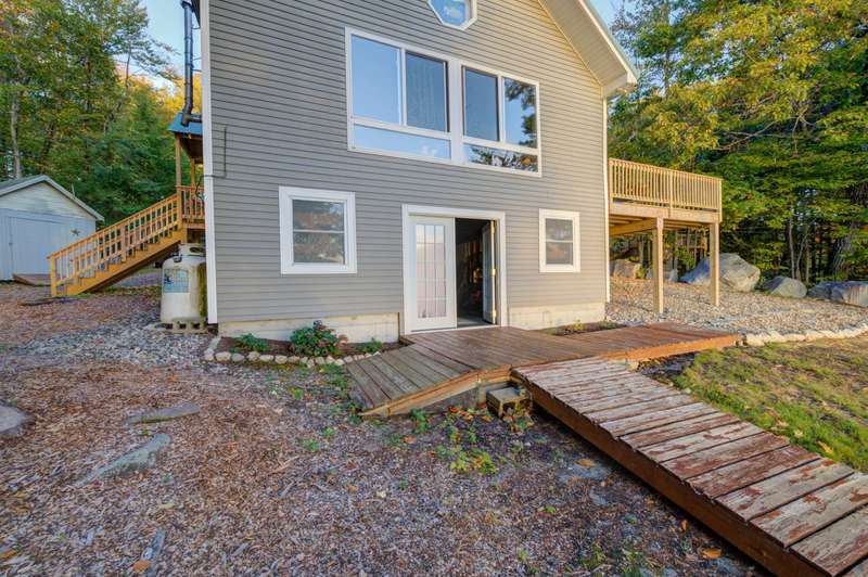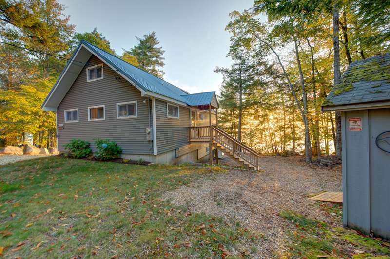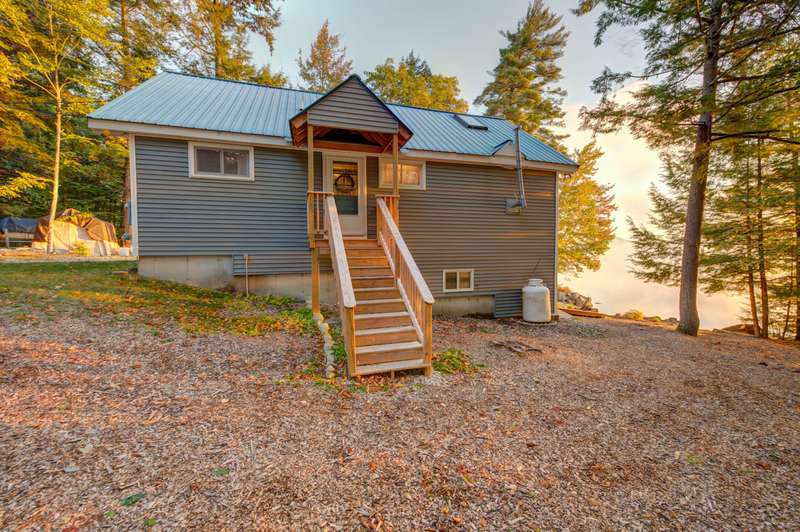 Here is your quintessential Maine lakefront camp. Located on the westerly shore of peaceful Hancock Pond in Demark Maine, just a short distance from Sebago and Bridgton, this property not only offers a peaceful respite from the craziness of daily life, but also offers comfort and convenience. Originally built in 1972, this camp is rustic but has all of the comforts and modern amenities you will need. An open kitchen and living room with large windows captures the peaceful view of the lake and it's beautiful sunrises. Three bedrooms and a bathroom on the main floor offers space for everyone and a loft bedroom upstairs is a great space for the extra guests or a bunkroom. Updated in 2023, this camp is in pristine shape with metal roofing, updated plumbing and electrical and newly constructed decks and stairways. There is nothing to be done except arrive and enjoy everything that this property has to offer. The waterfront boasts a sandy beach and a dock with clear and clean water. This property has a septic system and lake drawn water. It also has a propane fireplace for chilly nights or in the colder seasons. Properties on Hancock Pond do not come along very often. Don't miss this opportunity. FMI Contact Jackie Sawyer @ Meservier & Associates.