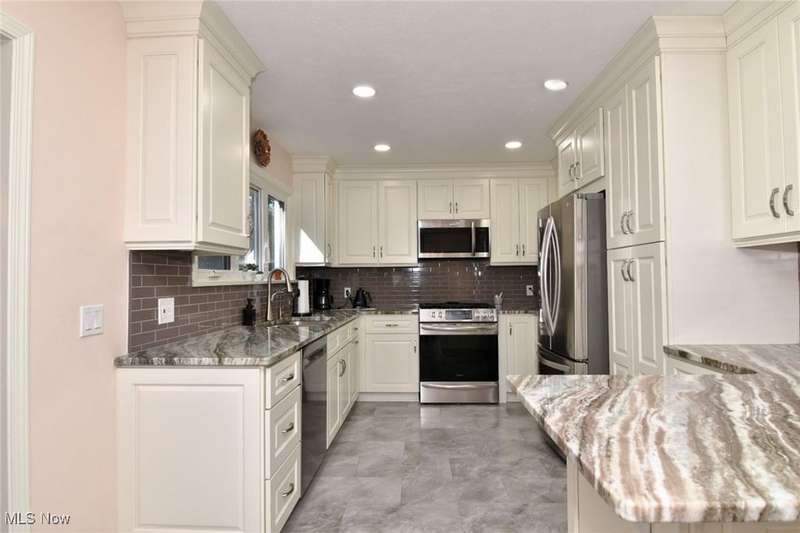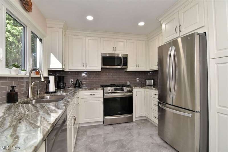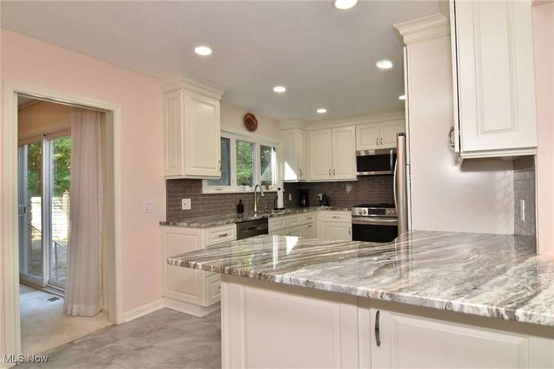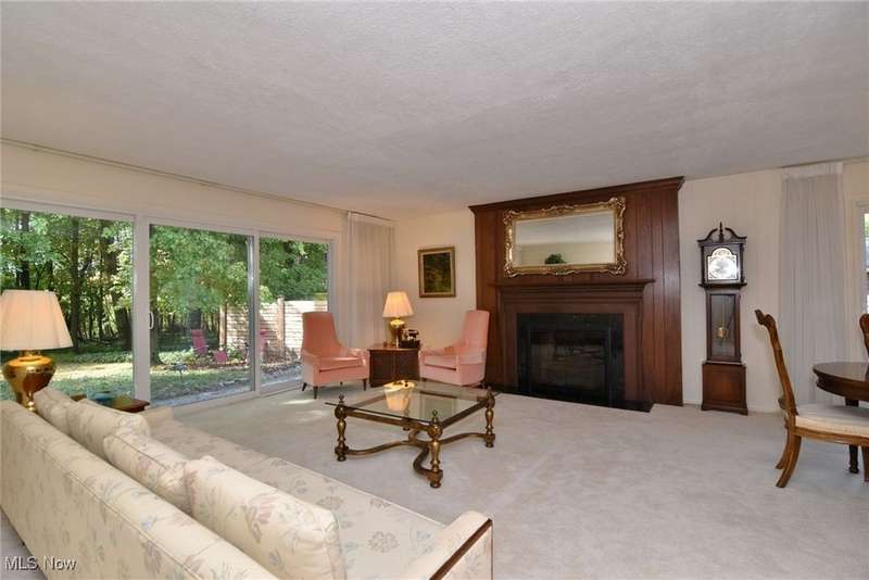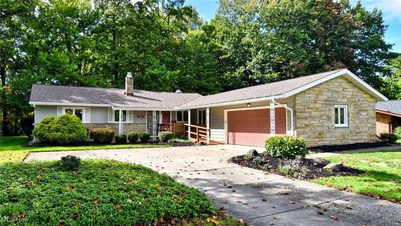 Welcome to your private retreat on nearly an acre, where nature meets comfort! This beautifully updated ranch backs directly to Euclid Creek Metropark, offering serene wooded views and unmatched privacy. The spacious living room features dramatic floor-to-ceiling windows and a cozy wood-burning fireplace framed by a warm wood-paneled wall. Enjoy meals in the formal dining room with sliding doors that open to a concrete patio?perfect for outdoor entertaining. The kitchen was completely renovated down to the studs in 2023, showcasing stone (Fantasy Brown marble) countertops, all-new cabinetry, updated lighting, and modern plumbing fixtures. A sunny eat-in area flows seamlessly into the refreshed family room, where dated paneling was removed and stylish new flooring installed. The large primary suite includes a generous closet and private bath with a stand-up shower, newer glass doors, updated vanity, and sink. Two additional bedrooms on the main level offer good-sized closets and share an updated hall bath featuring double sinks, granite countertops, and a ceramic tile tub surround. Head downstairs to a massive finished lower level with a second fireplace?perfect for a home gym, movie nights, or Card games. There's even a separate room ideal for a home office or guest bedroom, plus ample storage space. Additional upgrades include a brand-new roof and gutters (2025) and a newer hot water tank. Located on a quiet street in a peaceful neighborhood, this property offers a rare blend of modern updates, spacious living, and a backyard that feels like your own private park. Don't miss this unique opportunity to live right next to nature with all the comforts of home!
