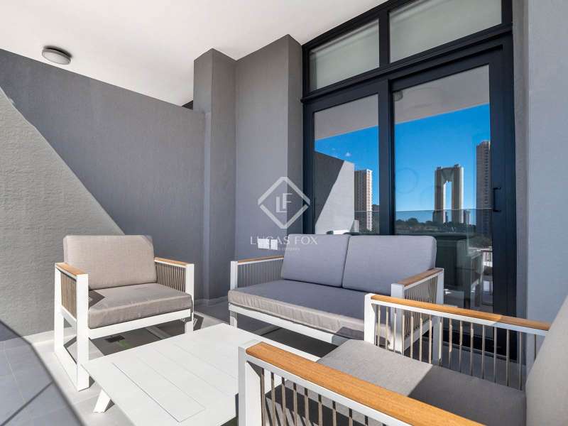 Discover your new home in an unbeatable location! This spectacular new build apartment, located in Benidorm, offers 3 spacious bedrooms, 2 full bathrooms, 104 m² of living space, and a 27 m² terrace that guarantees you can enjoy the Mediterranean climate to the fullest. The apartment comes fully furnished and equipped, all included in the price! Upon entering, you'll be greeted by a modern open-plan kitchen connected to the dining room and living room, from which you can directly access the terrace through elegant sliding glass doors. This design allows for abundant natural light, creating a warm and bright atmosphere. The main bedroom has an en suite bathroom , built-in wardrobes , and direct access to the main terrace, offering privacy and comfort. The other two bedrooms, located at the rear of the property, share a bathroom in the corridor. One of them has access to a private terrace, perfect for relaxing moments. This exclusive residential complex boasts exceptional communal areas : swimming pools, jacuzzis, a gym, a playground, sports courts, and over 1,000 m² of green areas to enjoy. The apartment also includes an outdoor parking space, all designed for your convenience. Located just a 10-minute walk from one of the best beaches on the Costa Blanca, with its fine, golden sand, this apartment is an excellent opportunity for those seeking quality of life in a privileged setting. Don't miss this unique opportunity! Come see this ideal home that combines comfort, modern design, and a strategic location.