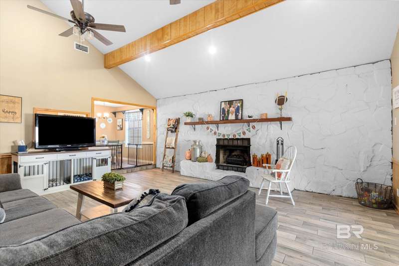If youve been searching for a large home in the Saraland school district that fits your not so large budget, this could be the one! Situated on a corner lot in the heart of Saraland, this spacious 5 BR/2.5 bath home offers right at 3700 square feet, which is room for everyone. While theres still room for some personal updates, the big-ticket items have already been taken care of, including a new fortified roof in 2023, the HVAC in 2017 and ceramic wood-look tile flooring in most of the downstairs living areas and the primary suite. Many rooms feature fresh paint and the vaulted living room with a wood burning fireplace sets the stage for cozy holiday gatherings. The safe in the closet under the stairs is remaining with the house too. Enjoy the fully fenced backyard and covered porch, perfect for outdoor fun year-round. With so much space and value, this home is priced to sell, so call your favorite realtor or myself to schedule your showing today!!! Buyer responsible for verifying all measurements and relevant details. Buyer to verify all information during due diligence.