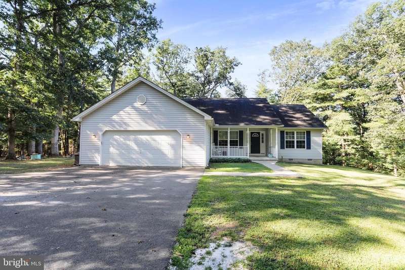 Welcome to 400 Spring Valley Drive, where comfort and country living meet on 5.36 wooded acres. This 3-bedroom, 2-bathroom rancher features an open floor plan with a split-bedroom design, luxury laminate flooring throughout, and fresh paint. The spacious great room flows into the kitchen with a breakfast bar and bump-out nook, perfect for casual meals and gatherings. A den/office sits just off the foyer for added flexibility. The primary suite offers private deck access and a bathroom with a soaking tub and shower. Outside, a 16x23 deck overlooks the fenced backyard, where deer and turkey often wander by. Evenings are made for the large firepit, ideal for entertaining or enjoying quiet nights under the stars. Additional highlights include an oversized 2-car garage, an extended driveway for extra parking, and a 3-year-old HVAC system. This quiet neighborhood offers the best of country living while keeping you close to town conveniences. Just a short drive takes you into downtown Berkeley Springs, or on quick trips to Winchester, VA, Martinsburg, or Hagerstown, MD. A perfect blend of serenity, comfort, and accessibility awaits.