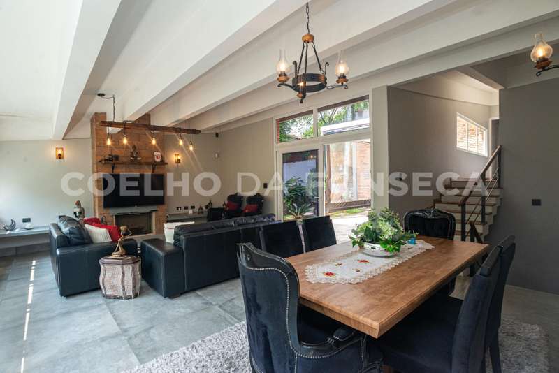 Amplo living para 4 ambientes : Home theater, sala de jogos, escritório, sala de jantar e sala de lareira