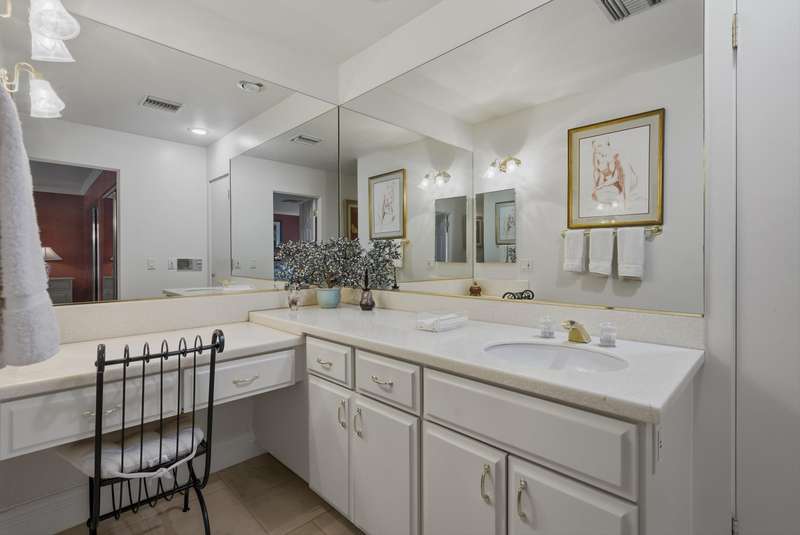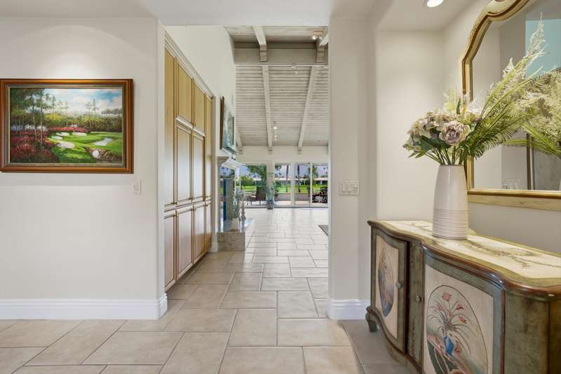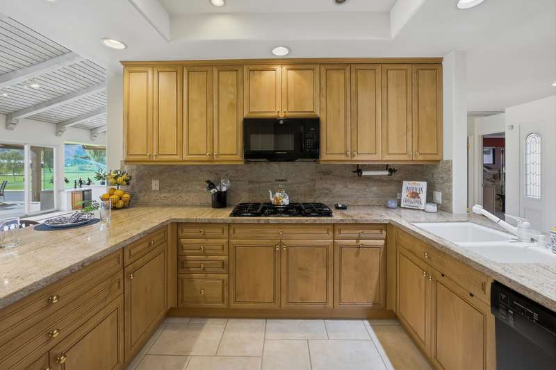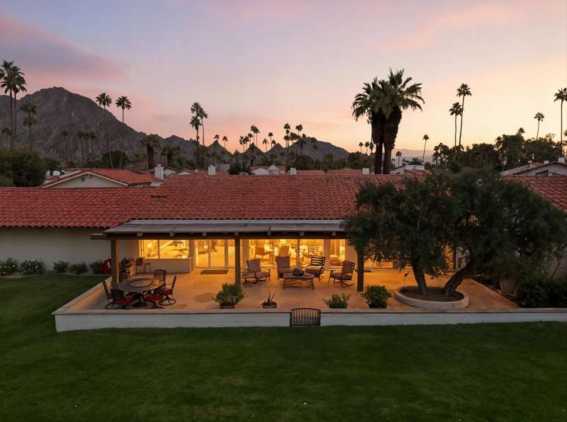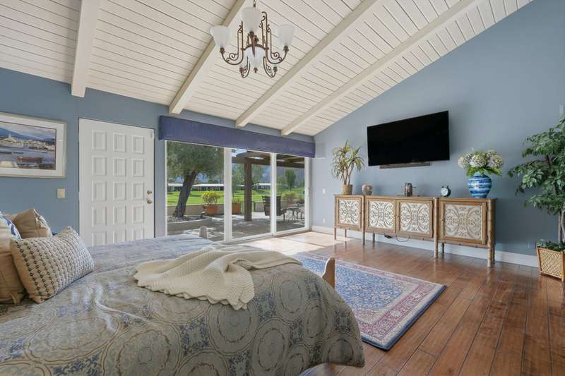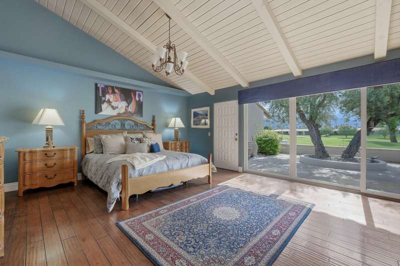 Welcome to your Ultimate Desert Sanctuary with Spectacular Mountain & Fairway Views Perfectly positioned to capture the absolute best of the Coachella Valley, this home enjoys a desirable south-facing orientation that bathes every room in natural light. Expansive mountain vistas create a dramatic backdrop to the pristine fairways just beyond your door, offering a truly priceless panorama. Nestled in a private and tranquil cul-de-sac, this stunning desert retreat embodies resort-style living at its finest. Just steps from the sparkling community pool, the home's thoughtful layout is designed around comfort and privacy, featuring three spacious suitesincluding a generous primary retreat and two additional private ensuite bedrooms, ideal for guests.Expansive glass sliders seamlessly merge indoor and outdoor living, flooding the open-concept floor plan with natural light and sweeping panoramic views. Vaulted, wood-beamed ceilings, a granite-accented fireplace, and an inviting wet bar combine to create an ambiance of refined comfort and effortless entertaining.The gourmet kitchen is a true chef's haven, showcasing granite countertops, counter height seating, handcrafted maple cabinetry, double ovens, and a five-burner gas cooktopall thoughtfully designed for both beauty and performance. A charming breakfast nook provides an inviting space to enjoy casual meals or a quiet morning coffee in comfort. The formal dining room captures panoramic sunset views, making every meal a special occasion.Experience the essence of desert living from the moment you step outsidewhether gathering in the front courtyard with its built-in BBQ and seating area or the expansive back patio with multiple seating areas, creating the perfect setting for sunset cocktails or cozy evenings beneath the desert sky.Additional highlights include a two-car garage plus a golf cart garage with direct golf course access. Whether you are entertaining, relaxing, or simply savoring the serenity, this property offers a rare blend of sophistication, warmth, and natural beautya true desert sanctuary designed for luxurious living. Come see why we LOVE this home!!!!