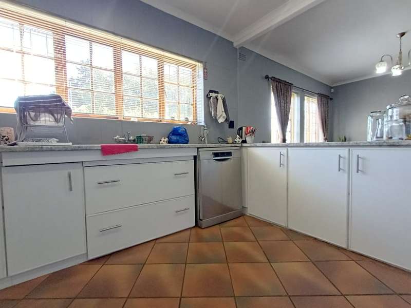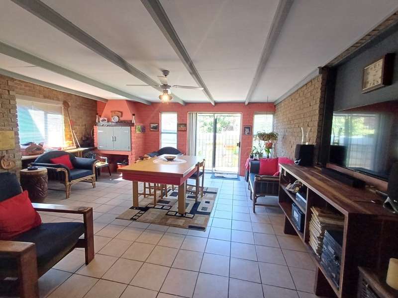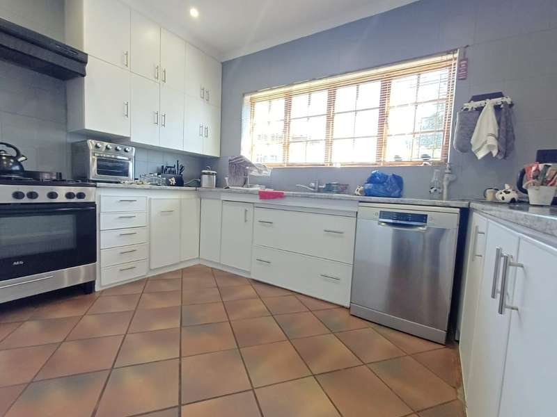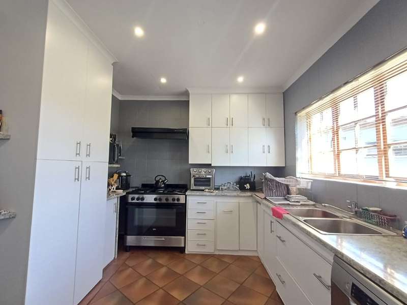 Enjoy peace and tranquillity in this quiet cul-de-sac, where children can still safely ride their bicycles and neighbours greet each other as friends. This property offers the perfect balance of space, comfort, and functionality. On entry, a versatile room to the right can serve as a home office or private lounge, while the left side opens into a bright dining area / lounge and modern kitchen. The kitchen is fitted with contemporary cupboards and finishes as well as a gas stove, with a separate laundry and direct access to the backyard. Four spacious bedrooms three with built-in cupboards. The main bedroom features a modern en-suite with a shower, basin, and toilet. Family bathroom includes a shower, bath, basin, and toilet for convenience. A generous braai room with built-in braai and doors leading outside, perfect for family gatherings and entertaining. A separate room with its own bathroom extends directly from the braai room — ideal as a guest suite. Extra length, double automated garage with direct access into the home. Two geysers are connected to the house, ensuring ample hot water supply. The garage also connects to an outside room with shower, basin, and toilet, offering excellent potential to convert the space into a self-contained flatlet. Wendy house for garden tools or storeroom. Don’t miss out on making this house your home where you can generate some extra income whilst relaxing and enjoying the peace and quite of the surrounding area.
