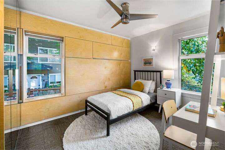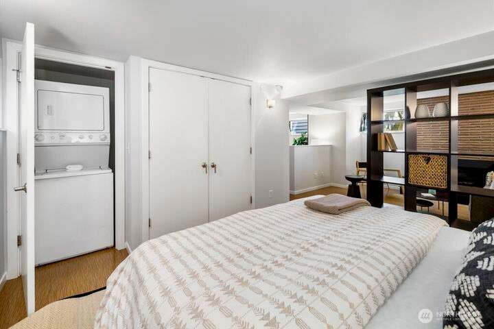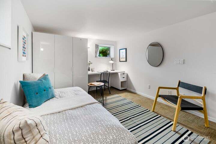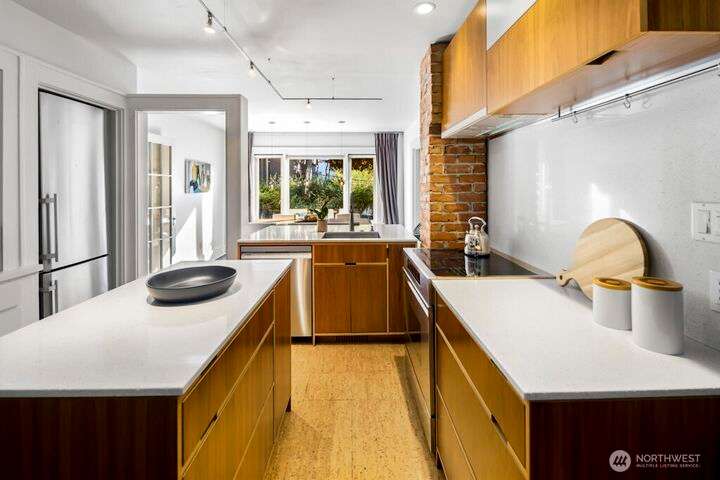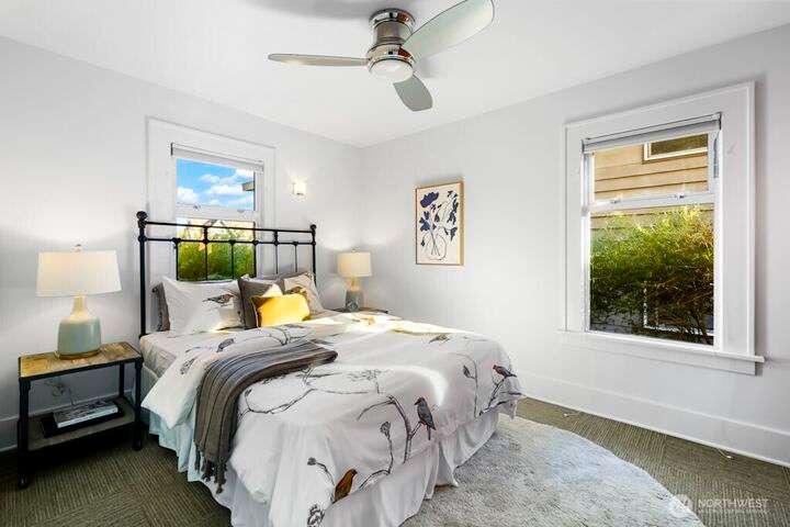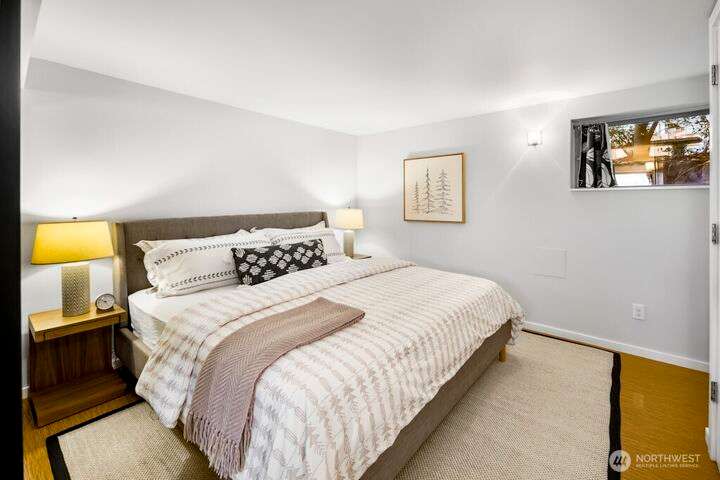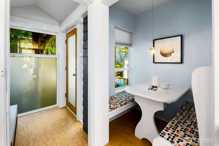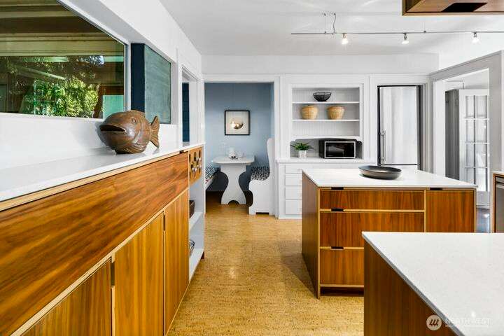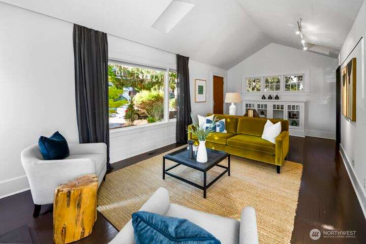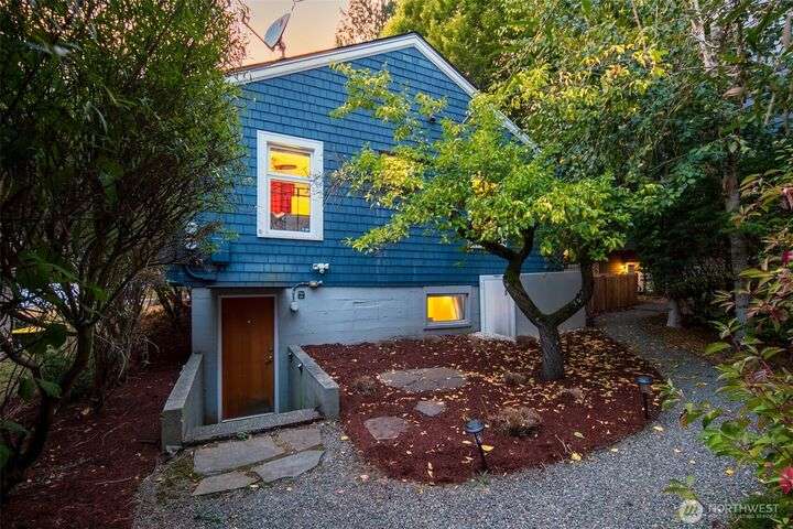A Fremont classic reimagined inside and out. Step into a vaulted living area where daylight pours through skylights across original millwork and built-ins. Defined rooms keep the bungalow’s flow while a picture window freshens sightlines. Custom 11-ply walnut Kerf cabinetry pairs with cork floors and Caesarstone; a breakfast nook shifts from coffee to laptop spot. Thoughtful details, a niche for the Liebherr fridge and chimney-turned range hood, maintain a serene, uncluttered feel. Lower-level ADU with private entry presents a short- or long-term rental opportunity. Outside, a grid-peephole front door and Cor-Ten garden set the tone, blocks to the Cheshiahud Loop, Gas Works Park, Stone Way cafés, and the Fremont Troll. A must see!