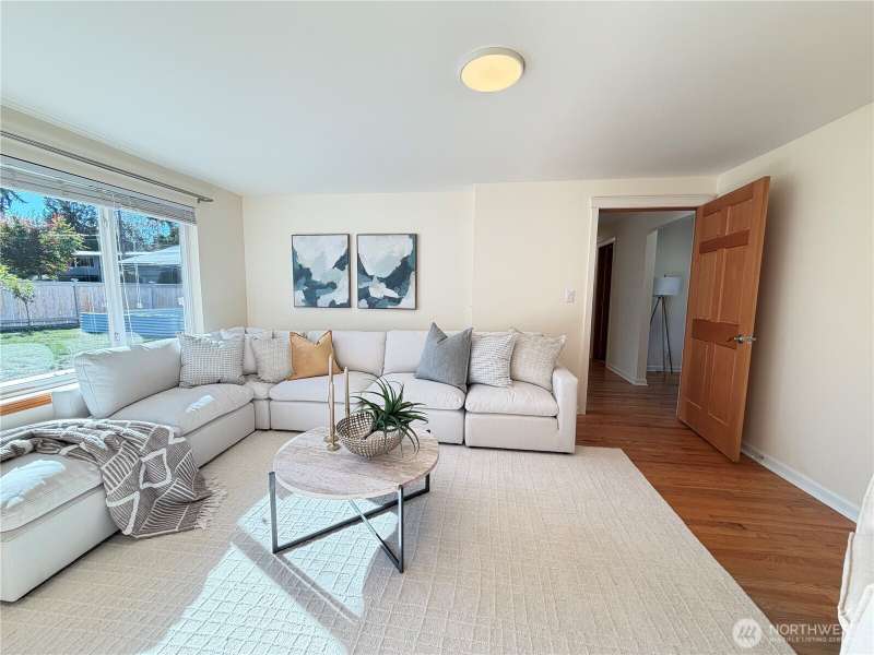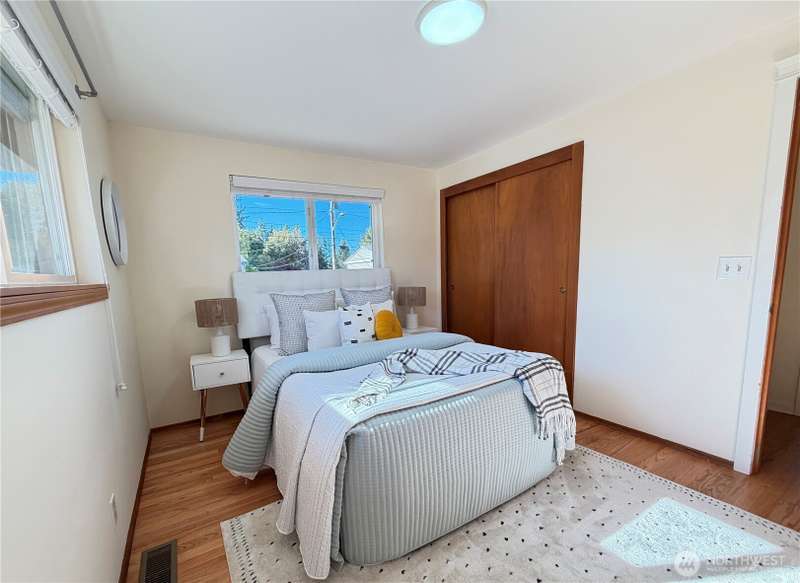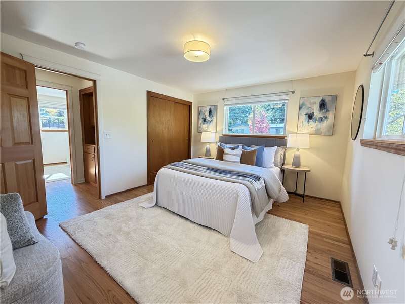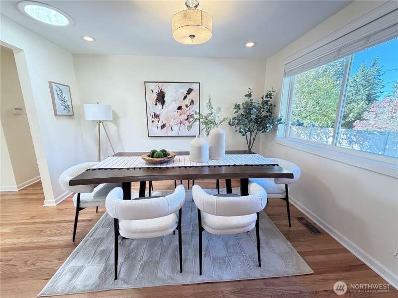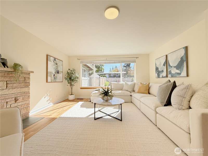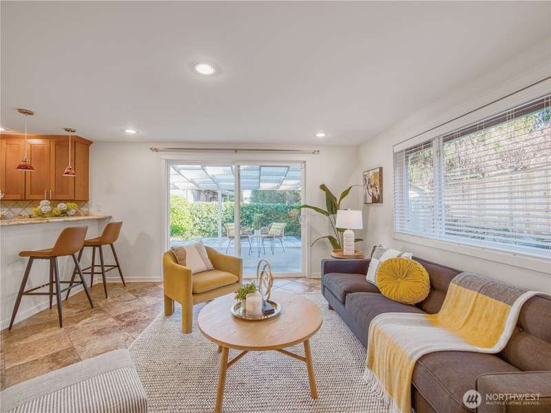 Beautifully updated rambler in the heart of Newport Hills. Spacious living room with cozy gas fireplace. Chef’s kitchen features granite countertops, cherry cabinets, ample storage, pot filler, and new 5-burner cooktop, opening to dining and great room for easy entertaining. Hardwood floors throughout, remodeled baths with heated tile floors. Fully fenced front & back yards with garden and shed. Metal roof, solar tubes, tankless water heater, A/C, 200-amp panel. Near parks, trails & top Bellevue schools.