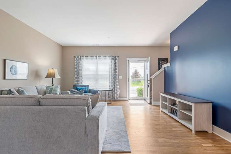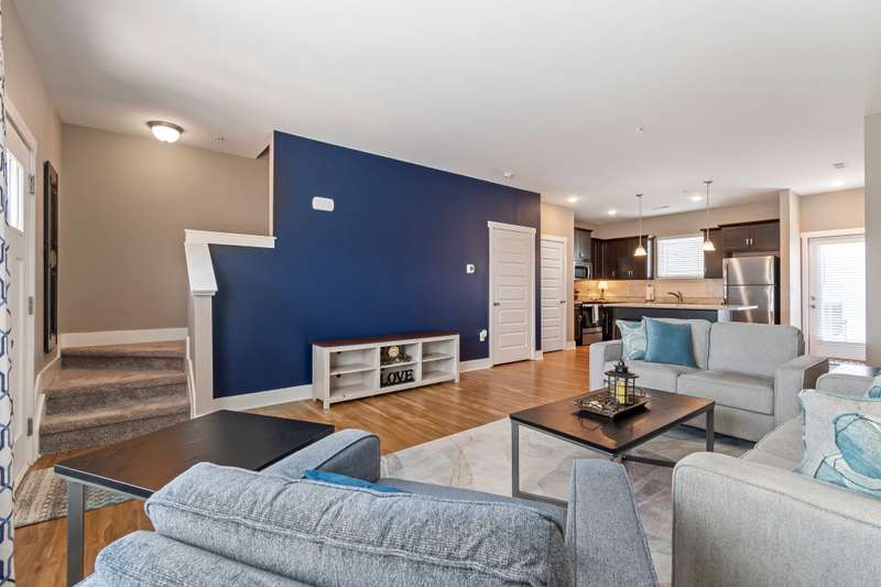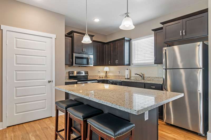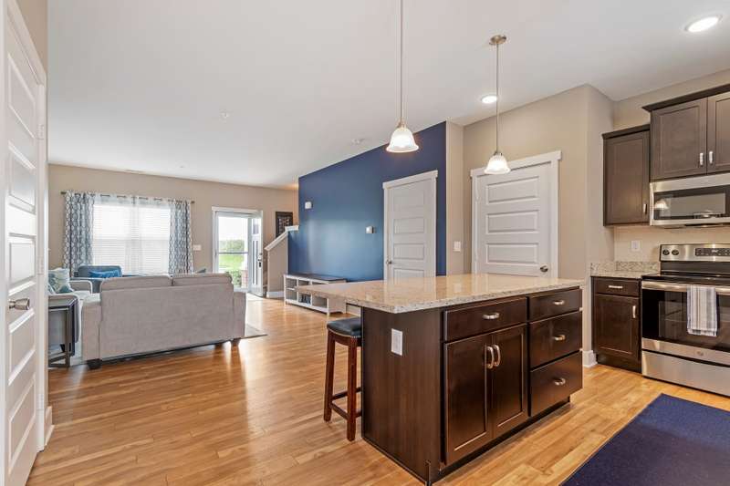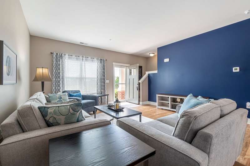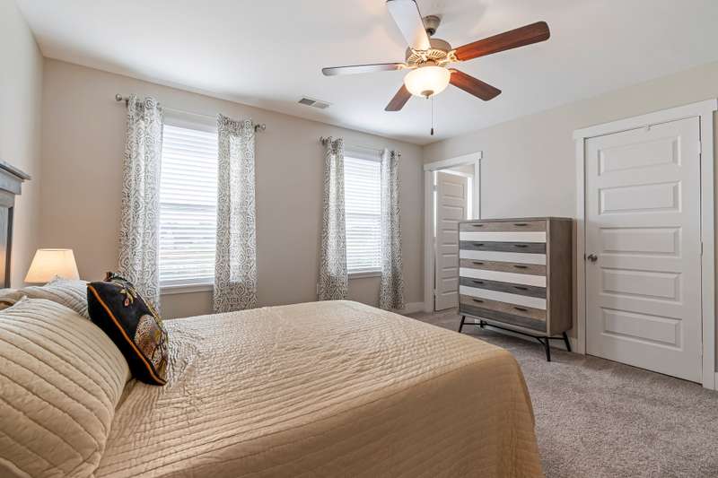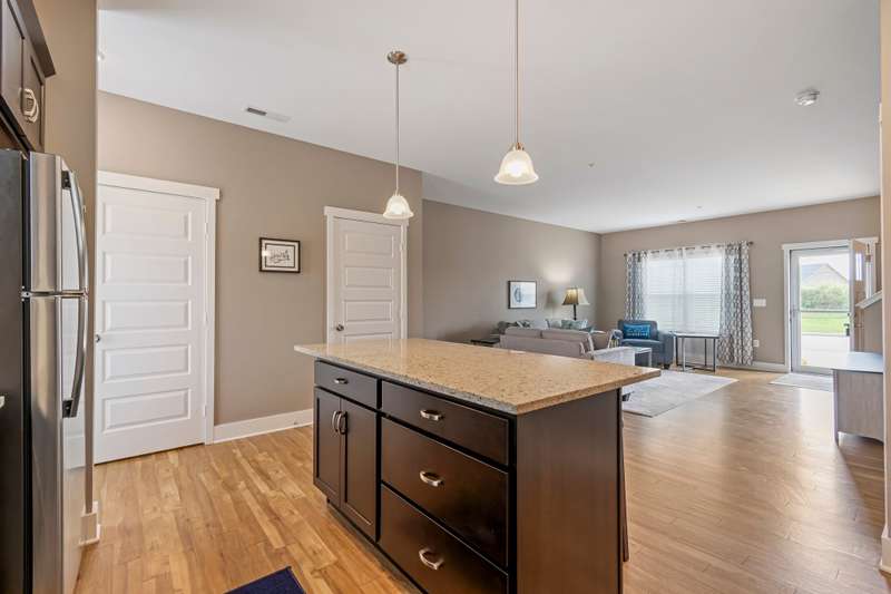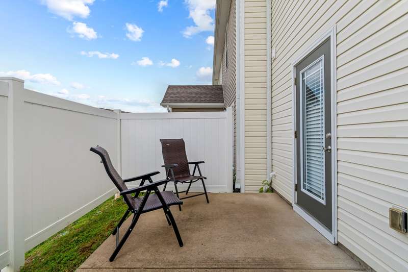 Impeccably maintained townhome located at the end of a quiet street yet close to shopping, grocery and restaurants! The main level features durable solid surface flooring throughout, creating an open and cohesive living space. Enjoy a spacious kitchen with a pantry, a convenient coat closet, and a guest-friendly half bath. Upstairs, you'll find two generously sized bedrooms--each with large closets and private ensuite bathrooms, ideal for comfort and privacy. Step outside to a private patio with extended fencing, perfect for relaxing or entertaining, plus a large exterior storage closet. This move-in-ready home includes two designated parking spaces and offers easy access to nearby shopping, dining, and I-65 for a smooth commute. Somerset Springs community amenities include a swimming pool, fitness center, walking trail, and playground--offering something for everyone! Great neighbors and lots of privacy. Perfect for evenings at home.