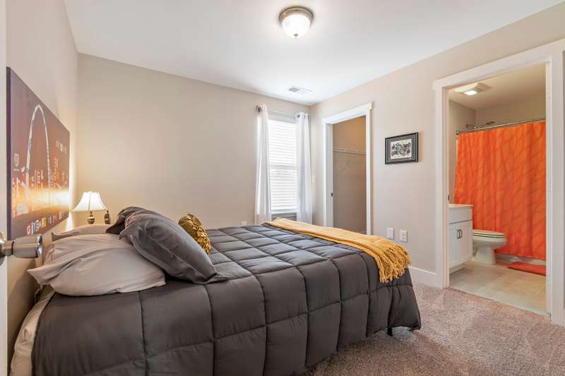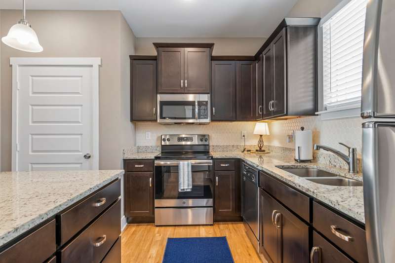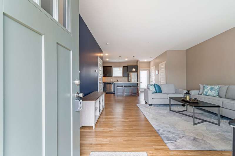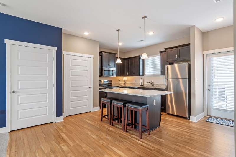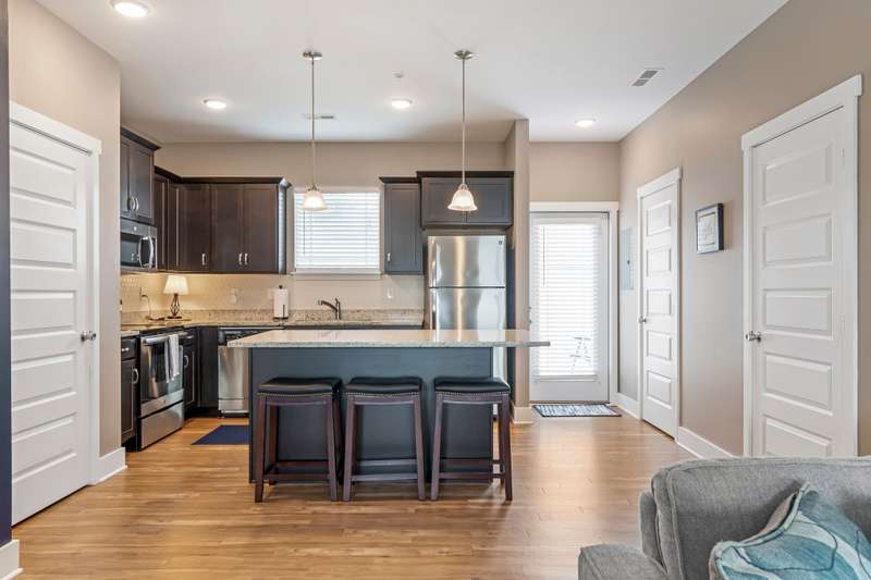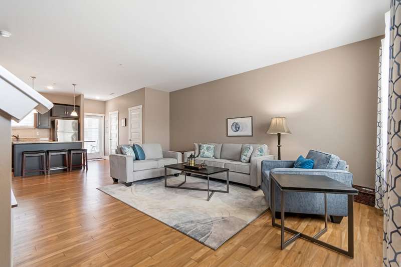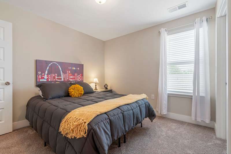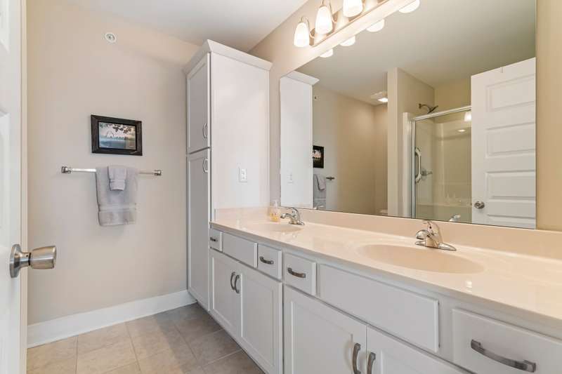 Impeccably maintained townhome located at the end of a quiet street yet close to shopping, grocery and restaurants! The main level features durable solid surface flooring throughout, creating an open and cohesive living space. Enjoy a spacious kitchen with a pantry, a convenient coat closet, and a guest-friendly half bath. Upstairs, you'll find two generously sized bedrooms--each with large closets and private ensuite bathrooms, ideal for comfort and privacy. Step outside to a private patio with extended fencing, perfect for relaxing or entertaining, plus a large exterior storage closet. This move-in-ready home includes two designated parking spaces and offers easy access to nearby shopping, dining, and I-65 for a smooth commute. Somerset Springs community amenities include a swimming pool, fitness center, walking trail, and playground--offering something for everyone! Great neighbors and lots of privacy. Perfect for evenings at home.
