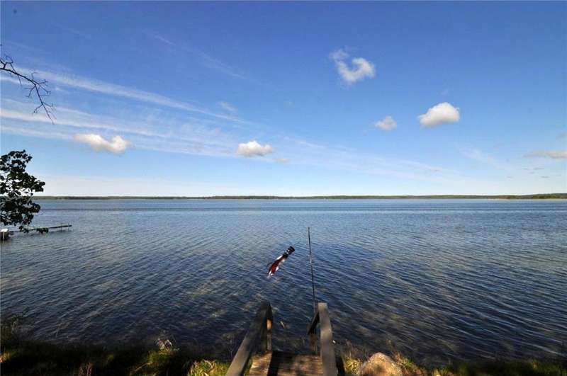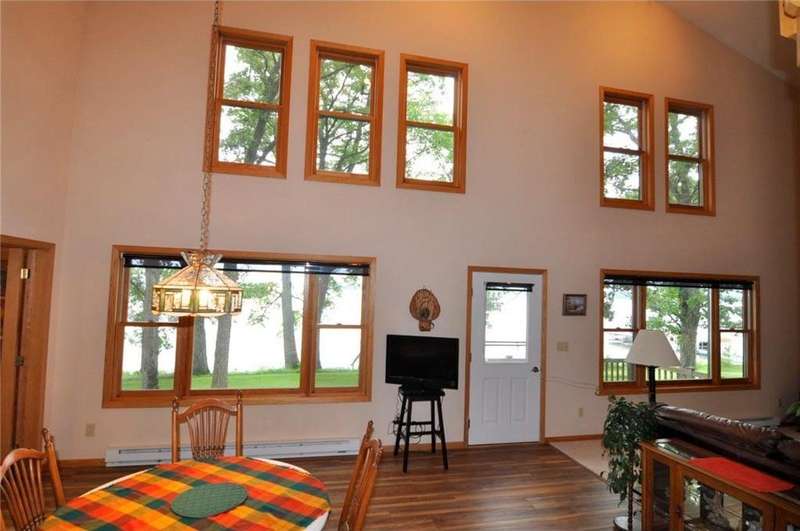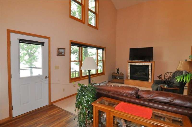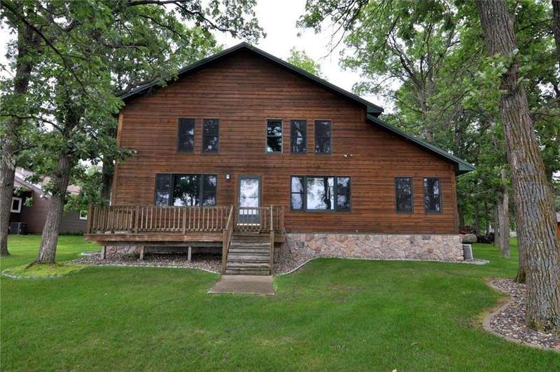 Stunning west-facing home with sunset views on Leech Lake with 100 ft of sandy shoreline. Discover breathtaking big water views and unforgettable sunsets from this spacious home nestled on a level lot with a short set of stairs at the lakeside. Designed for comfortable lakeside living, this 3,000 square foot, three-level home welcomes you with a charming 3-season porch that leads to a bright and airy sunroom. The main floor boasts an open-concept design with expansive windows framing the lake, a large bedroom, main-floor laundry, and a full bathroom. Upstairs, the loft offers additional living space, stunning lake views, and another large bedroom with a half-bath. The lower level features a spacious third bedroom that would benefit from the addition of an egress window. The compliant septic system is sized for a three-bedroom home. There is a large recreation room, a ¾ bath, a cedar sauna , a hobby room, and a utility room with a generator panel. There is a whole house generator that is included in the sale. Outside, you'll find a paved driveway, heated and insulated three-car garage with openers, along with an additional two-car garage, offering ample storage for vehicles, boats, and lake toys. Don't miss the chance to experience serene lakeside living with unmatched views from this exceptional Leech Lake retreat!