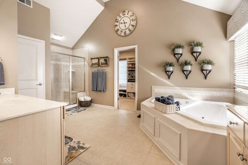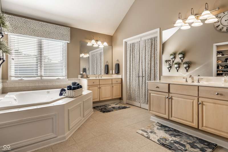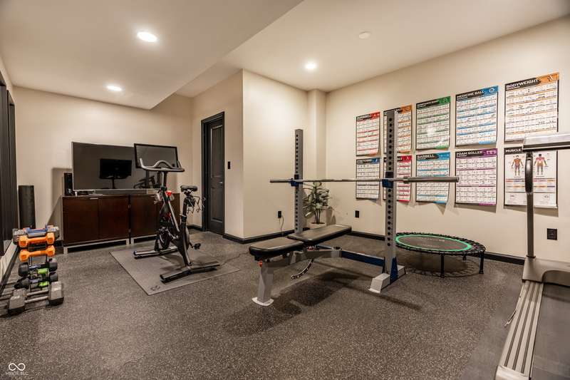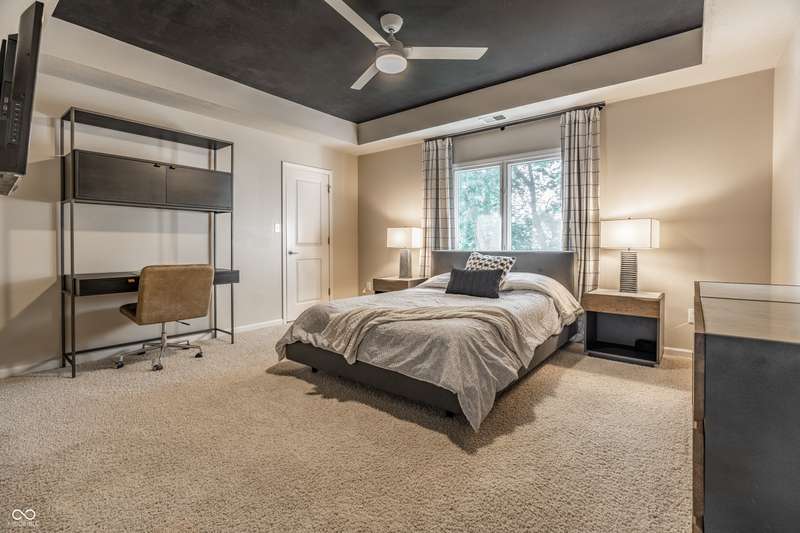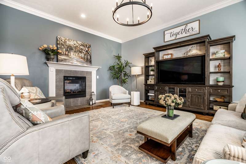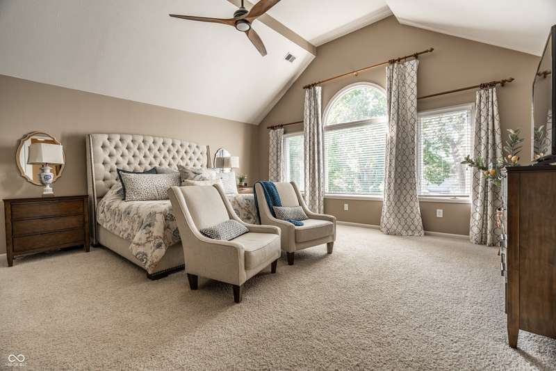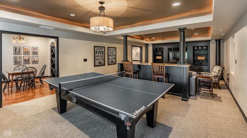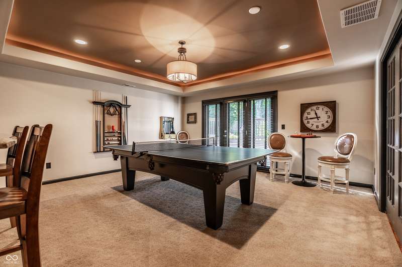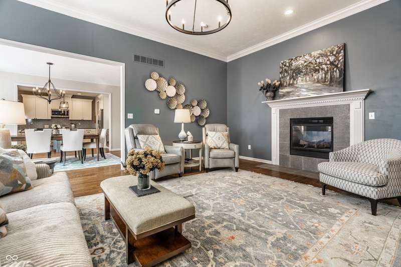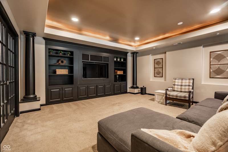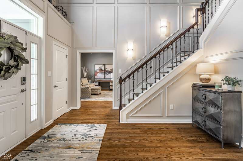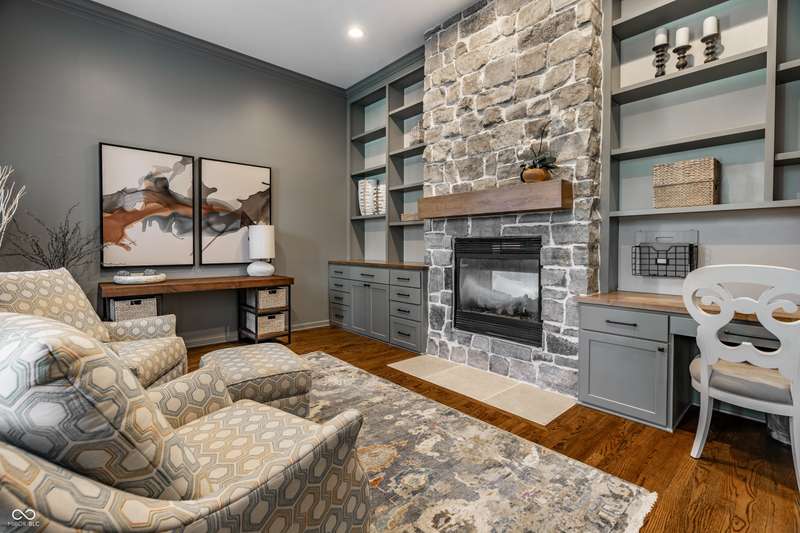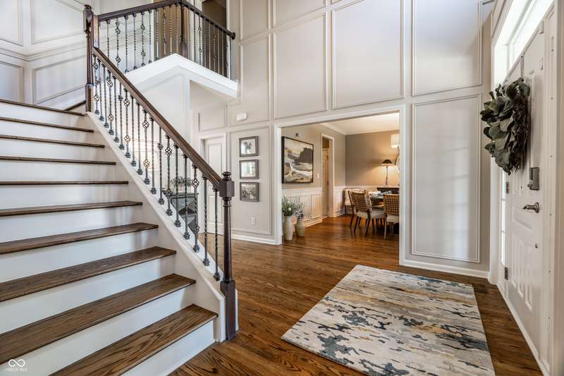 Timeless Elegance Meets Modern Comfort in Coveted Carmel Location! Nestled on a quiet cul-de-sac in one of Carmel's most desirable neighborhoods, this beautifully updated 4-bedroom, 4.5-bath residence offers over 4,000 square feet of refined living space and exceptional attention to detail throughout. From the inviting front porch with its charming swing to the thoughtfully curated interior upgrades, every inch of this home has been designed with both style and functionality in mind. The main level showcases newly refinished hardwood floors, with fresh additions in the dining and family rooms, creating a seamless & sophisticated flow. The fully remodeled kitchen is a true showstopper, featuring custom cabinetry with pull-out storage, high-end stainless steel appliances including a double oven, quartz island, soapstone perimeter counters, under-cabinet lighting, and designer finishes throughout. The foyer impresses with added wood trim detail & elegant wall sconces (2025), setting the tone for the rest of the home. Plantation shutters, a new furnace (2025), and a new roof and gutters (2020) add to the long list of recent updates. The private office offers a warm and functional retreat, enhanced with a custom stone fireplace, built-in bookcases, and a tailored desk added in 2024. Retreat to the expansive walkout basement, boasting 9-foot ceilings and multiple flexible spaces including a game/wine room, full bath, gym, theater area, and recreation zone, perfect for entertaining or everyday living. Enjoy outdoor living and community amenities with miles of walking trails, parks, and a neighborhood pool, all within the highly acclaimed Carmel Clay School District. A 3-car garage with an electric car charger completes this exceptional offering. This is more than a home, it's a lifestyle!