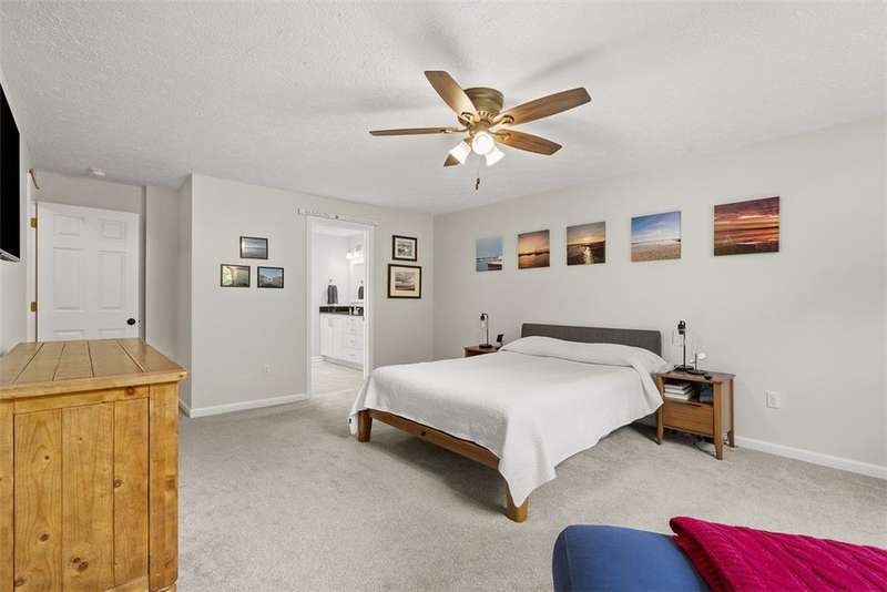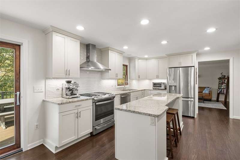 Welcome to this beautifully updated 4-bedroom home in the heart of Hampton. The stunning eat-in kitchen is the centerpiece, featuring granite countertops, a spacious island with prep sink, pantry storage, and views overlooking the new Trex deck and private backyard. Perfect for both everyday living and entertaining, the kitchen opens seamlessly into a vaulted-ceiling family room with a cozy fireplace. Hardwood floors flow throughout the home, and a versatile home office offers the ideal space for work or study. The large owner's suite provides a true retreat with a generous walk-in closet, a spa-like soaking tub, and a beautifully tiled shower. Three additional bedrooms offer plenty of space for family or guests. Enjoy outdoor living on the low-maintenance deck, surrounded by the peaceful privacy of your backyard. With thoughtful updates and timeless style, this home is move-in ready and designed for modern comfort.