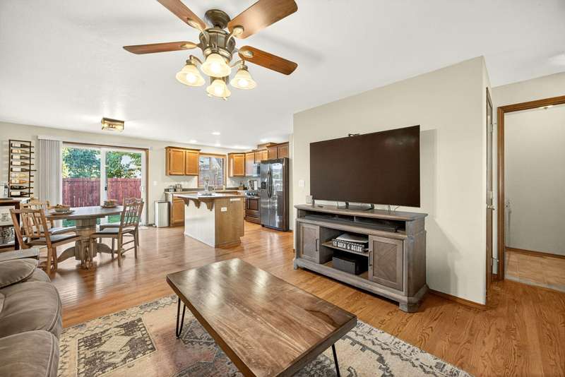 Quality-built by Mahar Brothers Construction, this move-in ready gem is located in the highly sought-after Griffin Creek School District! Meticulously maintained, this home offers peace of mind, with major recent updates including a brand-new roof (2024), a new heating and air system (2023), and the water heater replaced in 2018. The open floor plan features beautiful solid oak hardwood flooring throughout the living, dining, and kitchen areas, creating a warm and welcoming atmosphere. The island kitchen is ideal for both everyday living and entertaining, while the charming front porch adds great curb appeal. Exit out to the lovely backyard with a relaxing patio and deck. Finished two-car garage offers nice storage, and the indoor laundry room adds convenience and functionality. Don't miss this exceptionally cared-for home in a prime location!