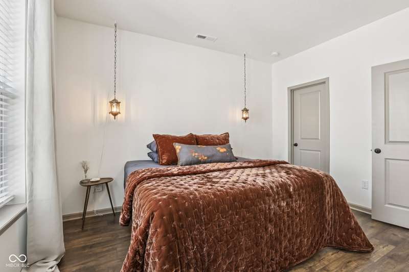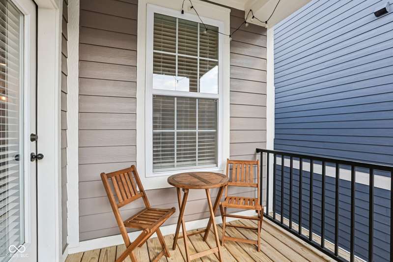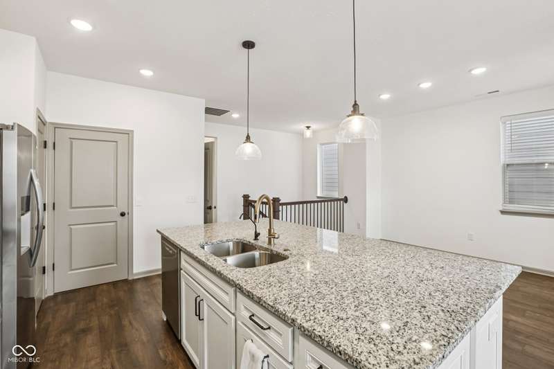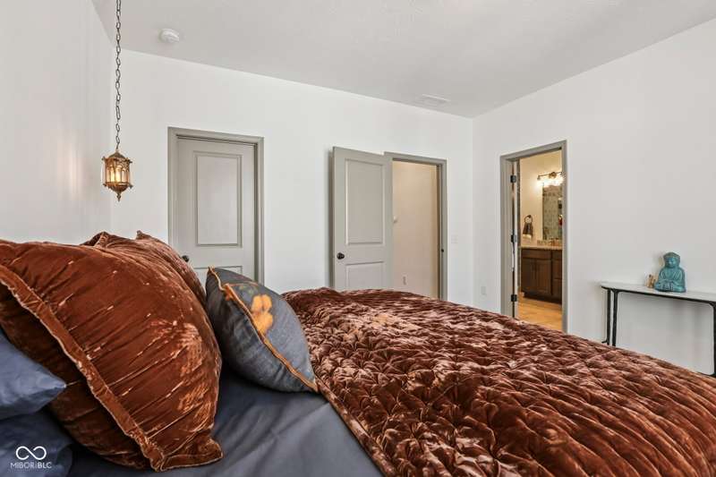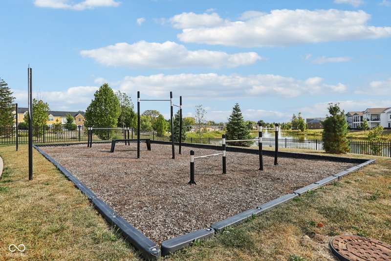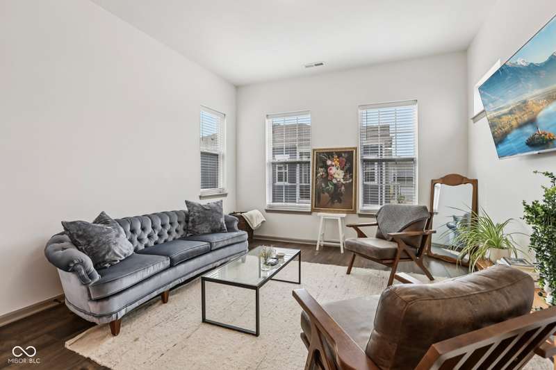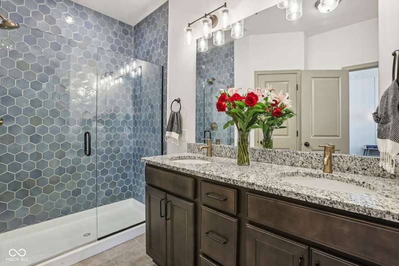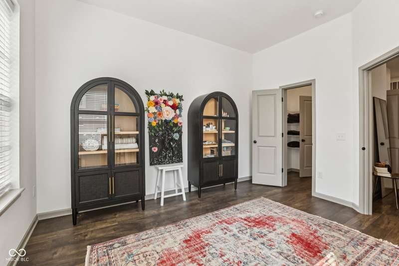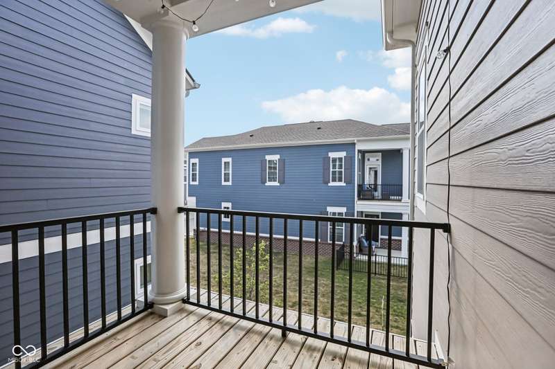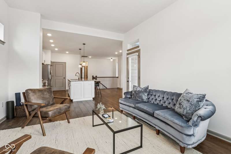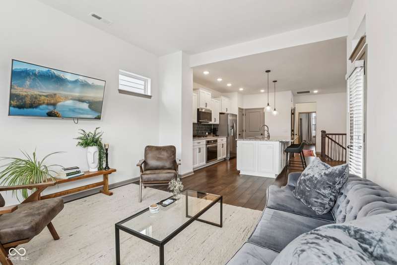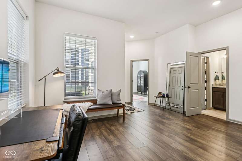 Nearly new and full of thoughtful upgrades, this home is move-in ready with style and comfort in mind. The established, manageable yard and window treatments mean you can settle right in and start enjoying the space. On the main floor, you'll find a comfortable bedroom with full bath, plus a flexible room that adapts to your needs-perfect as an office, workout space, art studio, or craft room, and easily convertible into a third bedroom if desired. Upstairs you'll find upgraded cabinets, an oversized island (larger than others in the same floorplan), a spectacular tiled backsplash, stainless steel appliances, and granite counters to create a show-stopping kitchen. Durable laminated wood floors flow throughout-no carpet to worry about. The primary suite is a true retreat with a gorgeous tiled walk-in shower, upgraded cabinets, dual walk-in closets, and a separate water closet for added privacy. A water softener is included for everyday comfort. Additional features include a 2-car attached garage, neighborhood pool, and sidewalks for easy strolls. Just 1 mile from Carmel's thriving downtown, you'll have quick access to restaurants, shopping, the Monon Trail, and the Arts District.
