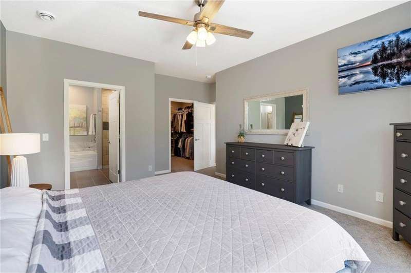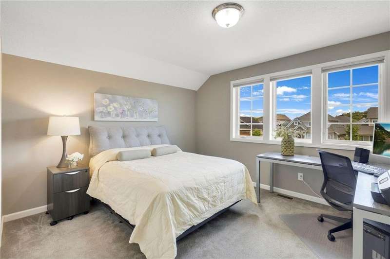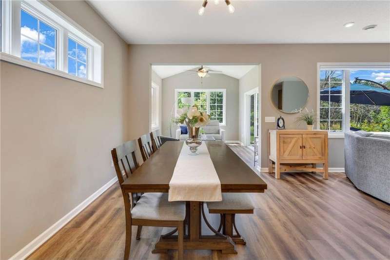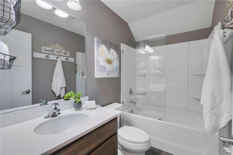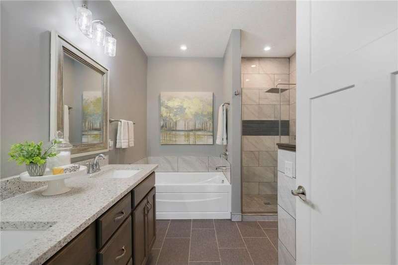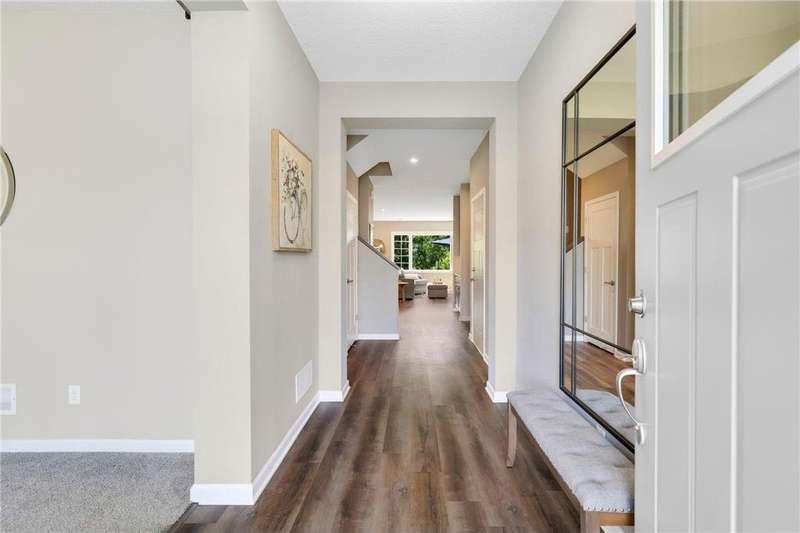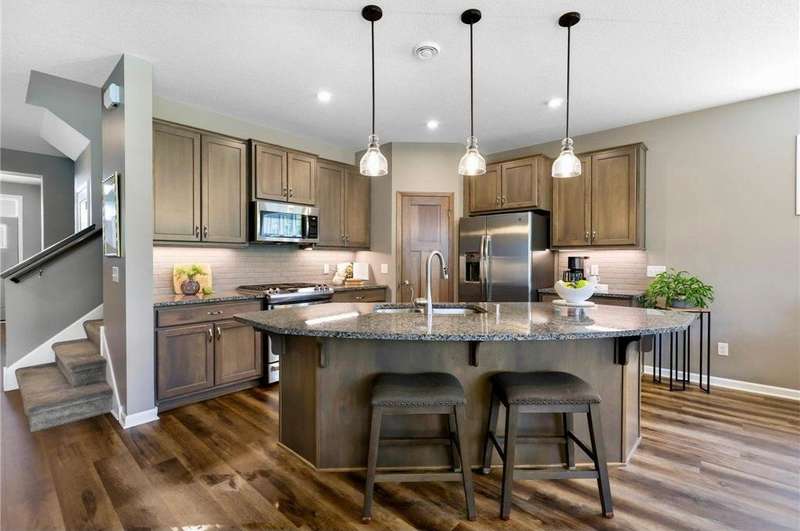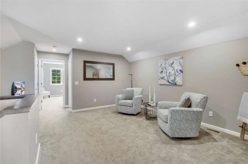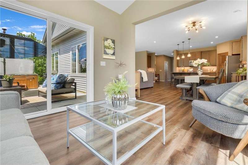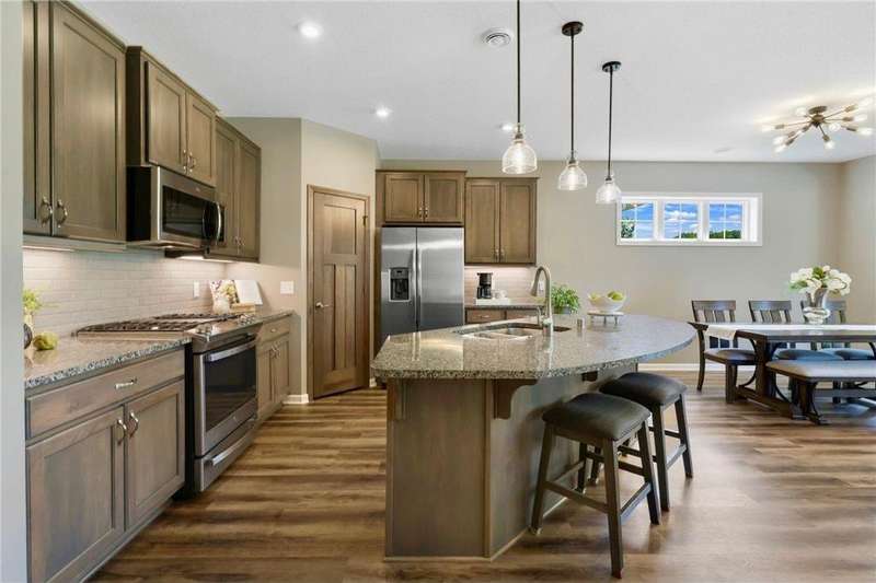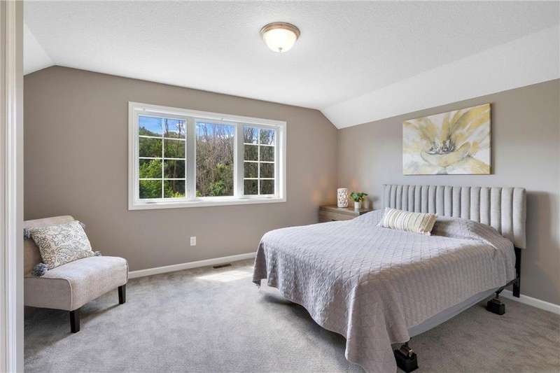 Tucked at the end of a quiet cul-de-sac, this beautifully designed home offers serene one-level living with inspiring views and effortless comfort. The open-concept main level is perfect for everyday living and entertaining, featuring a chef’s kitchen with a large center island, stainless steel appliances, a walk-in pantry, and a custom built-in buffet ideal as a wine or coffee bar. The great room is anchored by a cozy stone gas fireplace and flows seamlessly into the dining area, enhanced by transom windows that let in extra natural light. The sunroom is wrapped in windows and opens to an expansive patio with a hot tub, perfect for relaxing while enjoying views of the peaceful wetlands and mature trees. The main-level primary suite is a true retreat, offering a large picture window, a spacious walk-in closet, and a luxurious en suite bath with a custom tiled shower, separate soaking tub, and dual vanities. A main-level office or den with a stylish barn door provides flexible living space and added privacy when needed. Upstairs, you’ll find a spacious family room, two generous bedrooms, a full bath, and an additional storage room. Best of all, snow removal and lawn care are taken care of for you—offering low maintenance living in a naturally beautiful setting. With thoughtful design, upscale finishes, and a quiet location that blends privacy with convenience, this home is a must-see!