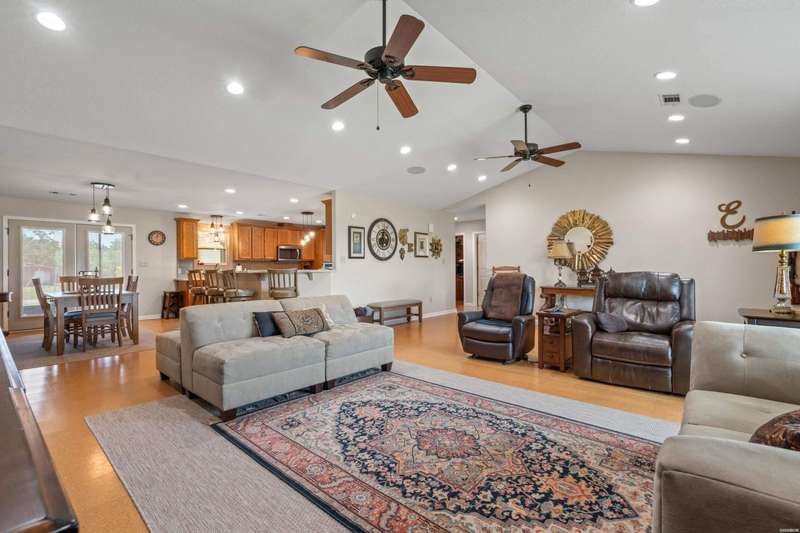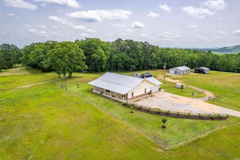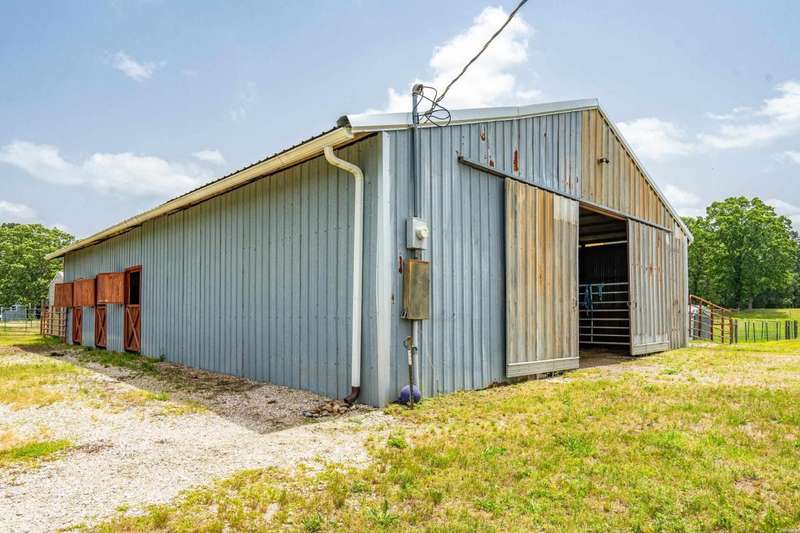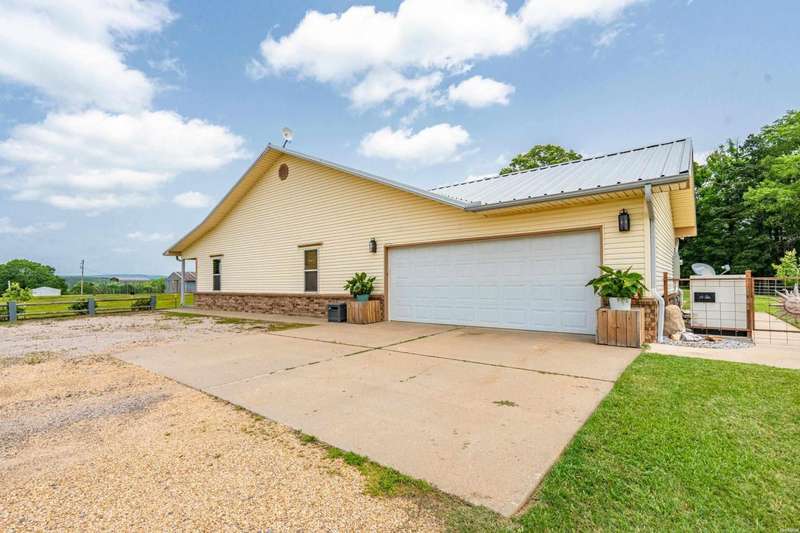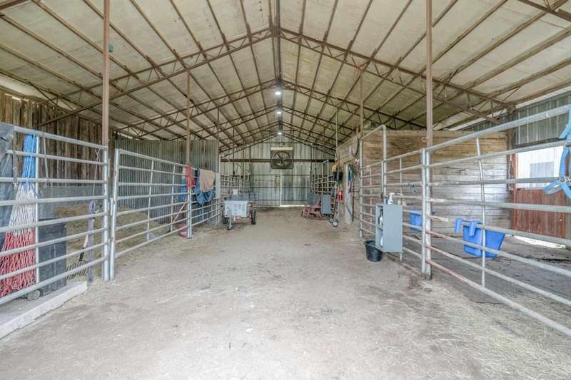 **Charming Ranch Estate Retreat! Your Dream Homestead Awaits!** Welcome to your private oasis! Nestled in the heart of nature, this stunning ranch estate offers a harmonious blend of rural charm and modern convenience, perfect for horse lovers and hobby farmers alike. The home sits on top of ridge with views in all directions. Step inside and be greeted by an expansive open-concept layout where a vaulted ceiling soars overhead, creating a bright airy feeling throughout. Beautiful cork floors underfoot not only add a warm aesthetic, but also provide both durability and style. Enjoy preparing meals in the kitchen while you entertain family and friends. Custom soft close cabinets, large island and upscale appliances make it easy to enjoy. Just off of the kitchen you will find a very large screened in porch where you will enjoy soft breezes and beautiful views. The spacious master suite features a luxurious ensuite with his/hers walk in closets. The large master bath features his/her vanities, water closet and a large shower. The Second and Third bedroom are thoughtfully placed on the other side of the home from privacy. The third bedroom is currently being utilized as an home office. There is a 'bonus' room on the same side as the two guest bedrooms. The exterior is equally impressive as it offers almost 12 acres! This inviting outdoor space is perfect for hosting summer barbecues or unwinding after a long day while watching sunsets. Fenced and cross-fenced, this property includes a spacious 7 stall horse barn designed for functionality without sacrificing style. Two tack rooms and a loafing shed. There is also a chicken coop that holds up to 40 hens. The larger workshop features automatic lift doors on each end of the large workshop for easy access to equipment or to let the breeze through while you get some work done. There is also a welding outlet in this shop. This property features a covered shed for all your outdoor equipment as well. Also conveying with the home is a ambient weather system and a Yoderbilt greenhouse to keep your plants looking beautiful year round. The sprinkler system covers the main yard and garden area and also features a drip system. There are so many amazing features for this estate. Make your appointment today and take a look for yourself. This gem will not last long!