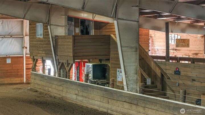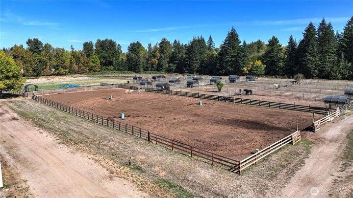 Flying M Stables & Farm LLC! Olympia's legendary equestrian event & boarding facility conveniently located off I-5 between Portland & Seattle. This PNW icon is sited on 37+ level acres with a 220 X 100 indoor arena, 34 stalls total, 2 barns, 265 X 115 outdoor arena, 28 paddocks with shelters, 3 tack rooms, 1 feed room, hay storage, H&C wash rack vet/farrier bay combo, shavings bin, 1/2 mile track, cattle pens, round pen, hayfield, event office, 2 heated bathrooms, ample lighted parking for events, covered picnic area, 2-RV hook ups. The modest cozy home offers 3 beds, 1.5 baths, large deck with covered area, 1,088 sf detached garage with bonus upper level, lovely established grounds with fruit trees & loads of room for all the critters.
