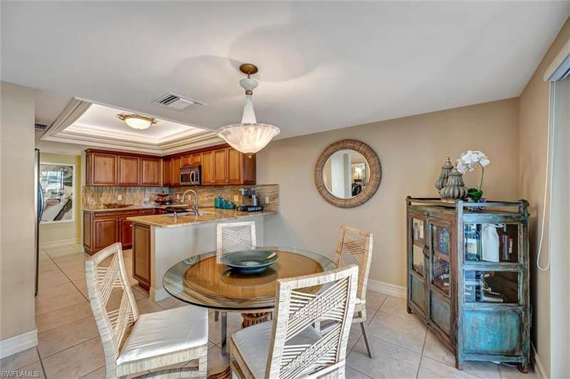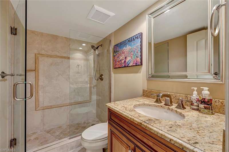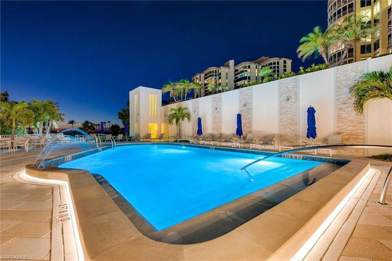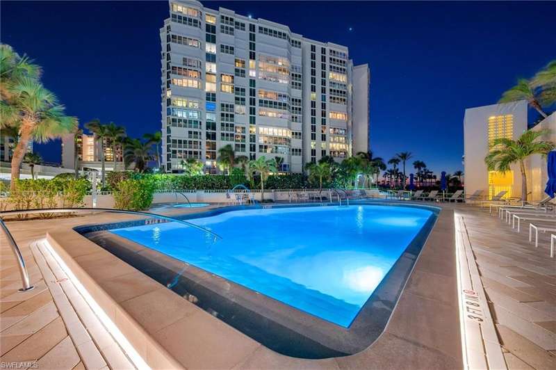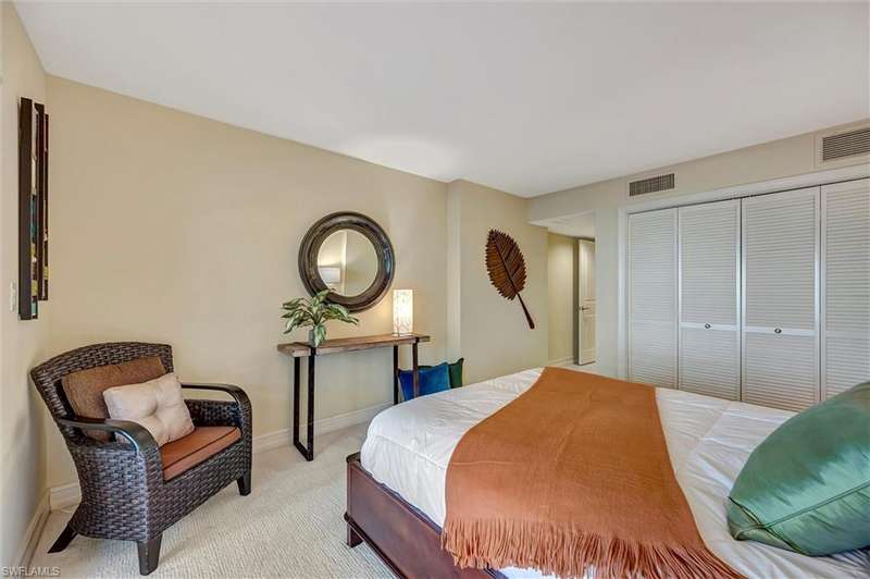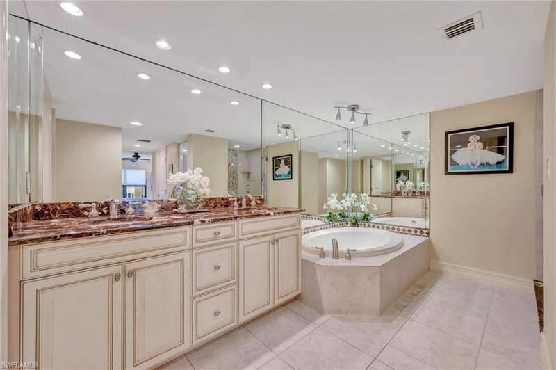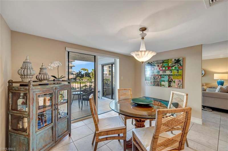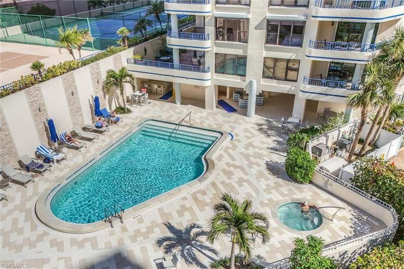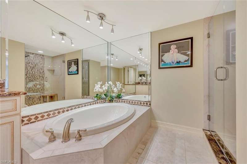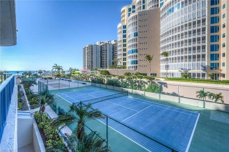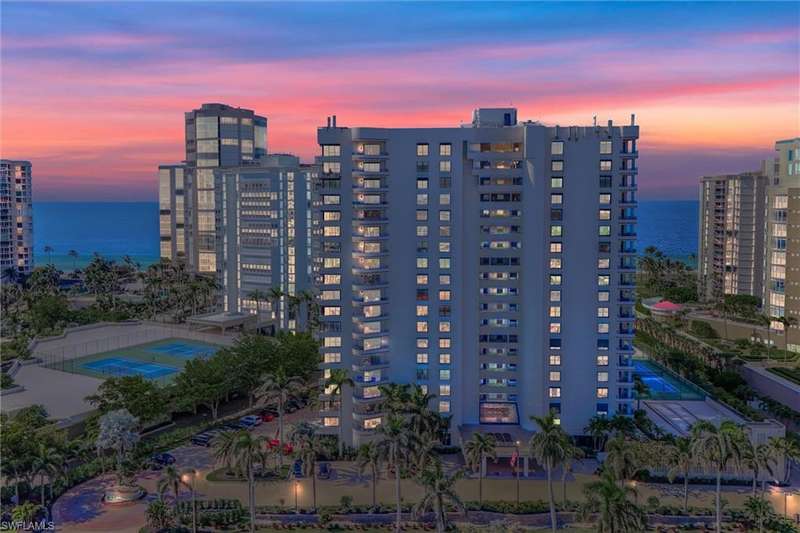 Best Value in Park Shore! Come and enjoy the gulf view from the oversized balcony of this beautiful 2 Bed/2 Bath with 1750 SF u/ac located on the 4th floor of the Solamar in the heart of Naples' premier neighborhood, Park Shore. This perfect and spacious condominium features tile flooring throughout the living areas, a remodeled kitchen with striking granite countertops, full granite backsplash, stainless steel appliances, and pantry. Updated chandeliers and recessed lighting, tiled lanai/balcony, full-size laundry room, extra-large storage closet, custom crown and base moldings, walk-in closet and 2 closets in the primary. You will love the magnificent primary bath with double vanity adorned with marble countertops, separate water closet with bidet, soaking tub & walk-in master shower. Important features for the snowbird are a whole-house dehumidification system, hurricane shutters for doors, impact glass windows, and smart thermostat. Decorated with a cozy modern flair and offered TU