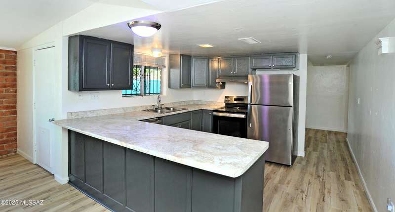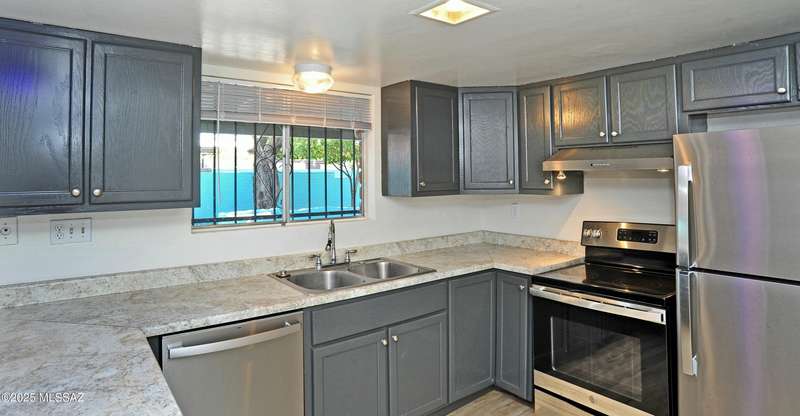 Fantastic opportunity to own a four-bedroom, three-bath home in central Tucson, just minutes from the University of Arizona and a large shopping mall. This move-in-ready property features recent updates including stylish vinyl plank flooring, a spacious floor plan, with a cozy fireplace, a large breakfast bar for conversations with the cook, and plenty of natural light. Situated on an oversized, gated lot with a sparkling swimming pool, covered patio and a two-car garage, this home offers both comfort and privacy. Perfect as a primary residence or an excellent rental investment in a highly desirable location!