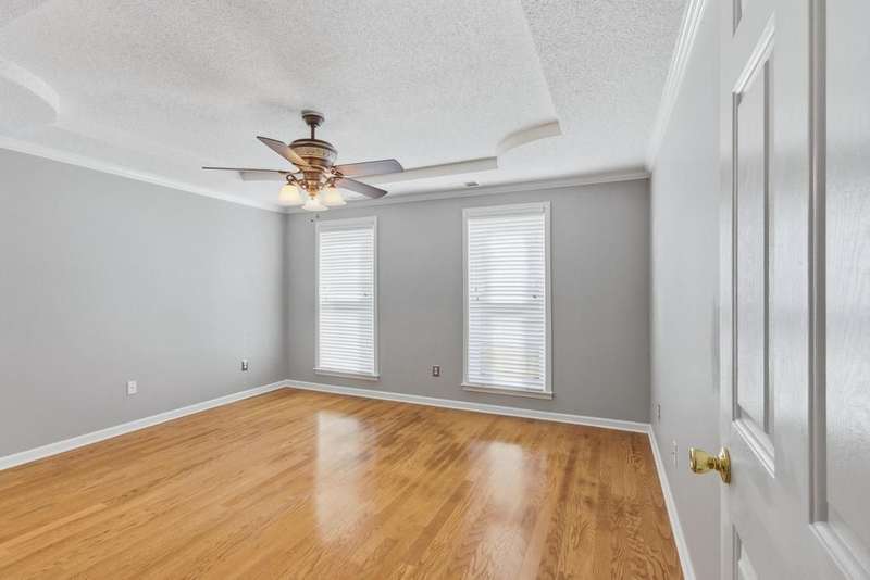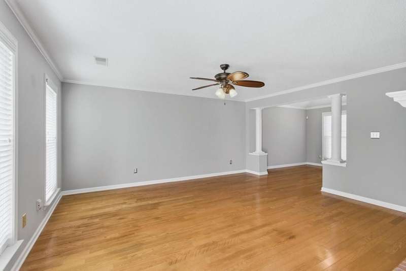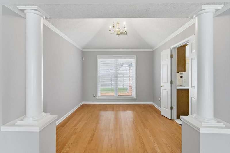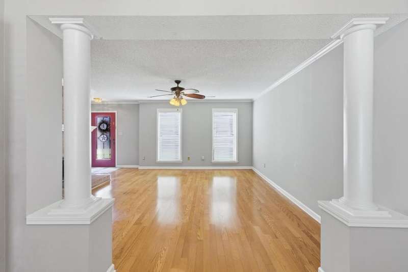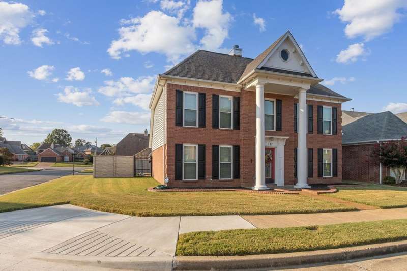 Welcome to 777 Rain Dance Way, a beautifully updated 4-bedroom home on a corner lot with timeless curb appeal. Fresh paint and updated flooring flow throughout. The luxury primary suite is located on the main level and features a renovated spa-like bath with a free-standing soaking tub and dual vanities. The home offers both front and rear stairs for convenience and flexibility. In addition to the primary suite down, the upstairs offers 3 spacious bedrooms or 2 bedrooms plus a bonus. The eat-in kitchen shines with new stainless steel appliances. Outside, you'll find a fenced yard with a stone-look fence + 2 iron gates, a 2-car rear-load garage with epoxy flooring, and an elegant exterior with brick, low-maintenance siding, and stately front columns. 30 yr dimensional Roof- 2009. New Windows- 2019. HVAC- 2021. Primary Bath Reno- 2021. No-maintenance aluminum Siding- 2013. Gutters- 2013.