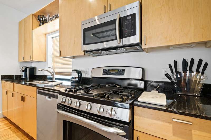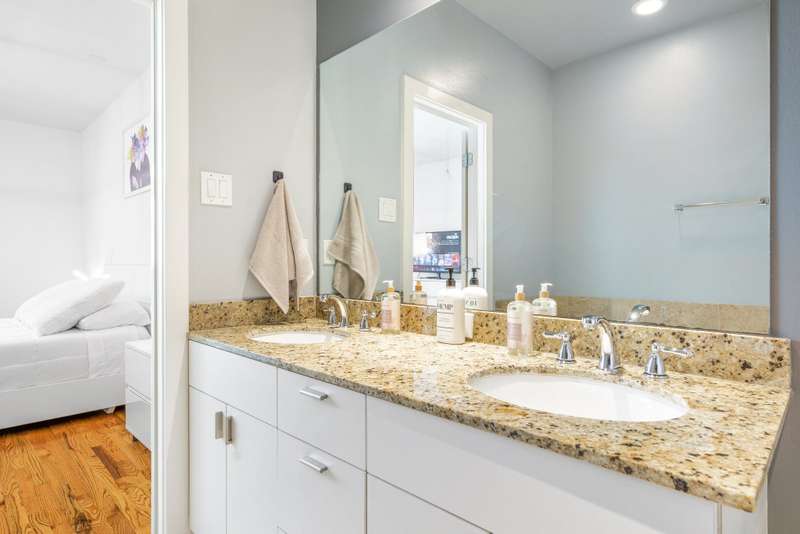 This contemporary two-story townhome offers style, and convenience. Situated in a small, gated community near downtown, the home features open and bright living and dining spaces with a seamless flow into the kitchen. The chef’s kitchen boasts an island with seating, granite countertops, a walk-in pantry, and a gas range—perfect for both everyday cooking and entertaining. A utility room is conveniently located inside the home, with washer and dryer included. Additional highlights include wood floors throughout, abundant storage, and a two-car attached garage. Each bedroom features its own ensuite bathroom, providing privacy and comfort for all residents. Prime location and excellent amenities! All info per Seller.