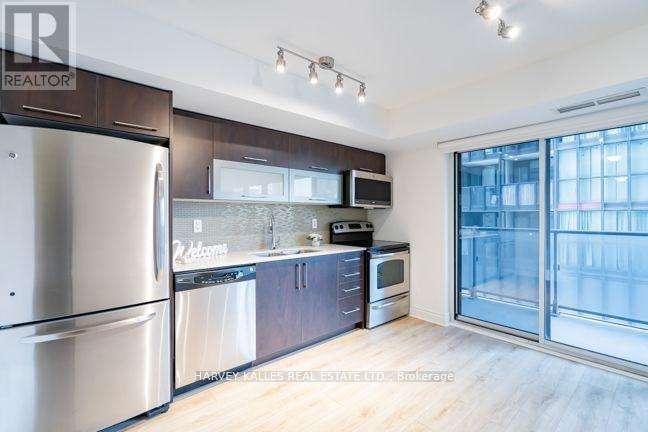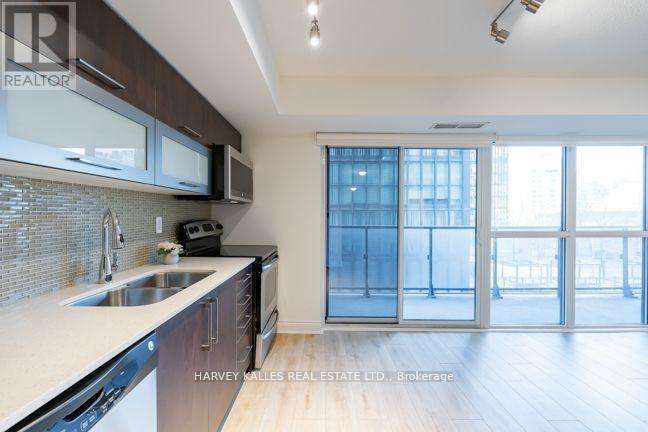 Welcome to this newly renovated sleek one bedroom unit in highly demand downtown Couture Building to experience the urban luxury living! This unit offers you open concept layout that blends the kitchen, dining and living area seamlessly. The modern kitchen features all stainless steel appliances with chic cabinetry, caesar stone counter top and mosaic glass backsplash. The stunning floor to ceiling large windows allow you to enjoy the urban city views day and night. The Prime bedroom with walk-in closet. Excellent location with walking score of 99! Short distance to Yonge/Bloor two subway lines, University of Toronto, restaurants, cafes, shopping and Yorkville. Building features great amenities with 24 hours concierge, gym, party room, whirlpool hot-tub, indoor/outdoor pool, games room, guest suites, theatre, visitor parking and more. Don't miss this opportunity to indulge yourself in this sophisticated urban living! (id:6370)