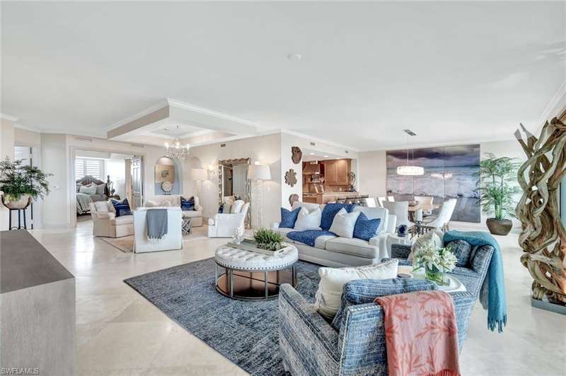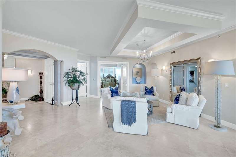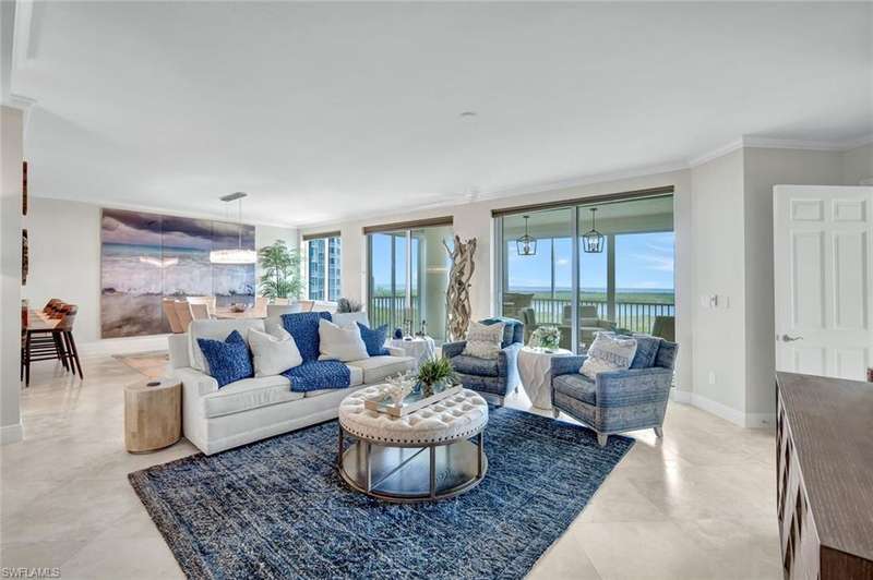 Surrounded by a sea of sumptuous surroundings and mere steps away from one of the top-ten beaches in Florida, this condo offers a world designed for those who enjoy life on a grand scale. The residence is tastefully decorated and has beautiful panoramic Gulf and Bay views. The gourmet kitchen boasts rich warm cabinetry, a breakfast bar, and granite countertops, adding to its allure. The spacious master bedroom offers an amazing view, a generous shower, and plenty of closet space. Two guest bedrooms with private baths and balconies provide a comfortable retreat for your visitors. Step outside and discover the resort-caliber amenities. Enjoy a refreshing lunch at the pool bar or dine alfresco on the patio, basking in the sun or under the moonlight. The tennis center features lighted courts, while the fully-equipped fitness center caters to your workout needs. The resort-style pool, with a gazebo-ensconced hot-tub spa, is surrounded by a furnished plaza and sundeck. Additionally, you have