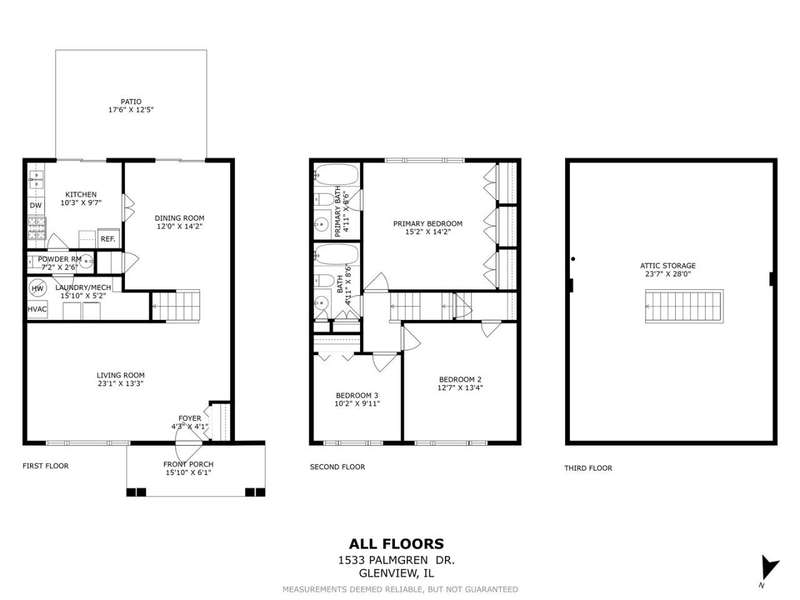 Welcome to Carriage Hill! This beautifully updated 3 bedroom, 2.1 bath two-story townhome offers a perfect blend of charm, comfort, and modern updates. Step inside to find luxury vinyl floors throughout the main living areas and hardwood flooring throughout the 2nd floor in the bedrooms, creating a warm and timeless feel. The bright and airy living room is highlighted by a large picture window, filling the space with natural light. Upstairs, the spacious primary suite features a wall of closets, excellent natural light, and a private bath. Two more bedrooms and a full hall bath complete the second level, with a hidden staircase within the 2nd bedroom closet that leads to a remarkable attic with 8-foot ceilings and semi-floored, an incredible amount of additional storage space. The private fenced yard with a patio is perfect for entertaining, while the detached 2-car garage adds convenience. Major components have all been recently updated for peace of mind: Home refreshed (2025), A/C, furnace & humidifier (2024), thermostat (2024), washer & dryer (2023), water heater (2023), refrigerator (2022), and windows & sliding door (2018). Located in a prime Glenview location, close to parks, shopping, dining, and top schools, this Carriage Hill gem is move-in ready and not to be missed!