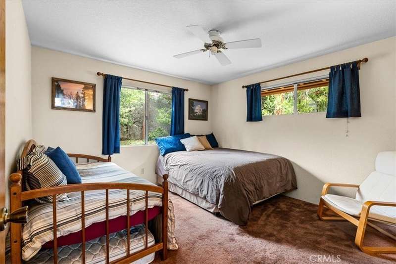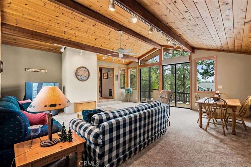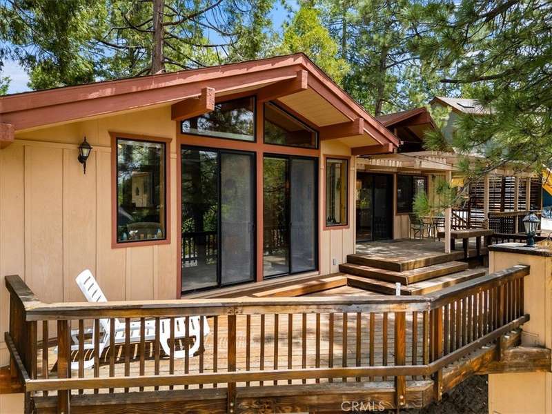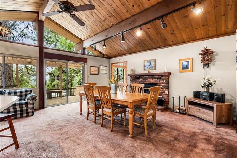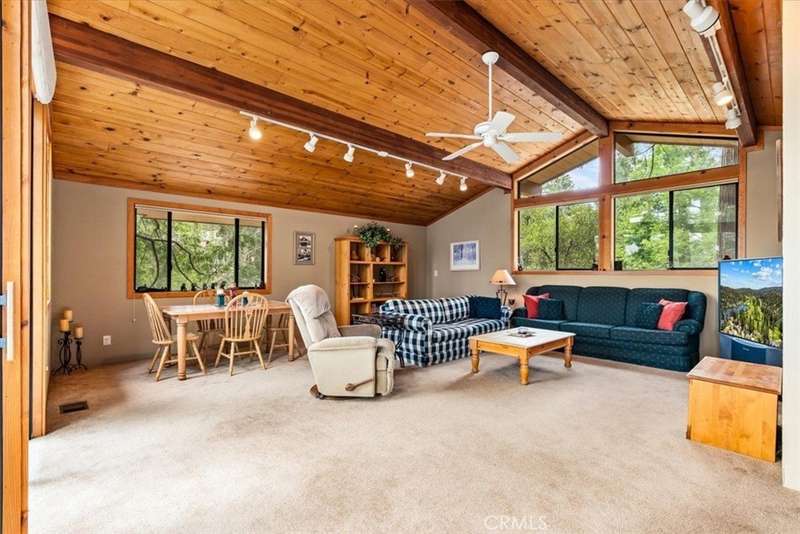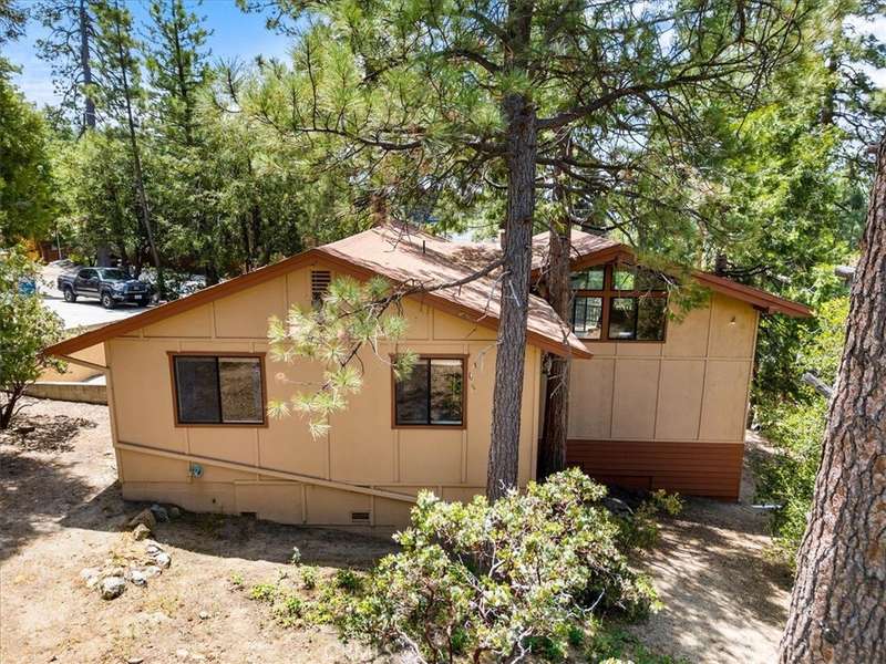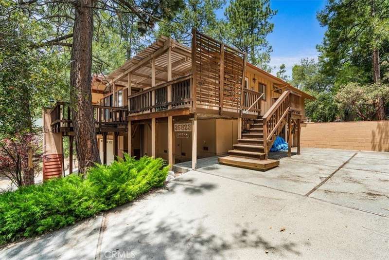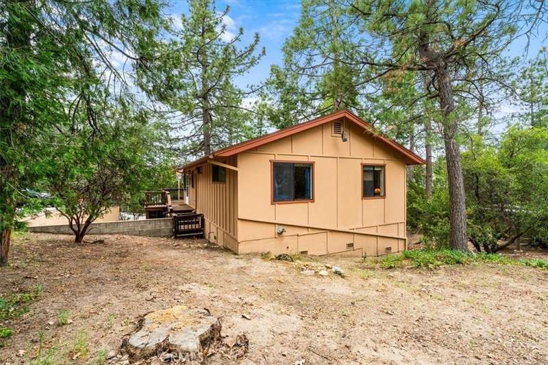 LOWEST PRICE PER SQUARE FOOT IN IDYLLWILD! Nothing compares to this home at this price! This isn't simply you finding your next home. This is YOU finding peace. Rest. A slower pace of life. Tucked away in the quaint mountain town of Idyllwild, is 26823 Crestview Drive, an inviting 2-bedroom, 2-bathroom cabin offering 1,440 square feet of comfortable living space on an 8,712 square foot lot. Built in 1977, the single-story home has much to offer. Through the main entrance, you're greeted by an open kitchen and living room area, with tall wooden plank ceilings and large windows that frame the beauty of the surrounding area. Just off the living room is a separate family room, great for gathering for a movie or board game. Both spaces have sliding glass doors that lead to the large deck off the front of the home, providing you with a lot of additional outdoor space to enjoy the tranquility of the hillside. Towards the rear of the home you'll find a primary suite with attached bathroom and an additional bedroom with a second bathroom conveniently located off the hallway. For those looking for parking and storage, this home provides PLENTY of it. A gravel driveway leads to the attached full-enclosed two car garage, perfect for long term secure storage. In addition, you have a long concrete driveway leading upto the home's main entrance and parking area. The property is conveniently close to a vibrant, local downtown area, as well as plenty of recreational trails. Whether you're seeking a mountain retreat or a year-round residence, this charming cabin combines rustic appeal with modern conveniences.