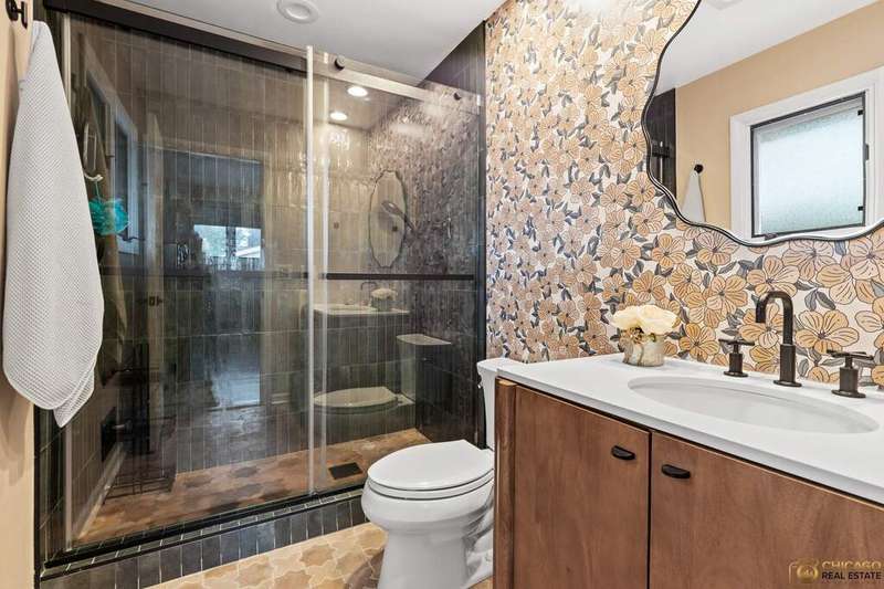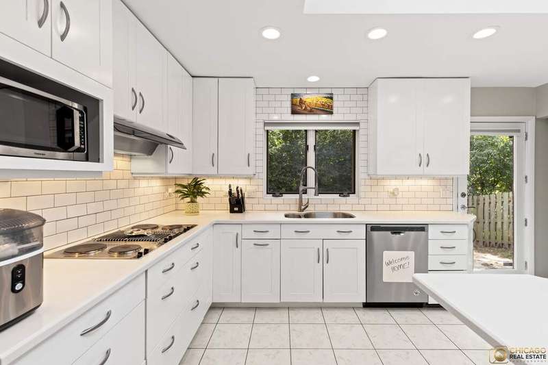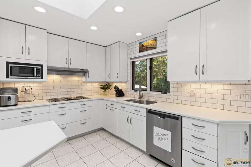 Fall in love with this bright, spacious and freshly painted 4 bedroom + office, 2.5 bath home. A two story foyer welcomes you and leads into a cozy private office with fireplace. Walk up a few steps into a large open family room and dining room with tons of natural light. The sunny white kitchen with skylight and double ovens is ready for hosting holidays. Upstairs you will find a generous primary bedroom suite with newly remodeled stylish bath. Three addiitional bedrooms on the second level share another fully remodeled bath. Lower level rec room offers an abundance of storage space with newer vinyl tile flooring making it perfect for the whole family to enjoy. Step outside to your own private oasis with a gorgeous in ground pool with diving board and water slide for summer fun. Two car attached garage is super convienent as well as the half bathroom that leads directly to outdoor patio for pool parties. Many recent updates including NEW ROOF and gutters (2023), new water heater (2023), new HVAC (2021) and new fencing (2021). Full list of improvements available. Walking distance to Devonshire Park, schools, and Downtown Highland Park! Wonderful neighborhood offers easy access to train or highway and choice of Highland Park or Deerfield High Schools.