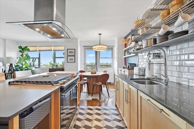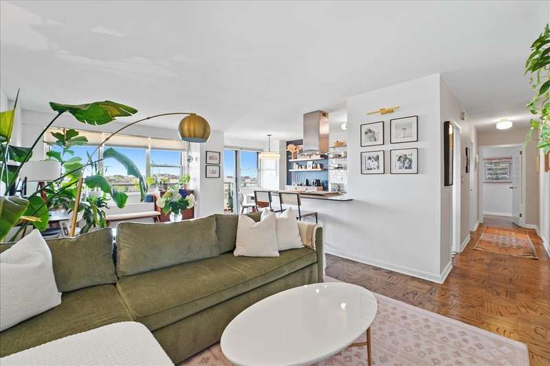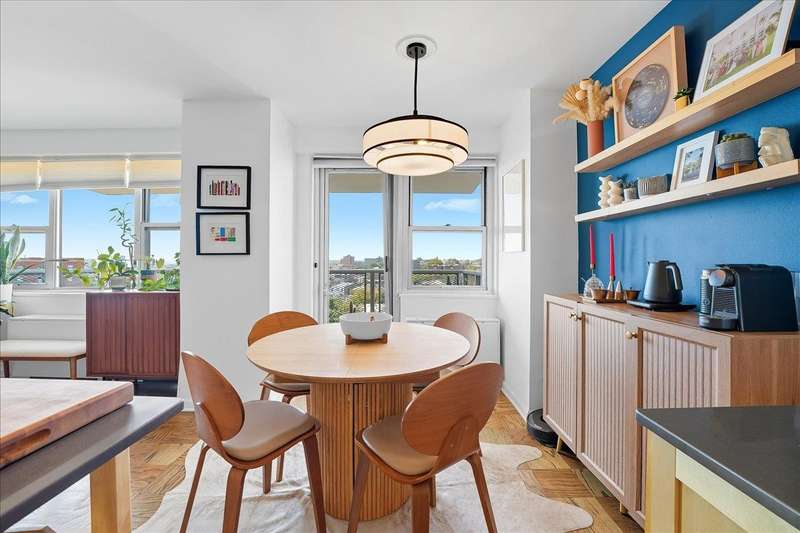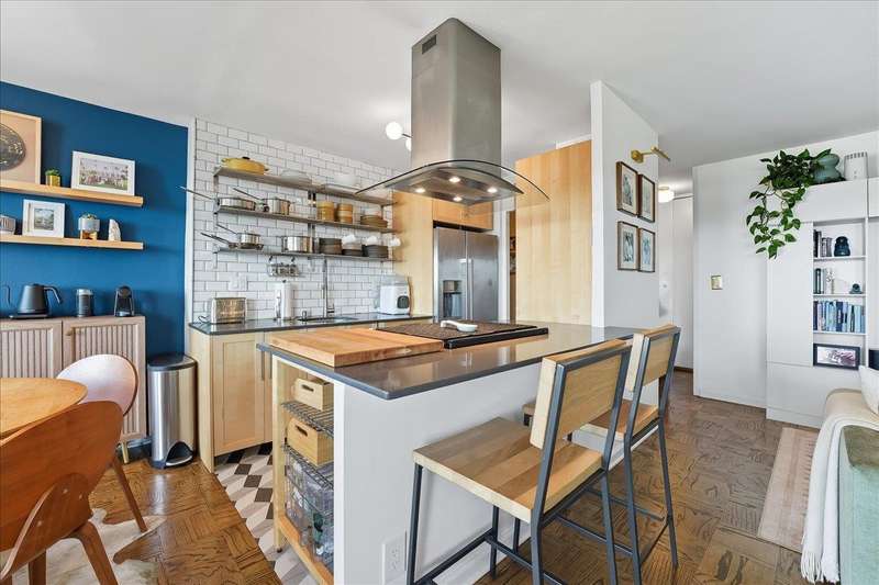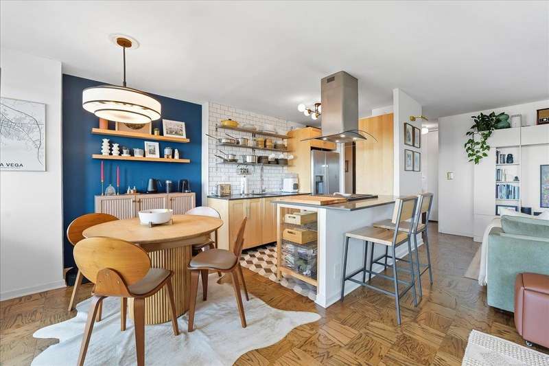 Bright and inviting corner home with a private balcony to enjoy open-sky views!!This residence offers a spacious open layout with oak parquet floors, modern finishes, and abundant natural light. The living and dining areas flow seamlessly for both entertaining and everyday comfort, while the updated kitchen features open shelving, stainless steel appliances, and designer lighting. The bathroom has been updated with modern fixtures for a chic, ciontemporary touch. This full-service high-rise provides exceptional amenities including a pool, gym,laundry facilities, and 24/7 security. Ideally located along scenic Blvd East, you'll enjoy quick access to NYC buses,ferries, and the ligh rail. The vibrant neighborhood offers countless conveniences-Whole Foods, Trader Joe's, Mitsuwa, parks, dining,and boutique shopping are all nearby. Monthly fee covers taxes,gas,electricity, water,A/C,pool and use of all amenities-delivering a truly turn-key lifestyle in a prime location.