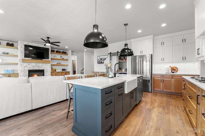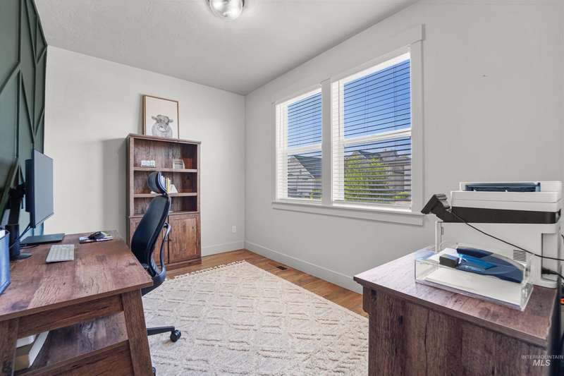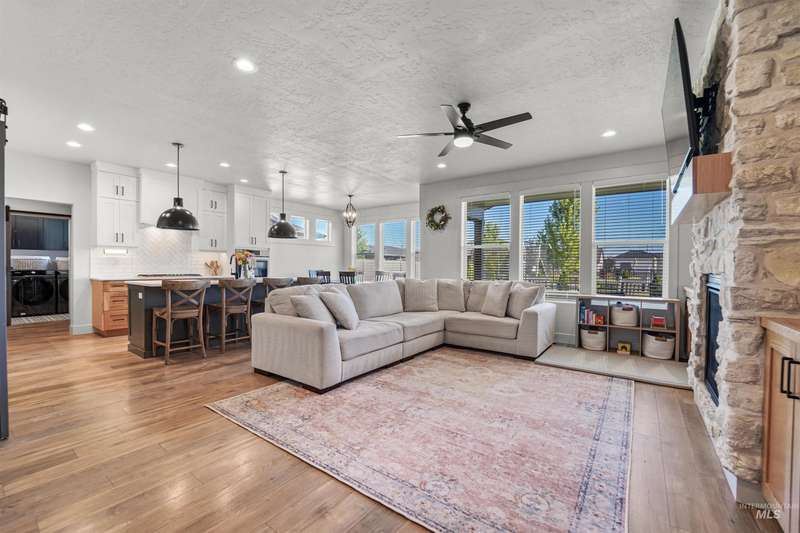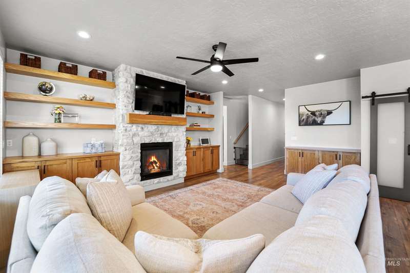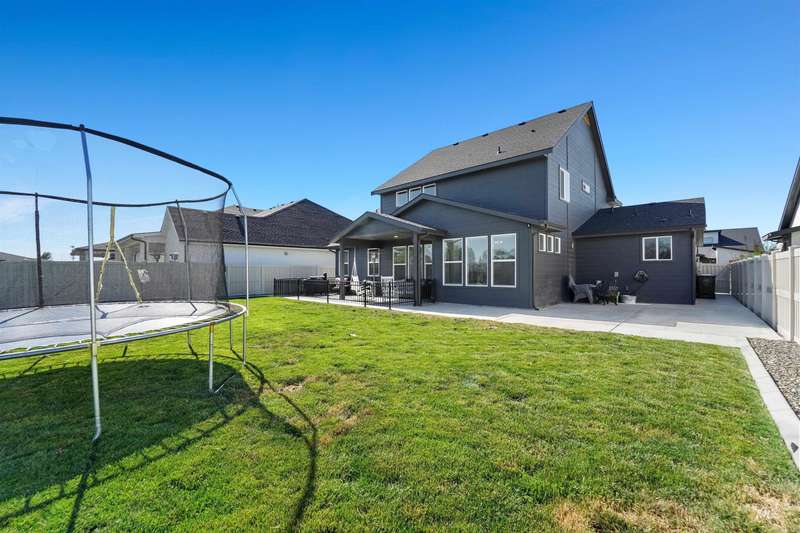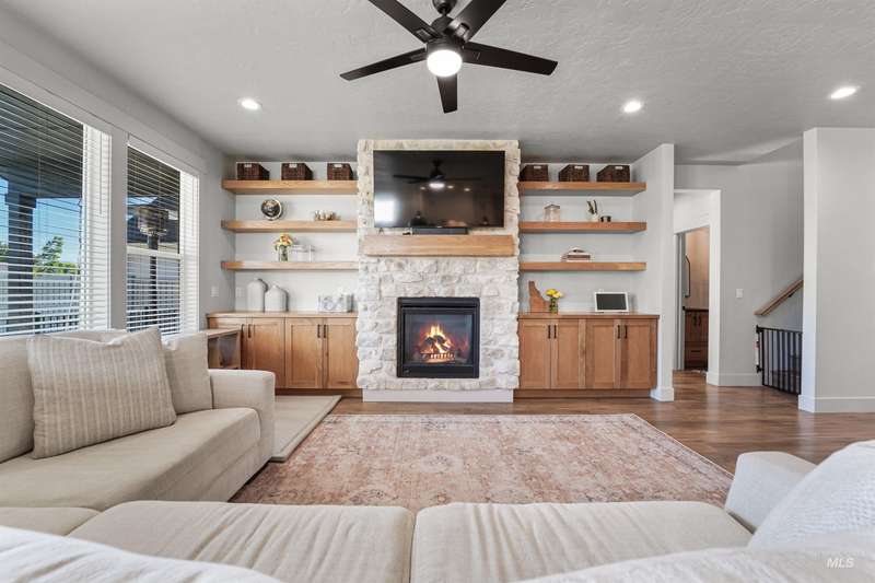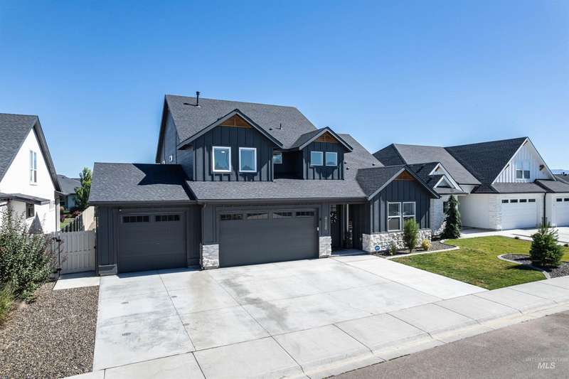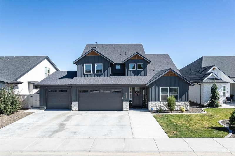 This stunning 4-bedroom, 3.5-bath home in South Meridian’s Shelburne community blends thoughtful design with everyday comfort. Built in 2021 by Serenity Homes, it offers nearly 2,900 sq ft with a main-level primary suite, dedicated office, laundry, and an open great room featuring a floor-to-ceiling stone fireplace, and custom built-ins. Upstairs you’ll find three spacious bedrooms, two baths, and an extra large bonus room. The backyard is built for entertaining with an extended concrete patio plumbed for a hot tub, a covered area wired for a TV, and direct access to Shelburne’s pool, pond, and walking paths. An oversized 3-car garage with epoxy floors completes this move-in ready home. More than a house, this property is a true lifestyle!