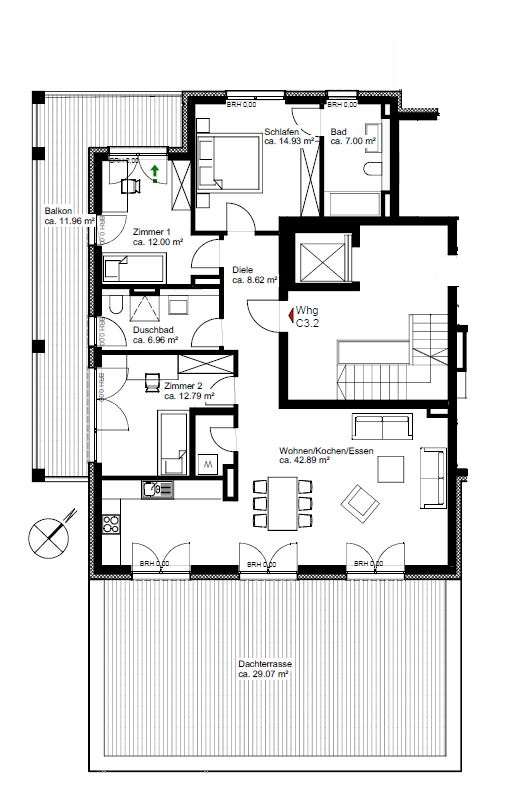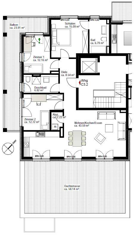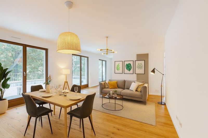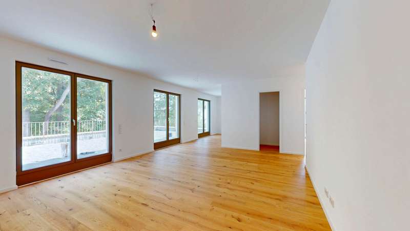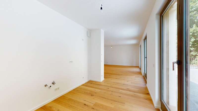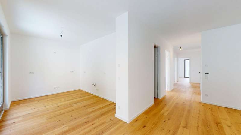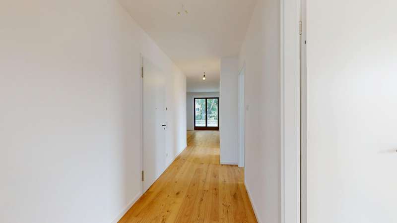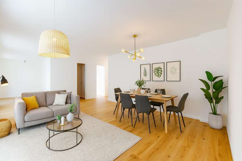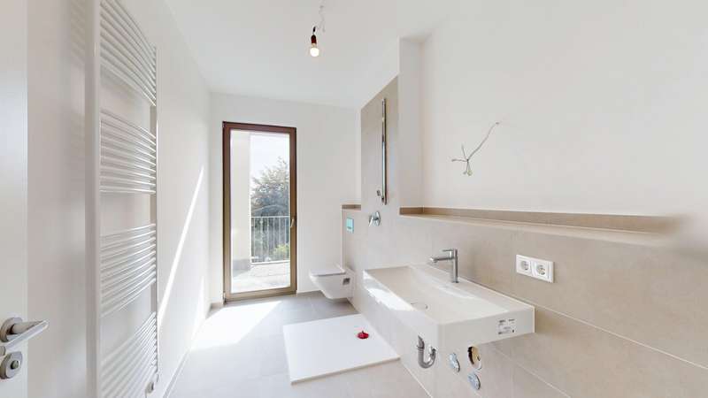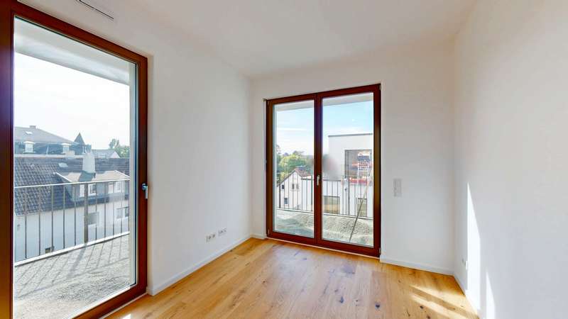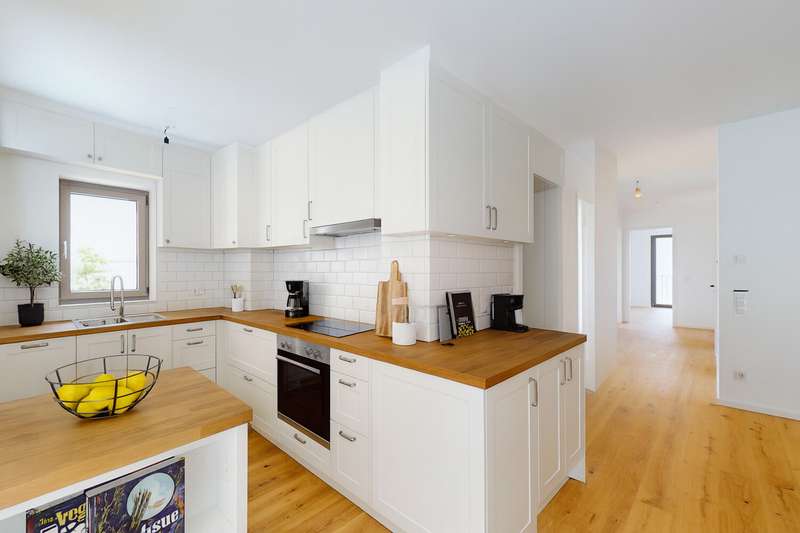 This exclusive penthouse apartment combines contemporary living with high-quality comfort and a well thought-out floor plan. It is located in an architecturally appealing new building ensemble in a quiet, mature location in Alt-Eschersheim and offers you the special advantage of first-time occupancy. Access to the apartment is via a well-kept front garden, which emphasizes the private and inviting character of the building. You can reach the second floor via the spacious staircase or the elevator and enter the penthouse apartment without steps. As soon as you enter, you are greeted by an open, elegant entrance area from which all rooms are accessed. The hallway opens harmoniously into a spacious living, dining and cooking area, which forms the heart of the apartment and provides access to the roof terrace measuring around 58 m². Two bedrooms and two bathrooms provide modern comfort. Floor-to-ceiling windows and the south-east orientation ensure light-flooded rooms and a bright, friendly living atmosphere. High-quality oak parquet flooring with a plank look creates a warm, stylish ambience, while large-format porcelain stoneware tiles in the two bathrooms exude timeless elegance. The bathrooms are equipped to a high standard with walk-in showers and bathtubs, elegant designer washbasins and branded fittings. A special highlight of this apartment: the spacious roof terrace, which offers plenty of space for sunbathing, relaxing and entertaining and beautiful views. The apartment is located in an energy-efficient KfW Efficiency House 55 and is equipped with a future-oriented, hybrid heating system - consisting of an air heat pump, modern gas condensing technology and photovoltaics. This property is ideal for discerning couples, families or senior citizens who place particular value on quality, tranquillity and spacious outdoor areas - without having to sacrifice proximity to Frankfurt city center. A spacious, exclusive penthouse apartment for discerning aesthetes.