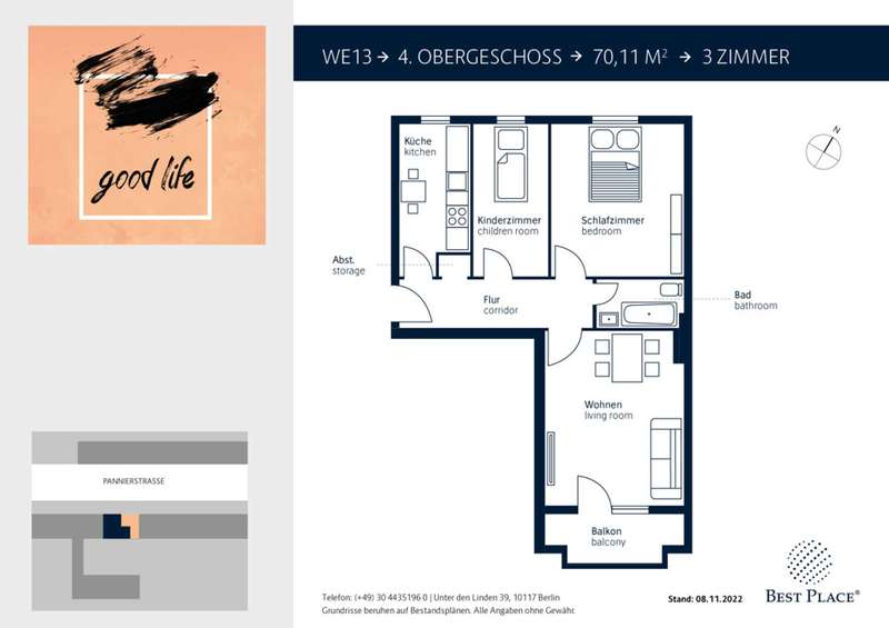 Located on the 4th floor, this 3-room apartment is an ideal investment. All rooms can be accessed separately via the hallway. The kitchen with window offers enough space for a seating area. The south-facing balcony can be reached via the living room. For investors only