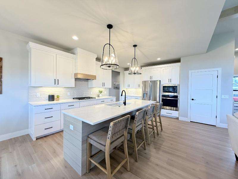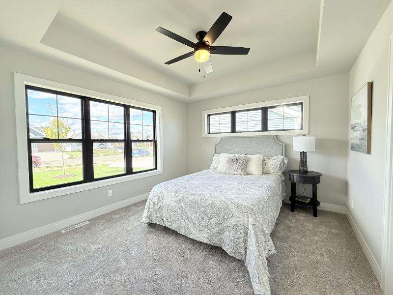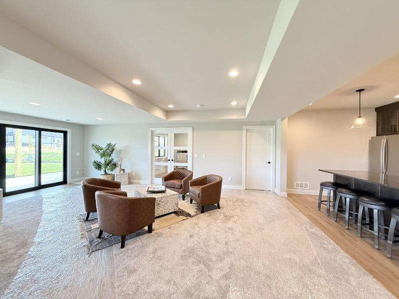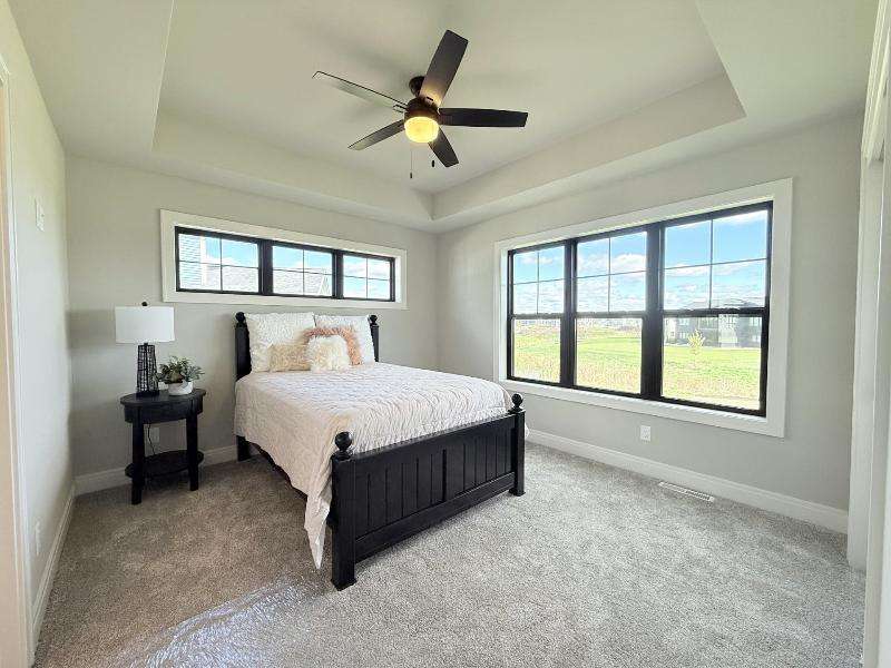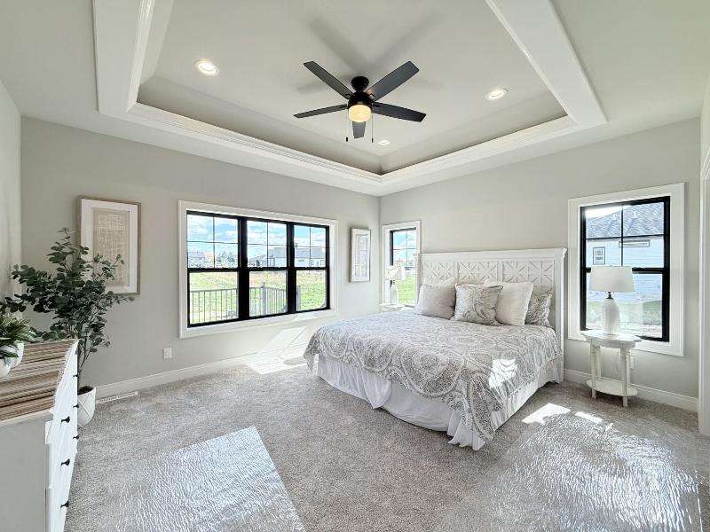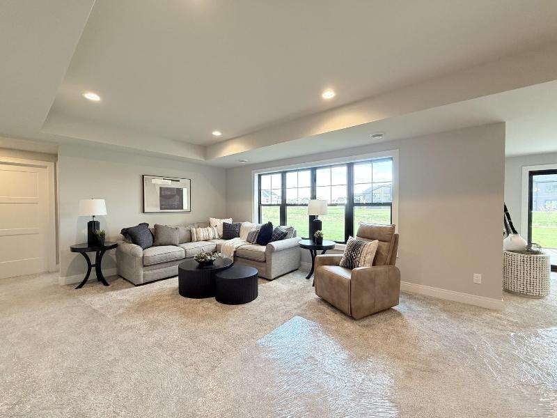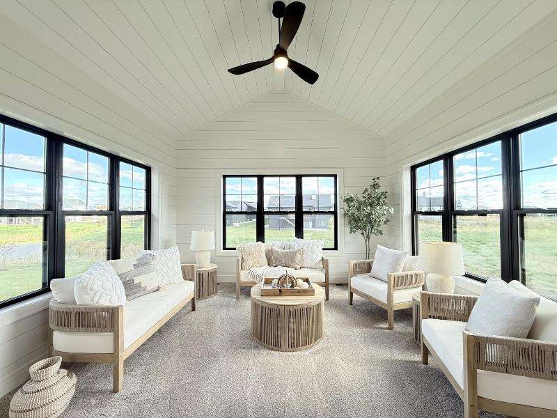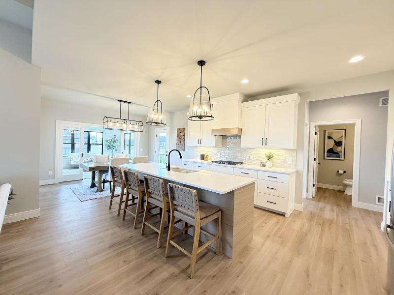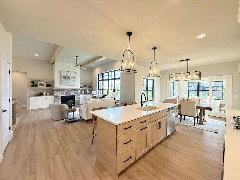 This stunning custom built dream home ranch backing to greenspace offers over 3,800 sq ft, 3 car garage, 6 bedrooms, 3 1/2 baths, gourmet kitchen w/ quartz countertops, custom Amish cabinets, stainless steel appliances, island & walk-in pantry. Great room w/ soaring ceilings, impressive fireplace & built-in's, 4 season sunroom, deck & patio. Owners suite w/ tray ceiling, large walk-in closet & en-suite with walk-in tile shower & dual vanities, main level laundry & mudroom w/ custom cubbies. Walk-out lower level is perfect for entertaining w/ spacious family room, huge rec room w/ wetbar, 4th & 5th bedroom, office / flex room (6th bedroom), 3rd full bath & zoned HVAC. Steps from bike/walk path, 2 neighborhood parks & pickleball in stunning Golden Ponds.