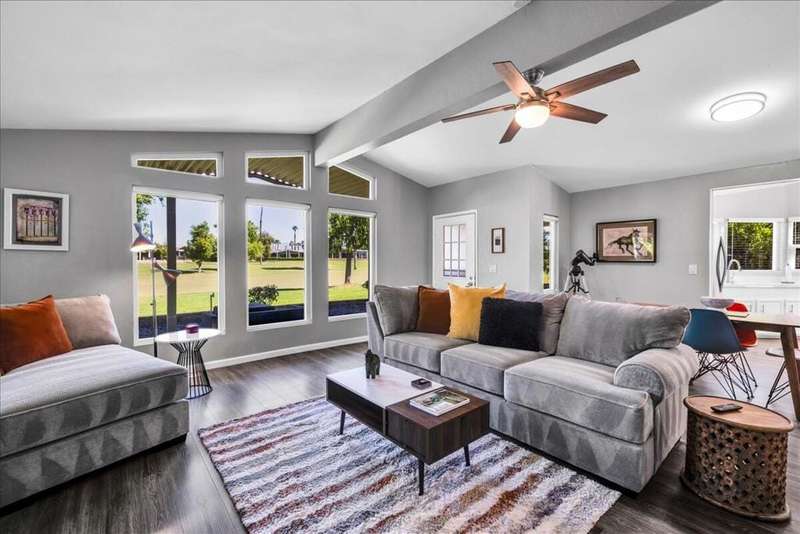 THIS IS IT! You can have it all, for the BEST value in Palm Desert Resort Country Club. Situated on the 8th tee of the Champion golf course, sits this beautiful, turnkey furnished August floor plan featuring :2 primary bedrooms, 2 baths, vaulted ceilings throughout, upgrades in the kitchen and baths, view of the golf course and walking distance to everything PDR has to offer. Resort living in PDR includes: 30 pickleball courts, 6 tennis courts, a champion golf course, 20 pools and spas, clubhouse, Roadrunner cafe, pro-shop, bocce ball and more. PDR is known for its rich social lifestyle to include: live music on weekends, line dancing, painting classes and more. Short term rentals are permitted. This is a prime location for enjoying yourself or as a seasonal rental. It's walking distance to the pickleball courts, clubhouse and golf starter and pools. Close proximity to the back gate offers convenience for a shorter distance to El Paseo's fine dining and shopping, grocery stores and all conveniences. It's just a short distance to the tennis gardens, Coachella concerts, polo fields, and Palm Springs. This won't last. It's priced to sell so somebody can enjoy this little beauty during Coachella's Valley's prime season.