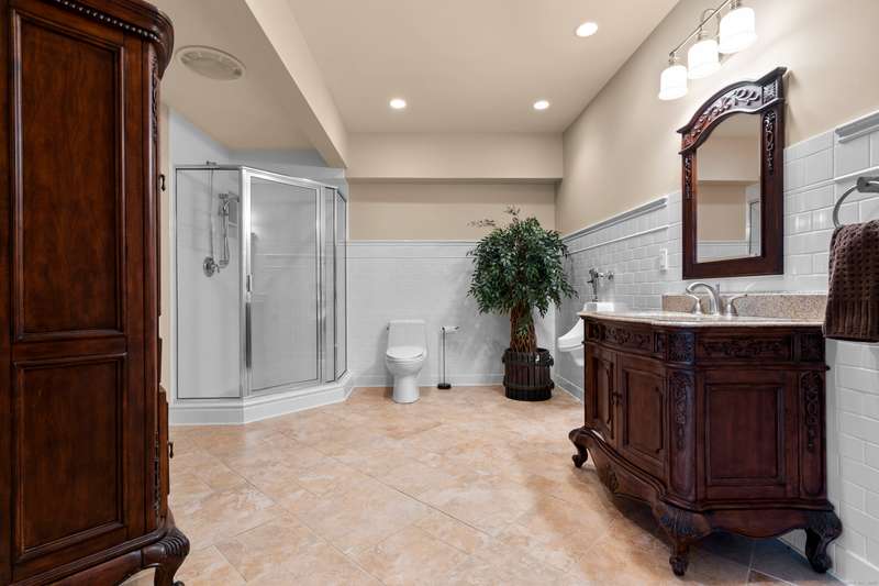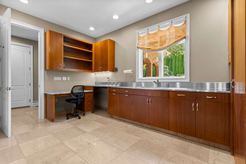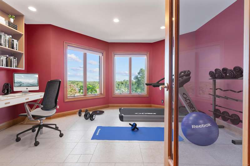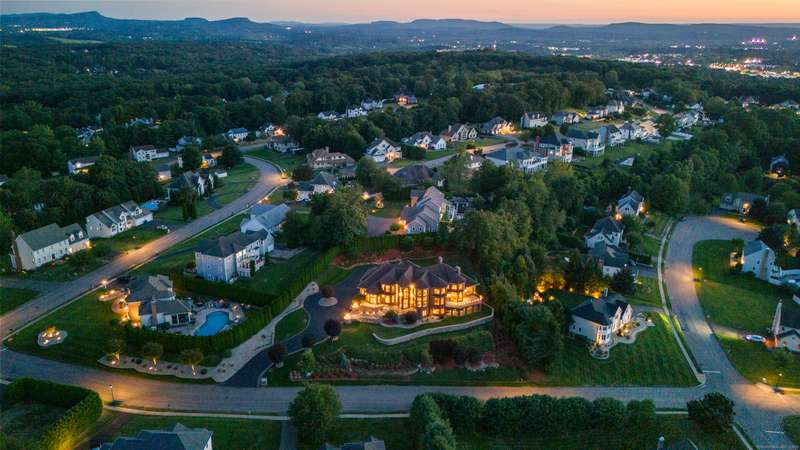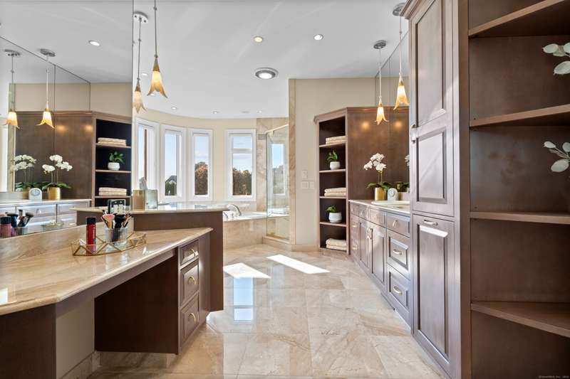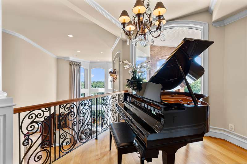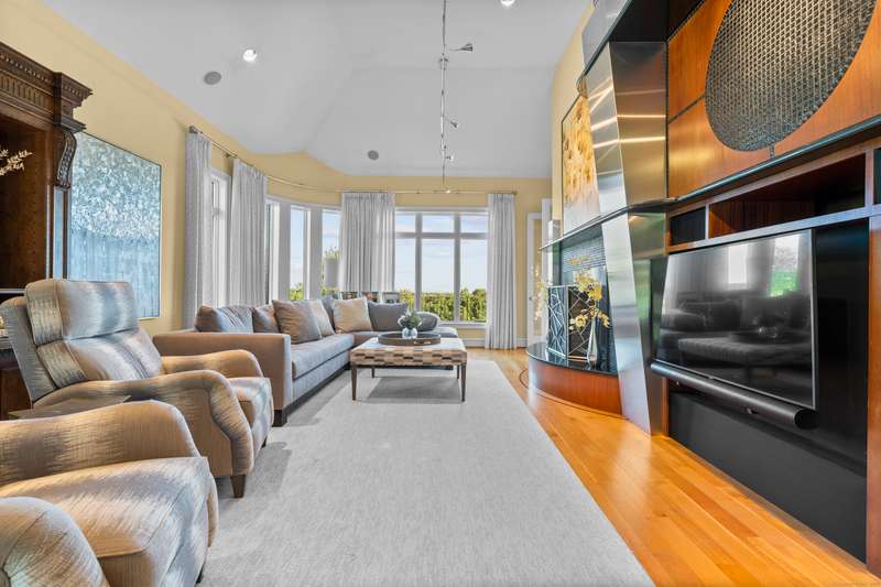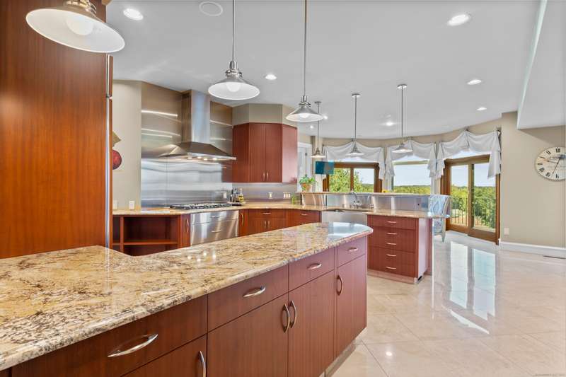 A true masterpiece of architecture and design, this one-of-a-kind estate commands attention from every angle. Perched in an exclusive enclave, the residence boasts breathtaking, unobstructed views of the Hartford skyline, offering a rare combination of elegance, privacy, and city vistas. The stately brick exterior, accented by soaring turrets and expansive walls of glass, exudes timeless grandeur. By day, the home is filled with natural light that pours through oversized windows, while by night, dramatic architectural lighting transforms the estate into a glowing landmark. Inside, craftsmanship meets modern luxury at every turn. The grand foyer makes a striking first impression with intricate inlaid flooring, sweeping staircase, and custom ironwork. Multiple living areas showcase floor-to-ceiling windows framing skyline views, while the gourmet kitchen is a chef's dream, outfitted with rich custom cabinetry, premium appliances, and granite counters. Designed for both intimate living an