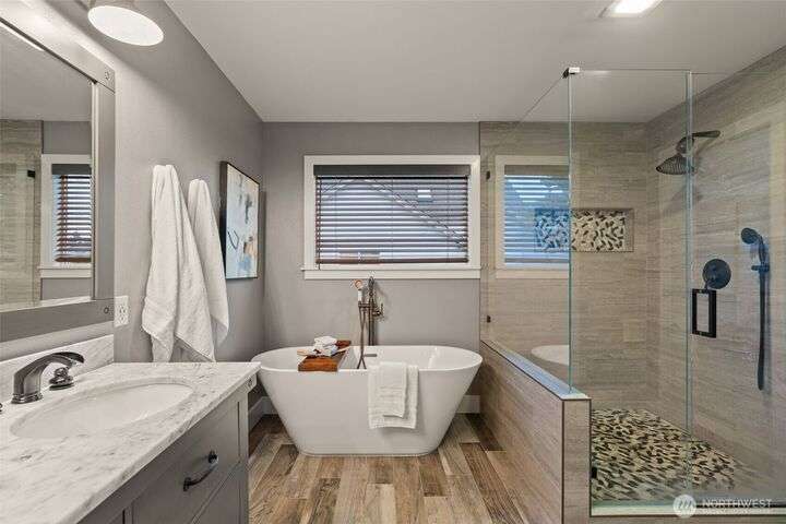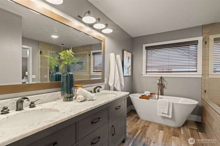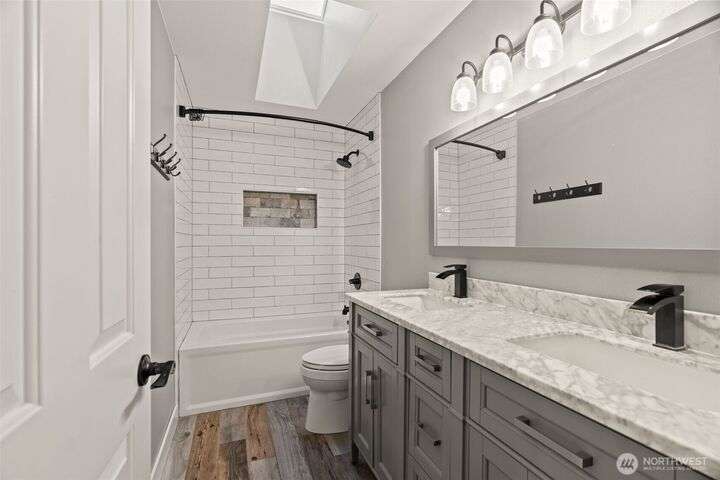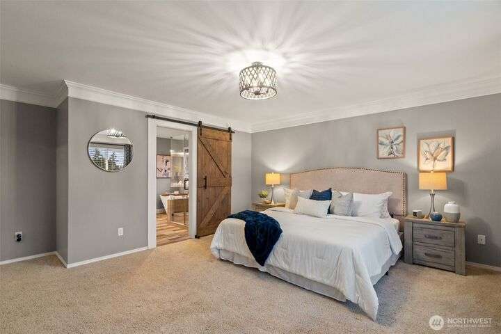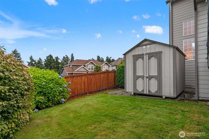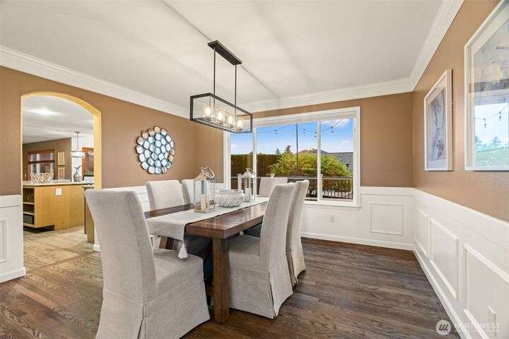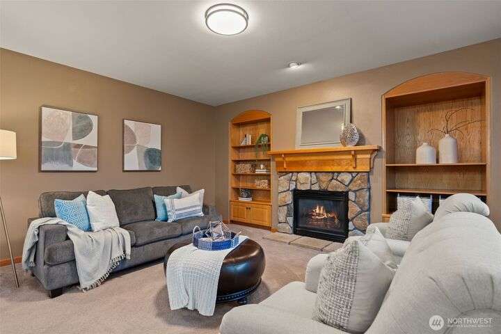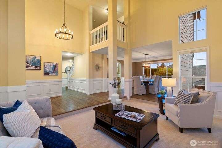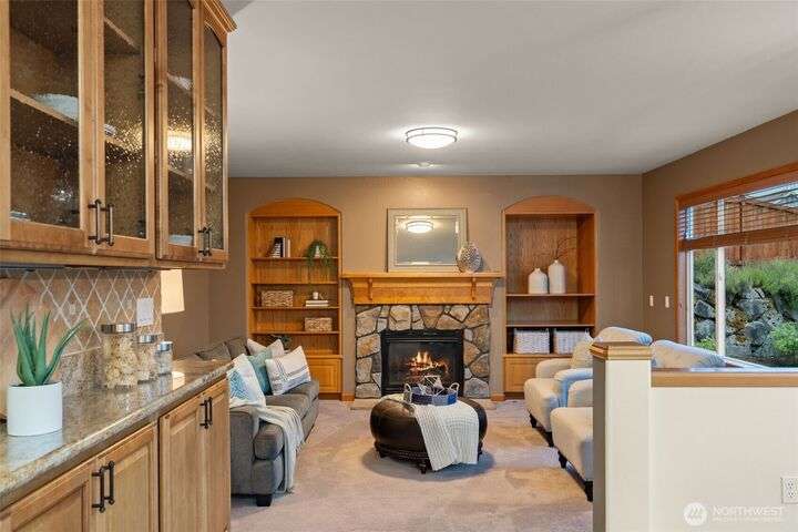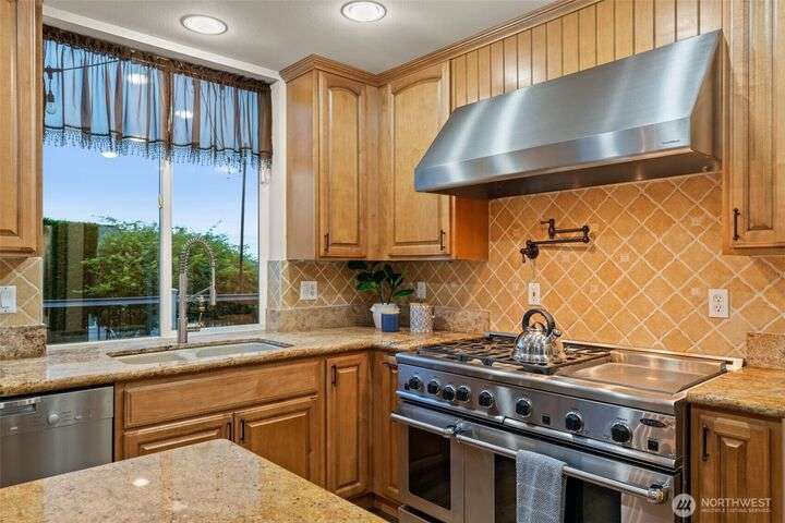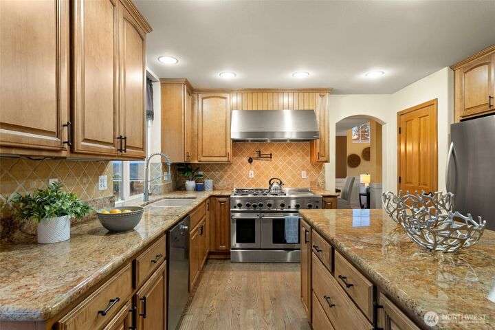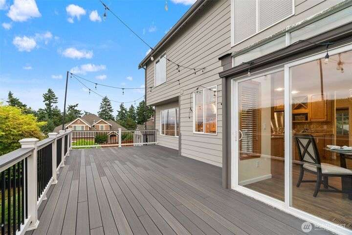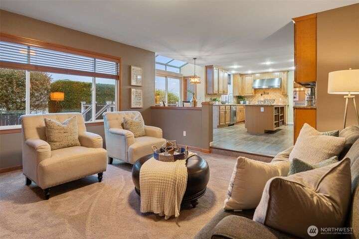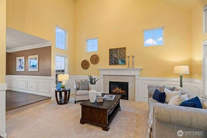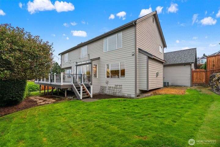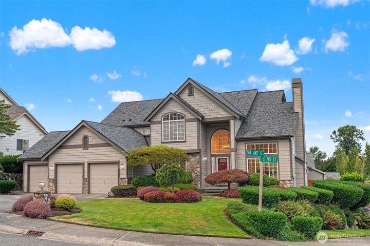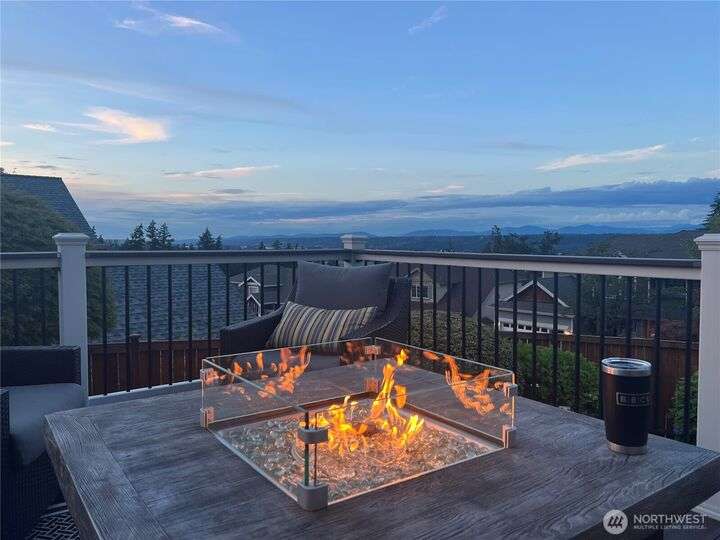 Enjoy sweeping valley views from this spacious Woodbrook home! The light-filled layout features a welcoming living room with fireplace, formal dining room and a gourmet kitchen with pro-grade appliances, granite slab counters, a large island, and walk-in pantry. Hardwood floors, vaulted ceilings, and detailed millwork add timeless character. The primary suite offers serene views, a spa-inspired bath, and walk-in closet. Three additional bedrooms include one with a vaulted ceiling plus a full bath. A den with French doors adds flexible living space. Stay comfortable year-round with A/C. The landscaped backyard with large deck is ideal for relaxing or entertaining. Three-car garage and convenient location near schools, shopping, and freeways.