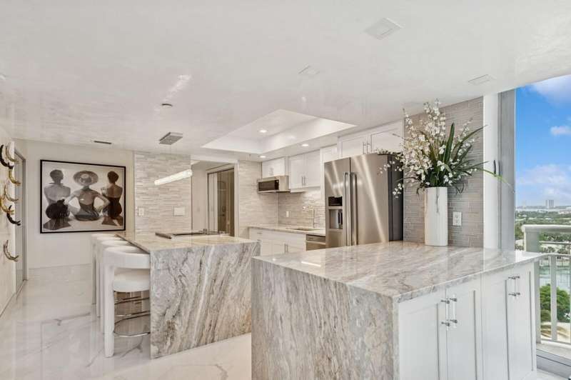 Stunning Oceanfront 2BR/2BA with a classy, contemporary aesthetic. The sleek open kitchen features stylish finishes, bar-top seating, and a bright, airy feel. The primary suite offers a spa-like retreat with a brand-new oversized walk-in shower. Enjoy ocean and Intracoastal views, plus sunrises and sunsets from your private balconies. Tiara offers resort-style living with valet, 24/7 concierge, and a staffed gate. Amenities include a guest suite, heated pool, jacuzzi, tennis, pickleball, fitness centers with steam and sauna, billiards, library, and card room. Enjoy the beachside restaurant--eat in or have it delivered--or dine in the 43rd-floor Marquis Lounge with 360-degree views and nightly dinner service. Just 15 mins to premier shopping, dining, and entertainment, and 20 mins to PBI.