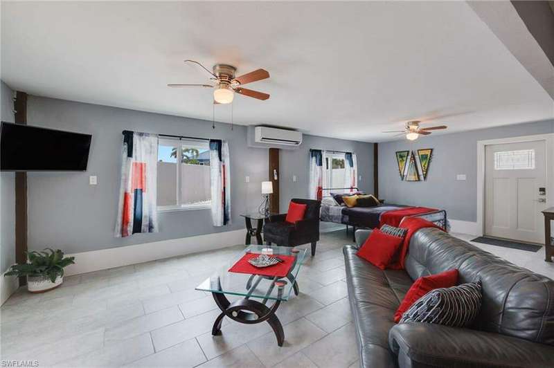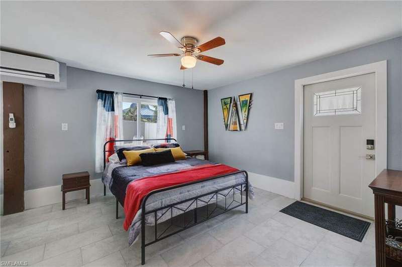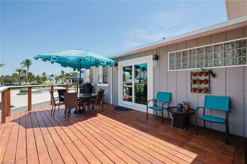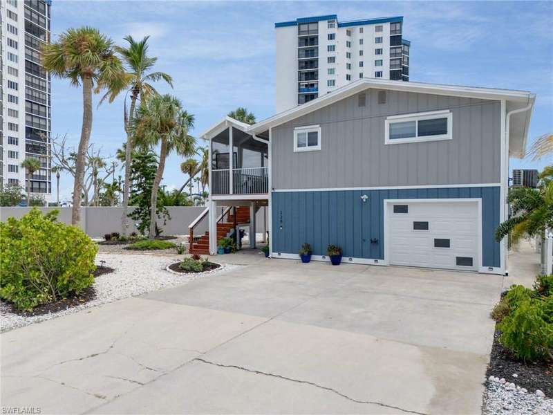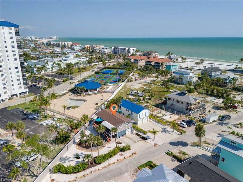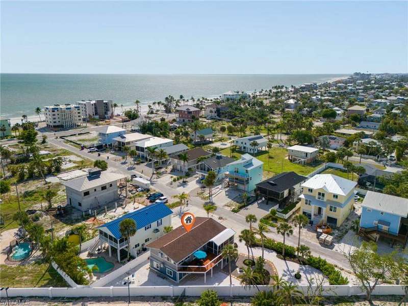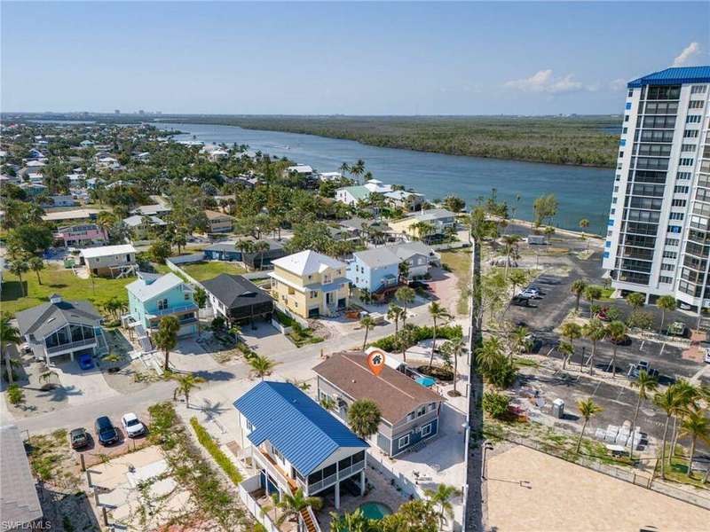 YOU HAVE JUST FOUND your own paradise on Fort Myers Beach. COMPLETELY REMODELED 2 bedroom 3 bathroom home conveniently located at the middle of Fort Myers Beach. Upstairs this home boasts the fun design of a classic beach style home with spacious, open concept floorpan shows off the Back Bay views. Gorgeous kitchen cabinets and quartz countertop adorned the kitchen - setup for entertaining guests with an island cooktop, new stainless hood and appliances. The Primary suite encompasses a large walk in closet, relaxing area and cool eclectic ensuite. Downstairs a fully equipped apartment boasts a cool industrial vibe, a private entry, laundry and more. A fab art studio with its own entry, is cooled by an efficient new ductless A/C split system. Although this property is zoned as single family, there is a certificate from FMB authorizing the ability to rent the upstairs and downstairs separately, opening up more revenue/living possibilities. The huge oversized pie shaped lot provides ample space for outdoor tropical oasis - swimming pool/spa including room for a tiki bar, even room for corn hole or bocci ball to enjoy with your family and friends. Huge new deck overlooks the beautiful Estero Bay with wildlife galore just beyond the side yard which is meticulously landscaped with custom made stepping stones, multiple stone colors and mulch beds containing tropical plants and palm trees including a majestic tall coconut palm tree. The backside of the property is bordered by a brand new 6' high privacy wall separating the backyard with the luxury Ocean Harbor Community. Enjoy an easy afternoon stroll to the Fresh Catch Bistro or Junkanoo Below Deck behind Publix, for a tantalizing refreshments or an amazing seafood meal dockside without a moment in traffic. Wrap up your day with FMB's famous stunning sunset. For entertainment Snook Bight Marina, arguably the most amenity rich marina in Estero Bay with boat rentals, boat slips, boat club, swimming pool, captains lounge, and ship store. Or hire a charter boat to take you out to create dolphin, shelling and fishing memories of a lifetime! This spectacular home is ONLY 226 STEPS away from the powder sugar white sandy beach FORT MYERS BEACH is famous for. Once at the beach you can set yourself up at Newton Beach Park which has several Chickee huts, picnic tables, outdoor showers and public restrooms for your enjoyment. Or take in some shelling on a three mile adventure to the North culminating at the new Margaritaville, the Pier, Times Square and Bowditch Park or head South three miles to Big Carlos pass where you can watch sailboats and yachts cruising in and out of the bay into the turquoise Gulf of Mexico. Please see our video! This home offers you everything you need to enjoy the BEST Southwest Florida lifestyle! Don't let this one slip away!