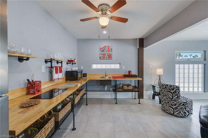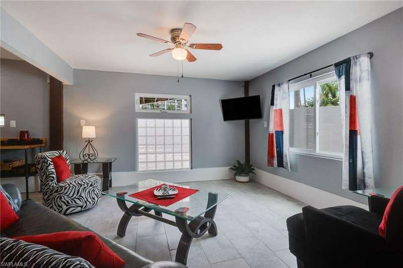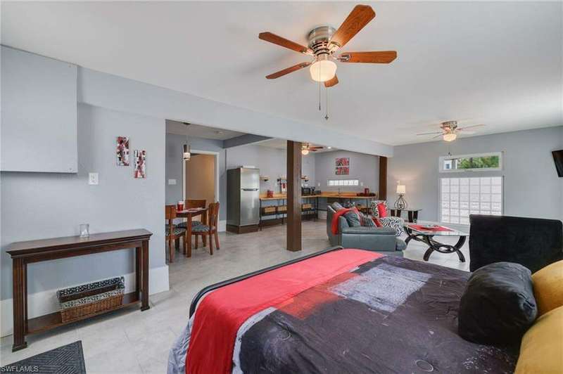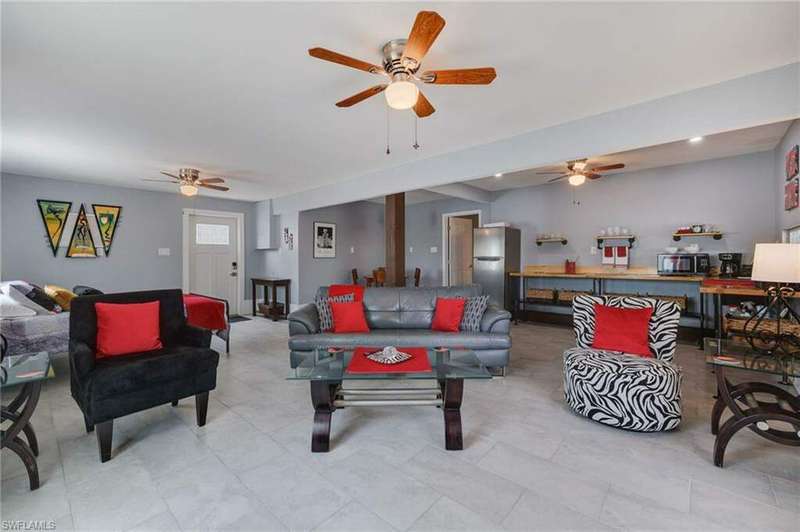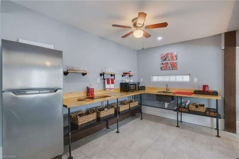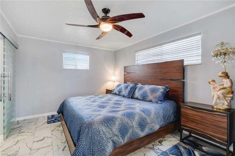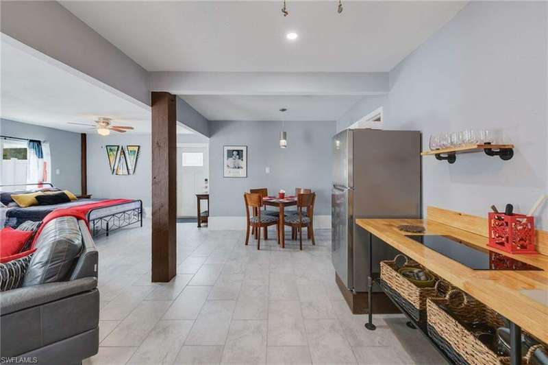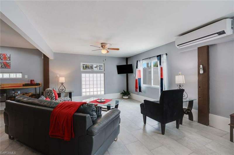 YOU HAVE JUST FOUND your own paradise on Fort Myers Beach. COMPLETELY REMODELED 2 bedroom 3 bathroom home conveniently located at the middle of Fort Myers Beach. Upstairs this home boasts the fun design of a classic beach style home with spacious, open concept floorpan shows off the Back Bay views. Gorgeous kitchen cabinets and quartz countertop adorned the kitchen - setup for entertaining guests with an island cooktop, new stainless hood and appliances. The Primary suite encompasses a large walk in closet, relaxing area and cool eclectic ensuite. Downstairs a fully equipped apartment boasts a cool industrial vibe, a private entry, laundry and more. A fab art studio with its own entry, is cooled by an efficient new ductless A/C split system. Although this property is zoned as single family, there is a certificate from FMB authorizing the ability to rent the upstairs and downstairs separately, opening up more revenue/living possibilities. The huge oversized pie shaped lot provides ample space for outdoor tropical oasis - swimming pool/spa including room for a tiki bar, even room for corn hole or bocci ball to enjoy with your family and friends. Huge new deck overlooks the beautiful Estero Bay with wildlife galore just beyond the side yard which is meticulously landscaped with custom made stepping stones, multiple stone colors and mulch beds containing tropical plants and palm trees including a majestic tall coconut palm tree. The backside of the property is bordered by a brand new 6' high privacy wall separating the backyard with the luxury Ocean Harbor Community. Enjoy an easy afternoon stroll to the Fresh Catch Bistro or Junkanoo Below Deck behind Publix, for a tantalizing refreshments or an amazing seafood meal dockside without a moment in traffic. Wrap up your day with FMB's famous stunning sunset. For entertainment Snook Bight Marina, arguably the most amenity rich marina in Estero Bay with boat rentals, boat slips, boat club, swimming pool, captains lounge, and ship store. Or hire a charter boat to take you out to create dolphin, shelling and fishing memories of a lifetime! This spectacular home is ONLY 226 STEPS away from the powder sugar white sandy beach FORT MYERS BEACH is famous for. Once at the beach you can set yourself up at Newton Beach Park which has several Chickee huts, picnic tables, outdoor showers and public restrooms for your enjoyment. Or take in some shelling on a three mile adventure to the North culminating at the new Margaritaville, the Pier, Times Square and Bowditch Park or head South three miles to Big Carlos pass where you can watch sailboats and yachts cruising in and out of the bay into the turquoise Gulf of Mexico. Please see our video! This home offers you everything you need to enjoy the BEST Southwest Florida lifestyle! Don't let this one slip away!
